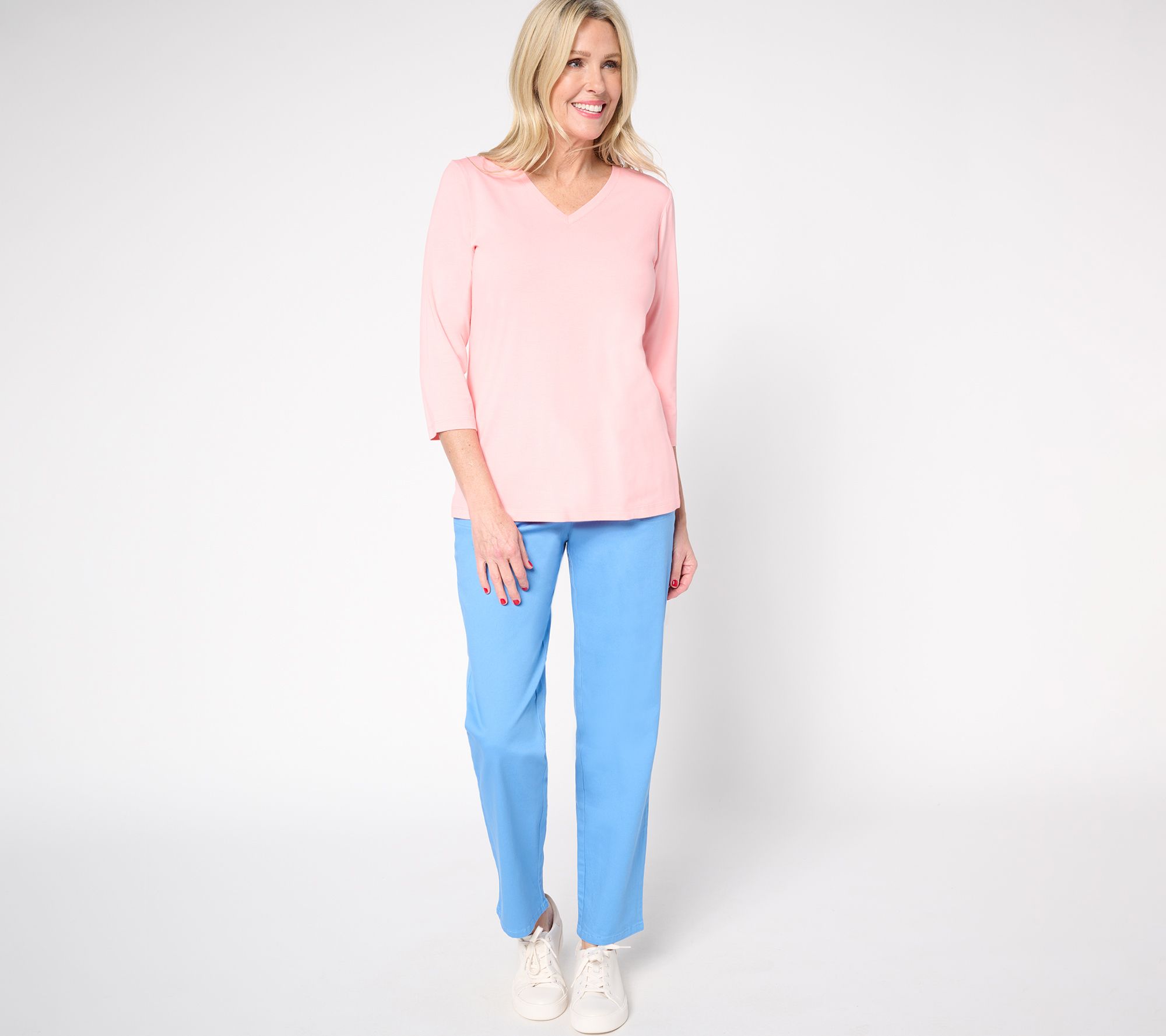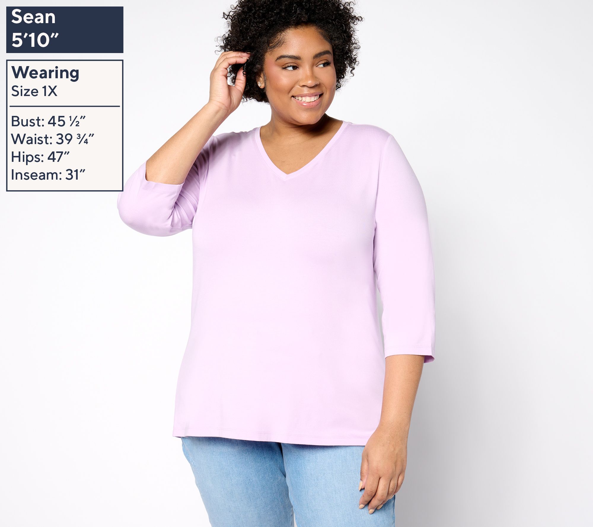 • Features: solid color, 3/4 length sleeves, V-neckline