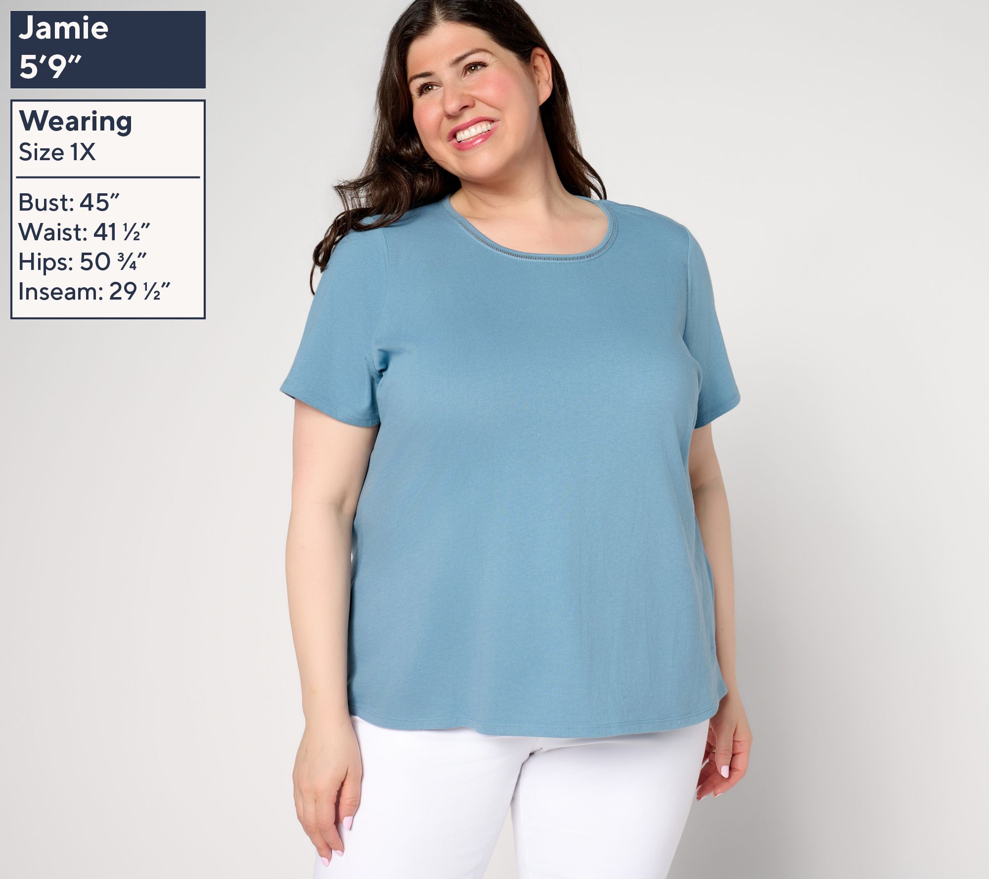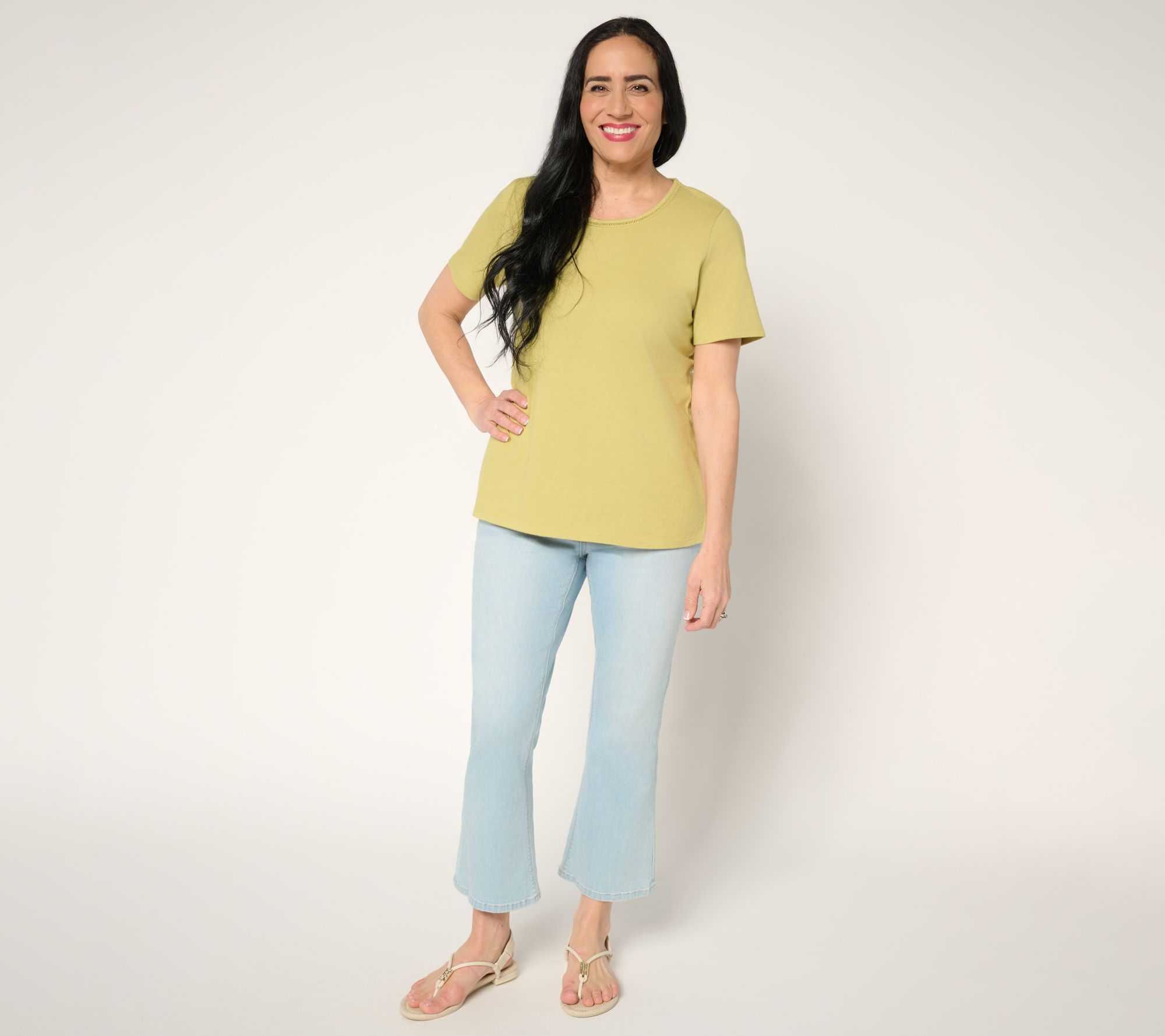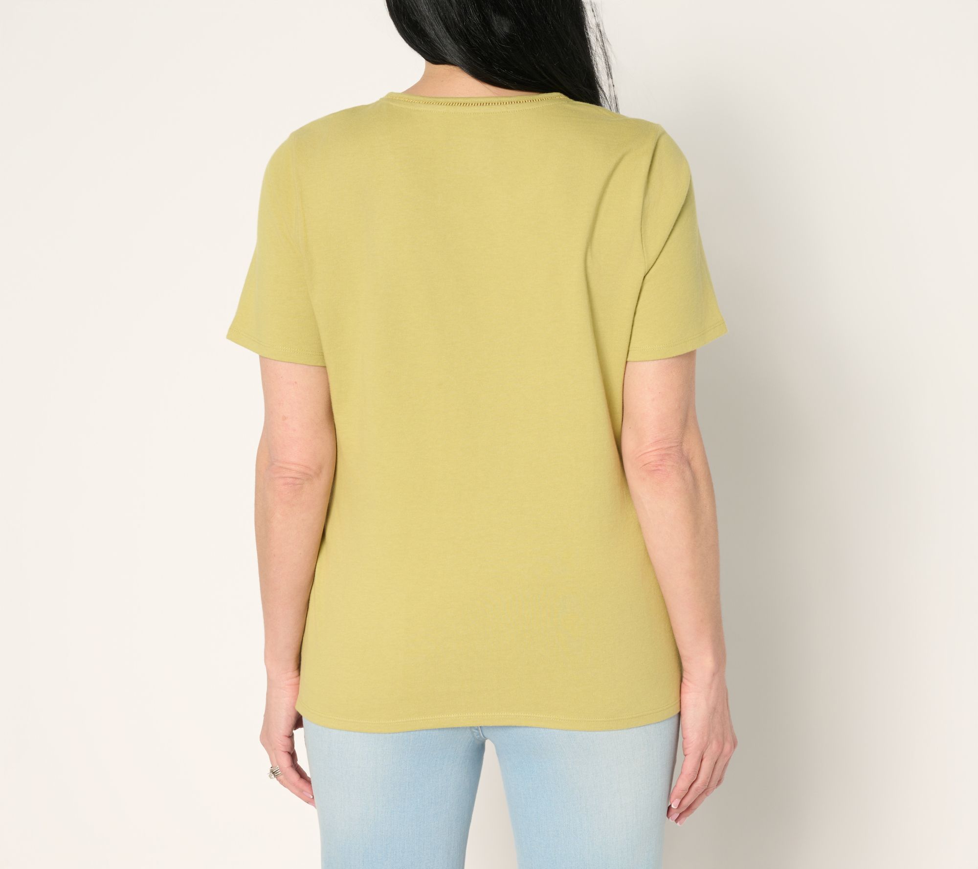 "As Is" Denim & Co. Essentials True Cotton Short Sleeve Top with Trim
