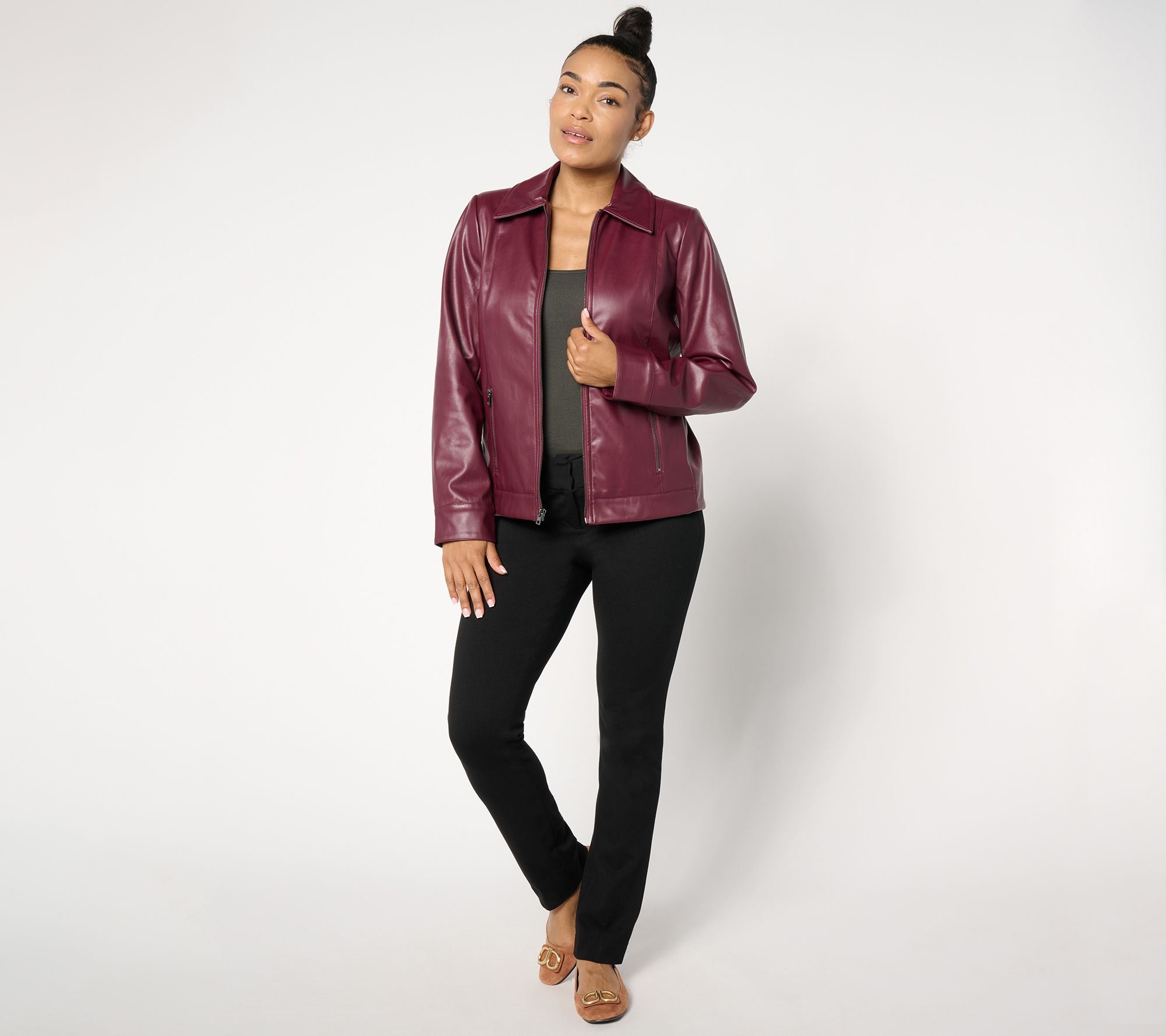"As Is" Denim & Co. Faux Leather Zip Front Jacket w/ Pockets