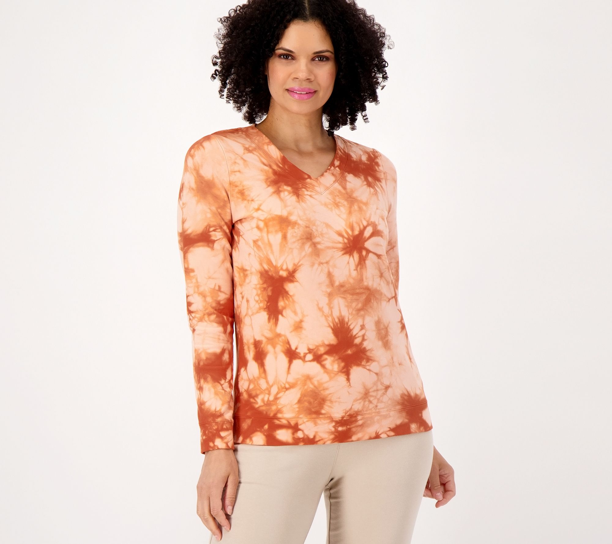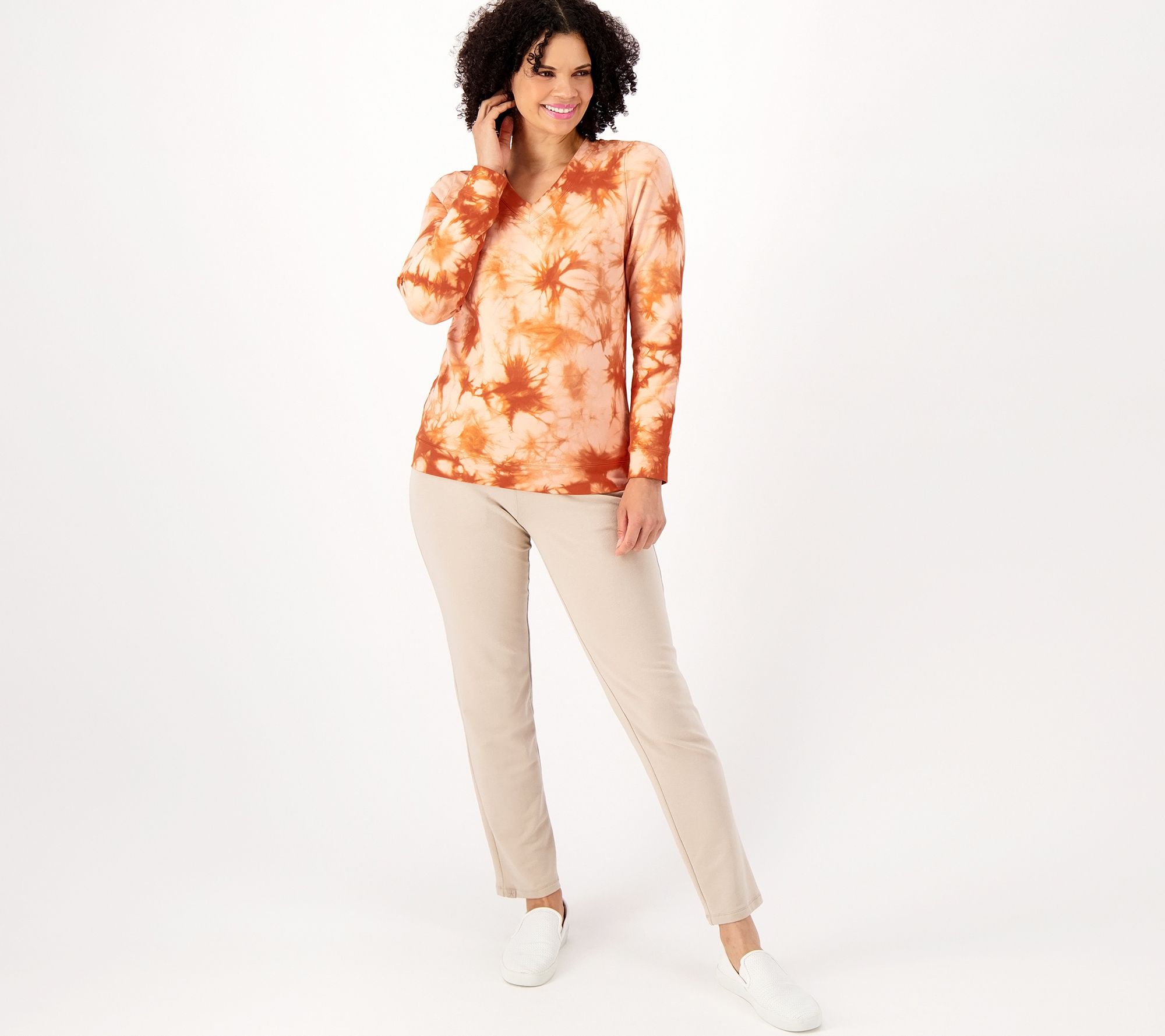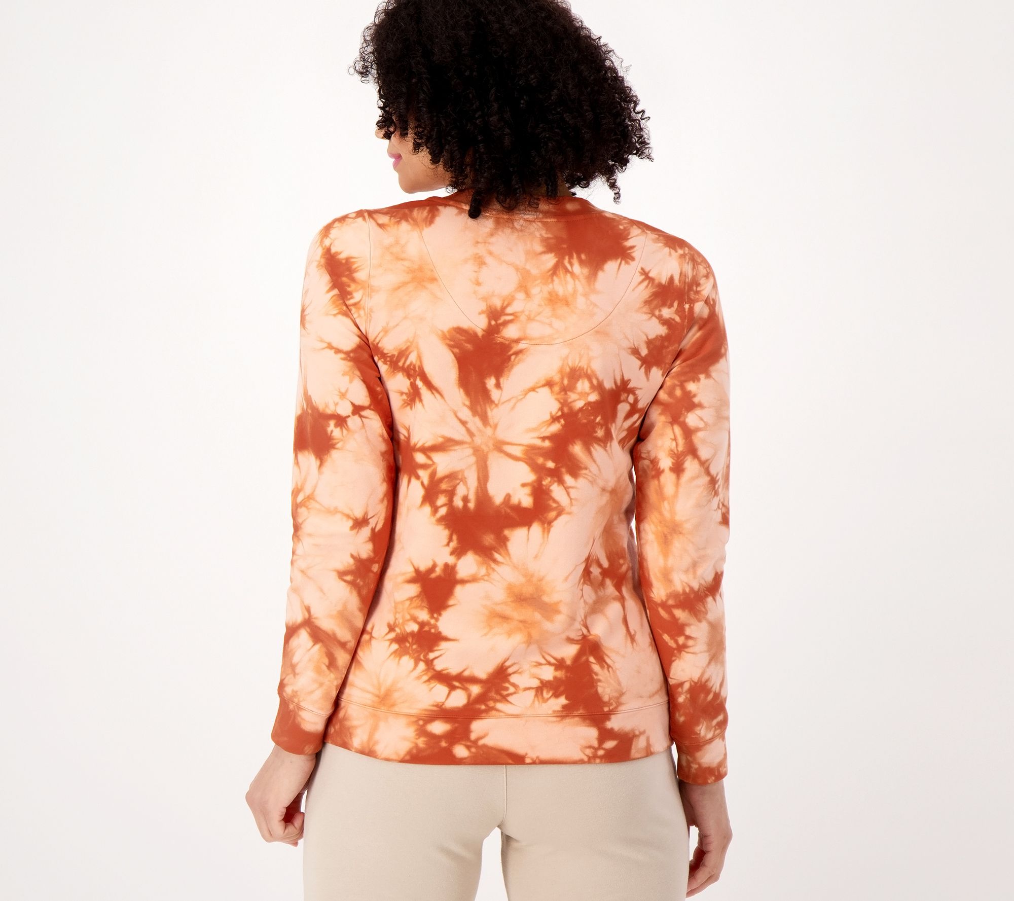 Searching for an easy way to wake up your closet? This printed French terry pullover does your wardrobe a solid simply by adding a fresh tie-dye design to any basic bottom (so you can feel those summer vibes all year round). From Denim & Co.® Fashions.