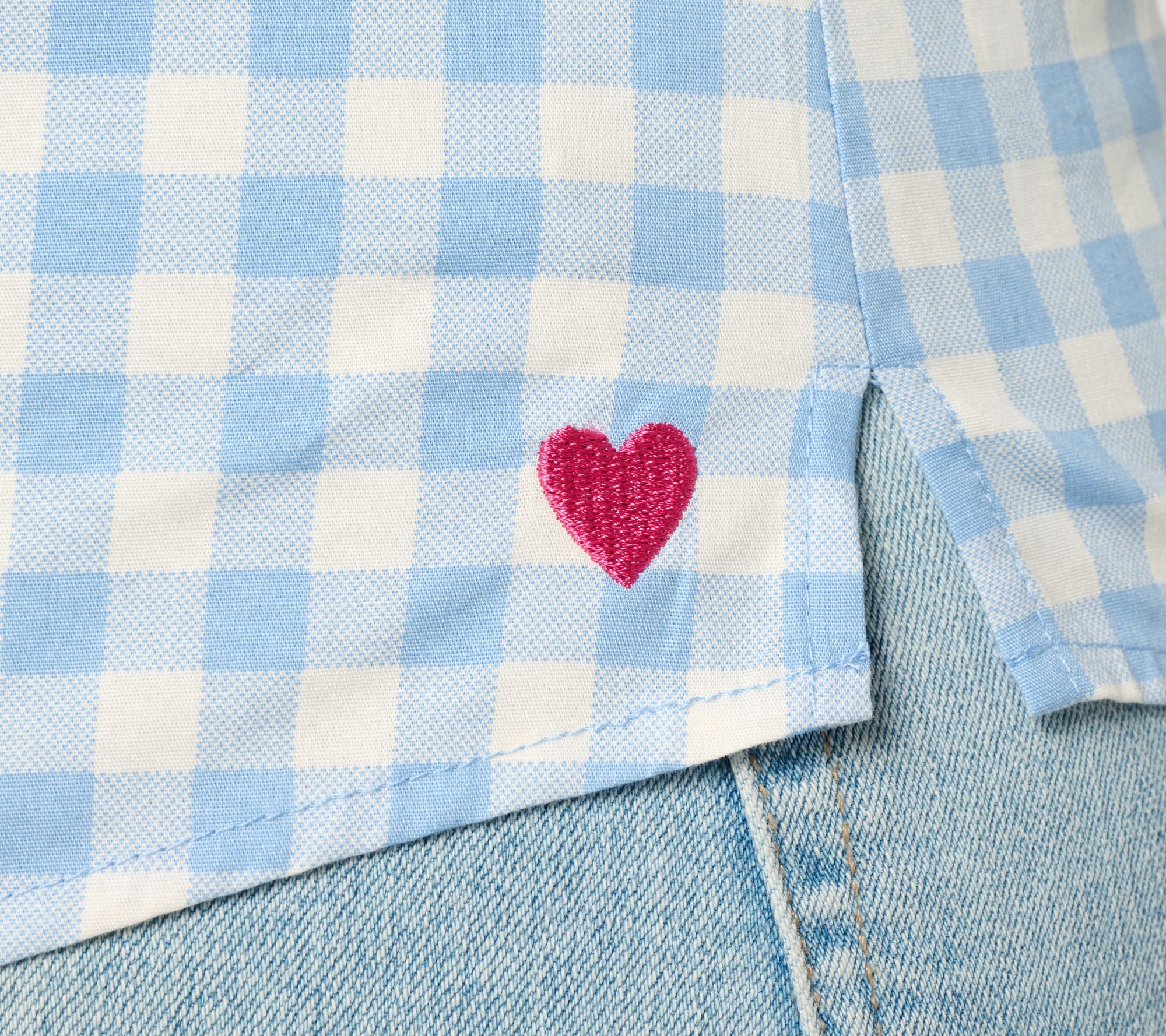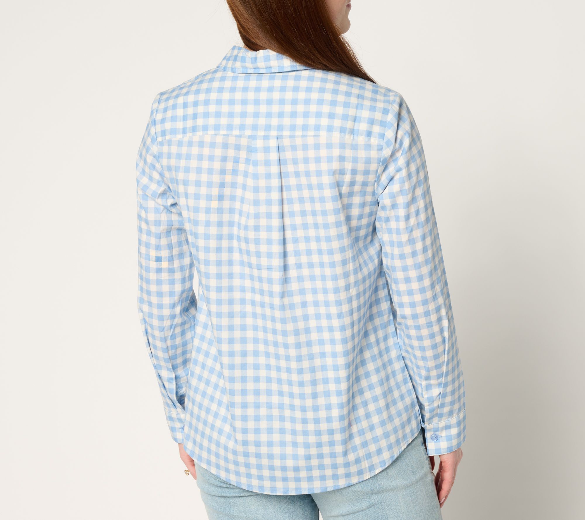 "As Is" Denim & Co. Gingham Poplin Top with Contrast Print