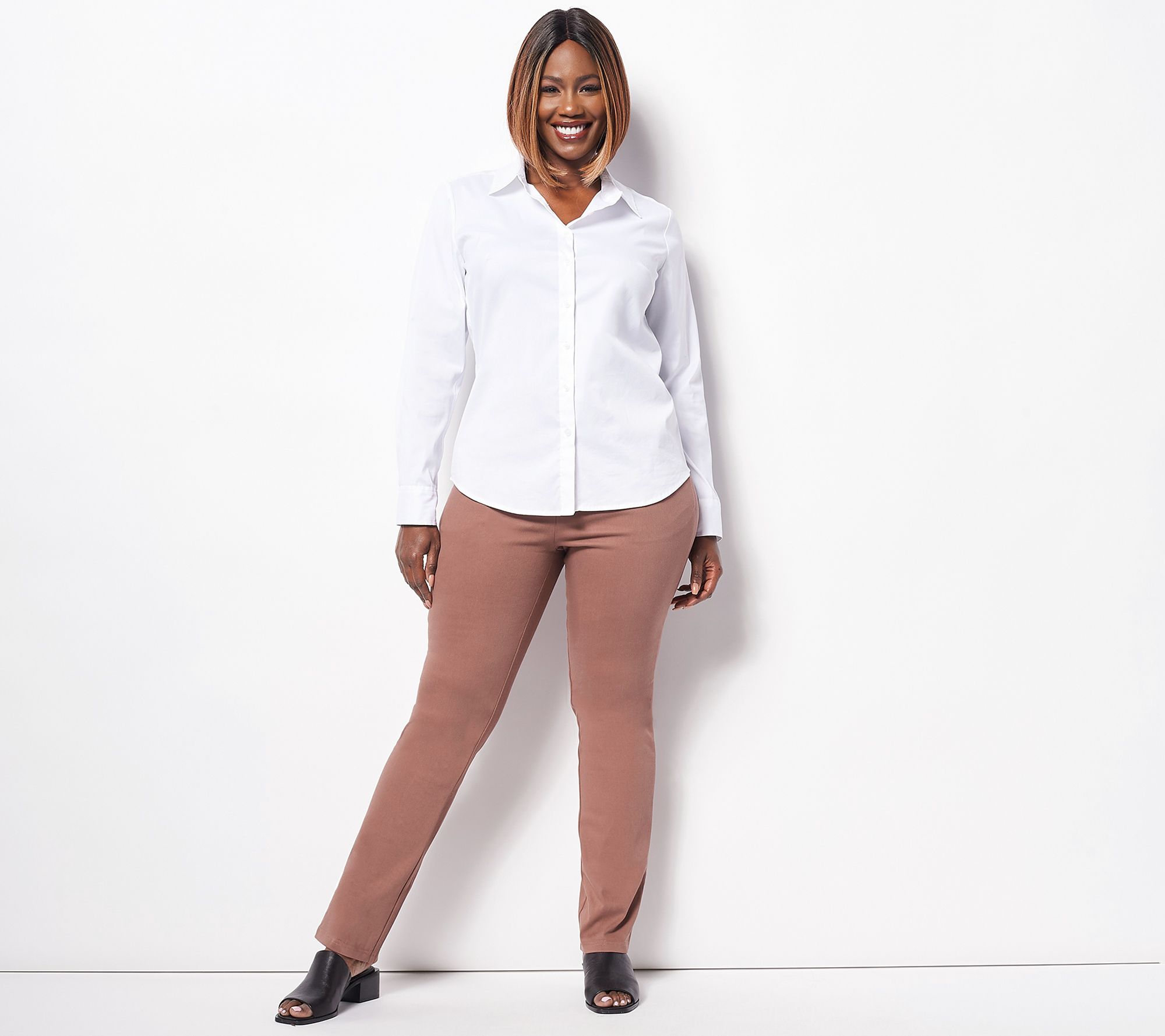 Flex twill fabric? Pull-on style? Pockets?! Yes, yes, and yessss! Say hello to your new, comfy, cozy, and super stylish everyday pants. They conveniently match beautifully with heels, wedges, sneakers, your favorite flats, and even sandals. You'll never look at pants without flex twill the same. From Denim & Co.® Fashions.