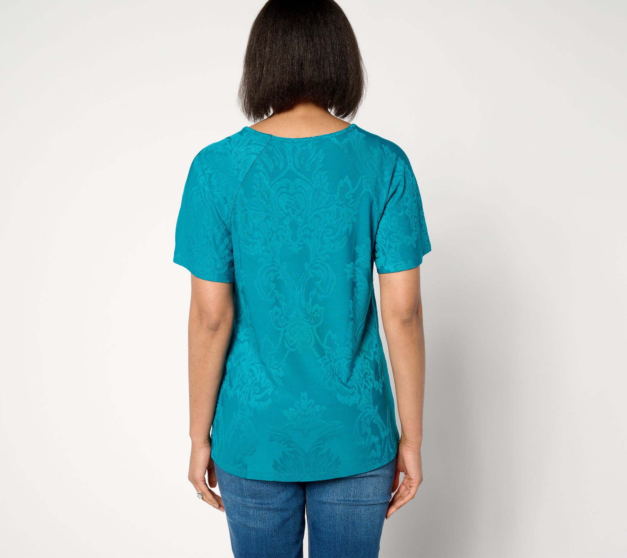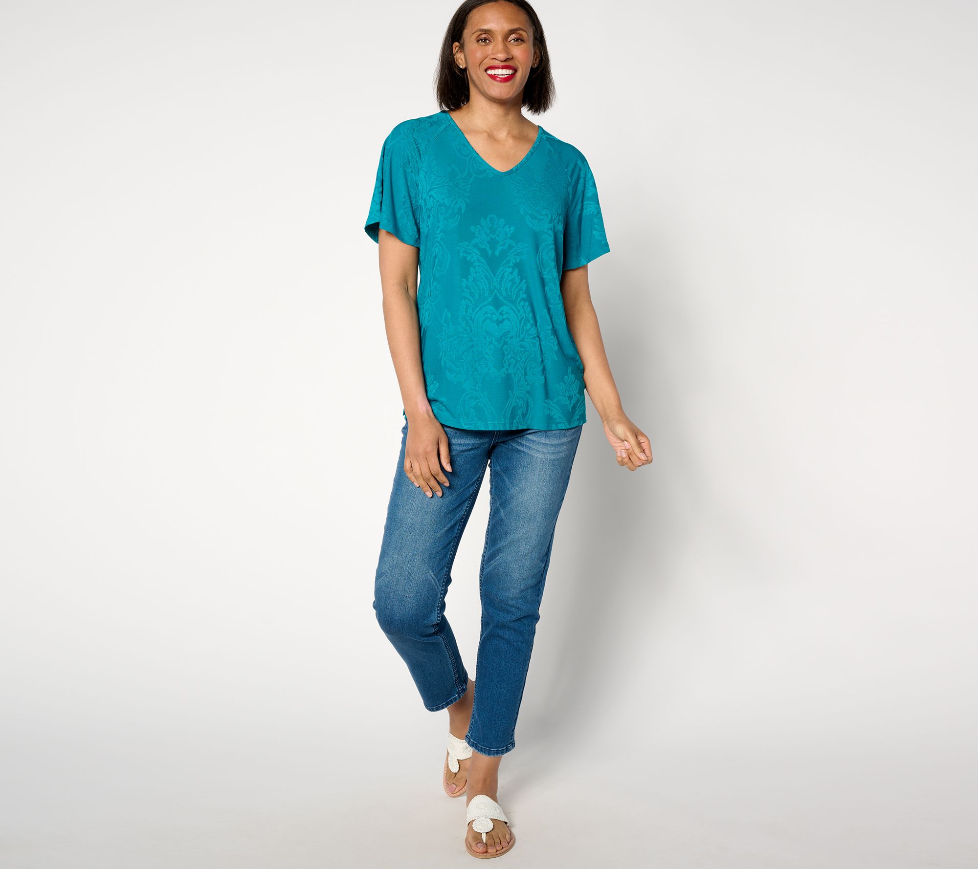 In a gorgeous novelty knit, this flutter-sleeve top is a sophisticated alternative to your everyday tanks and tees (but just as comfy). Winner, winner! From Denim & Co.® Fashions.