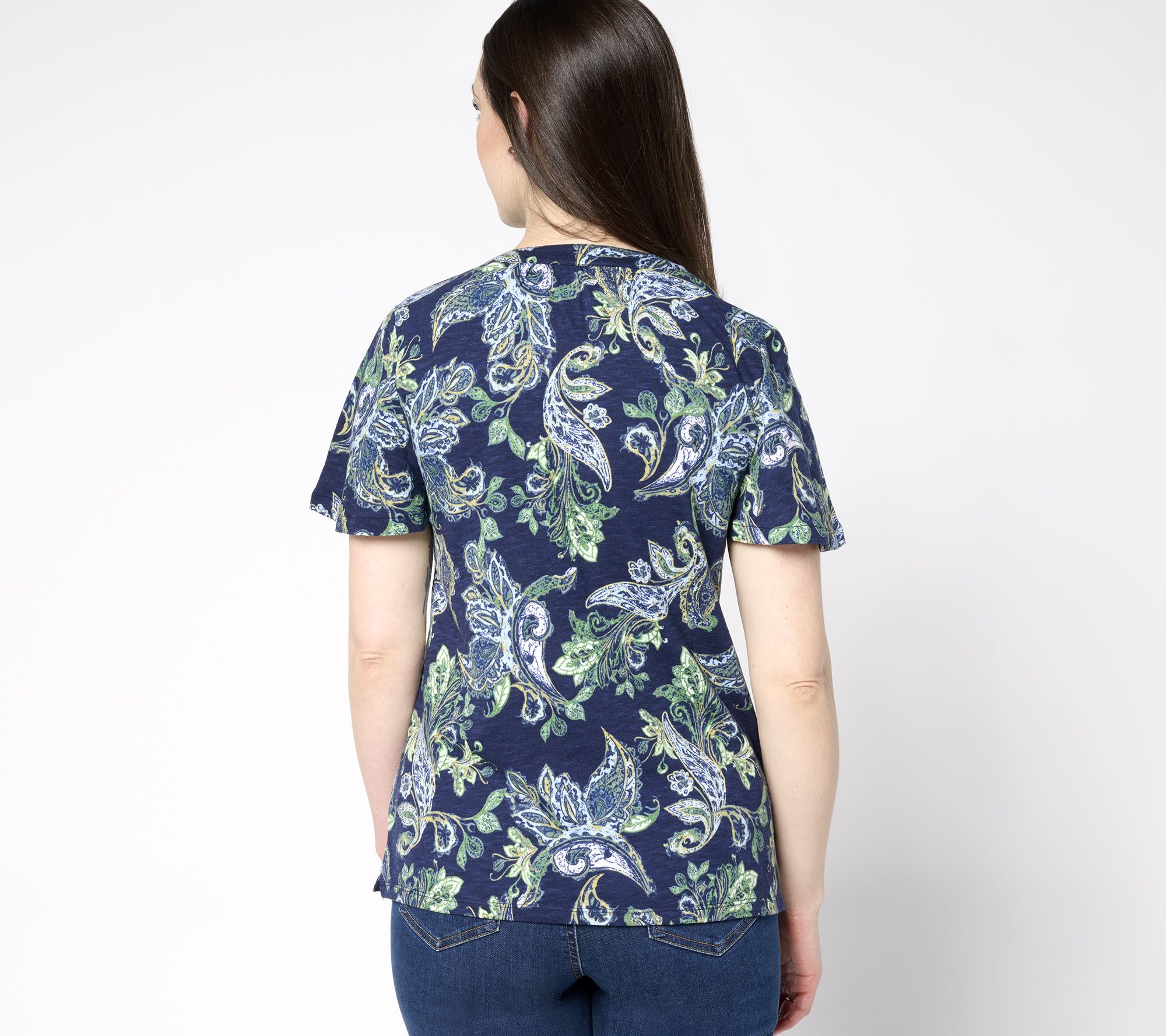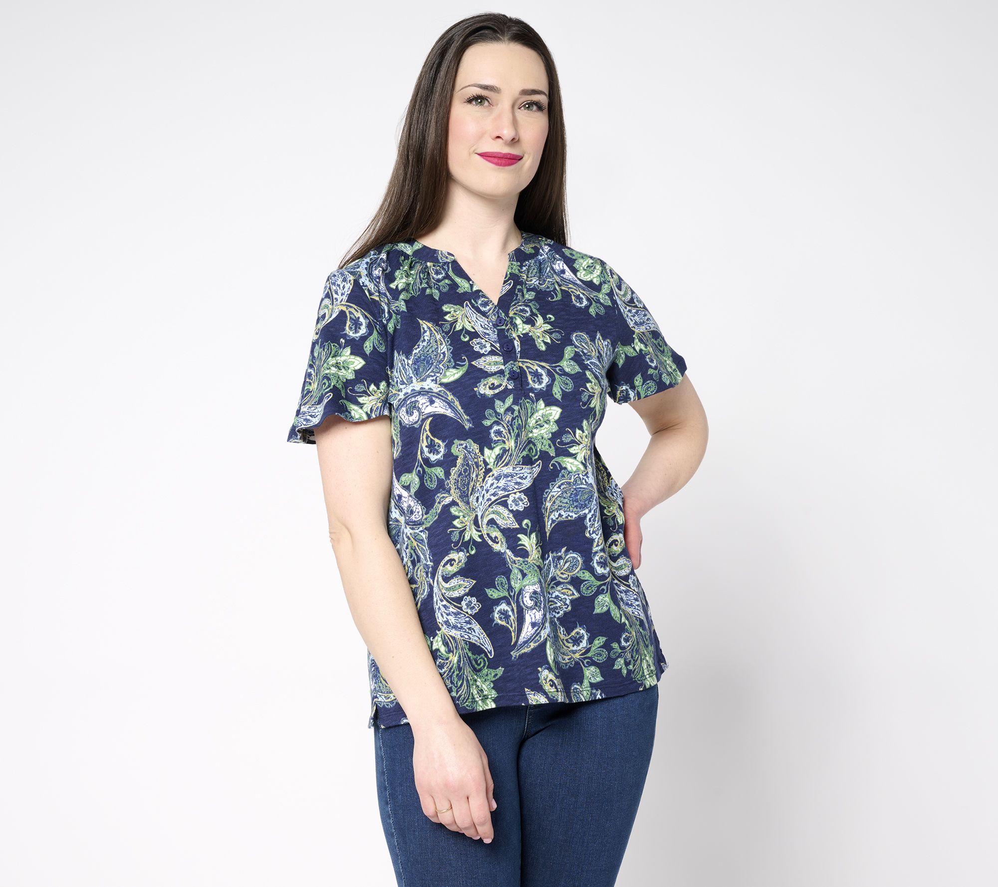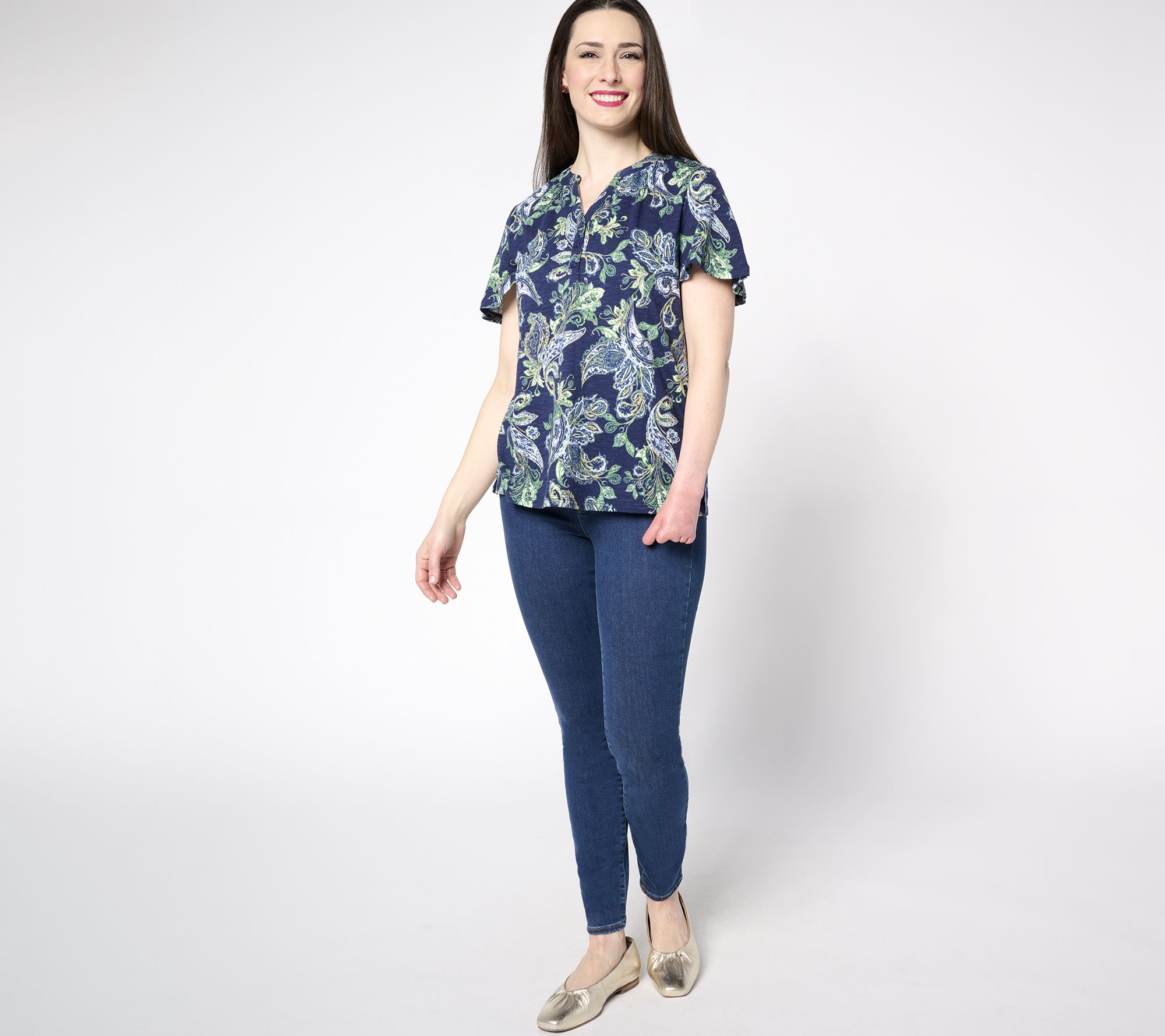 "As Is" Denim & Co. Linen Blend Flutter Sleeve Printed or Solid Top