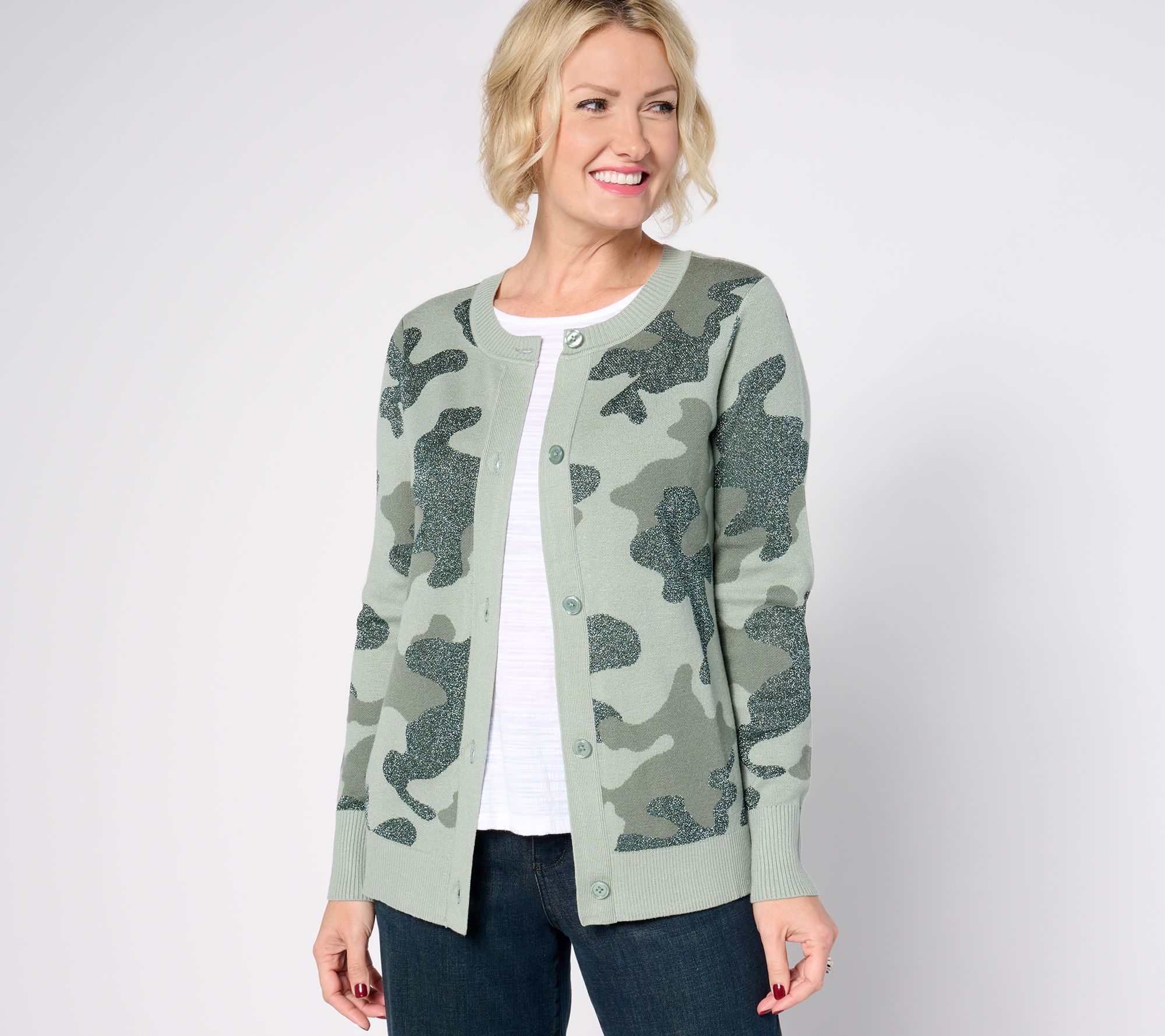 This button-front cardigan is a winning choice for any stylish woman. The simple silhouette pairs with a variety of looks, from jeans to dress pants to skirts. From Denim & Co.® Fashions.