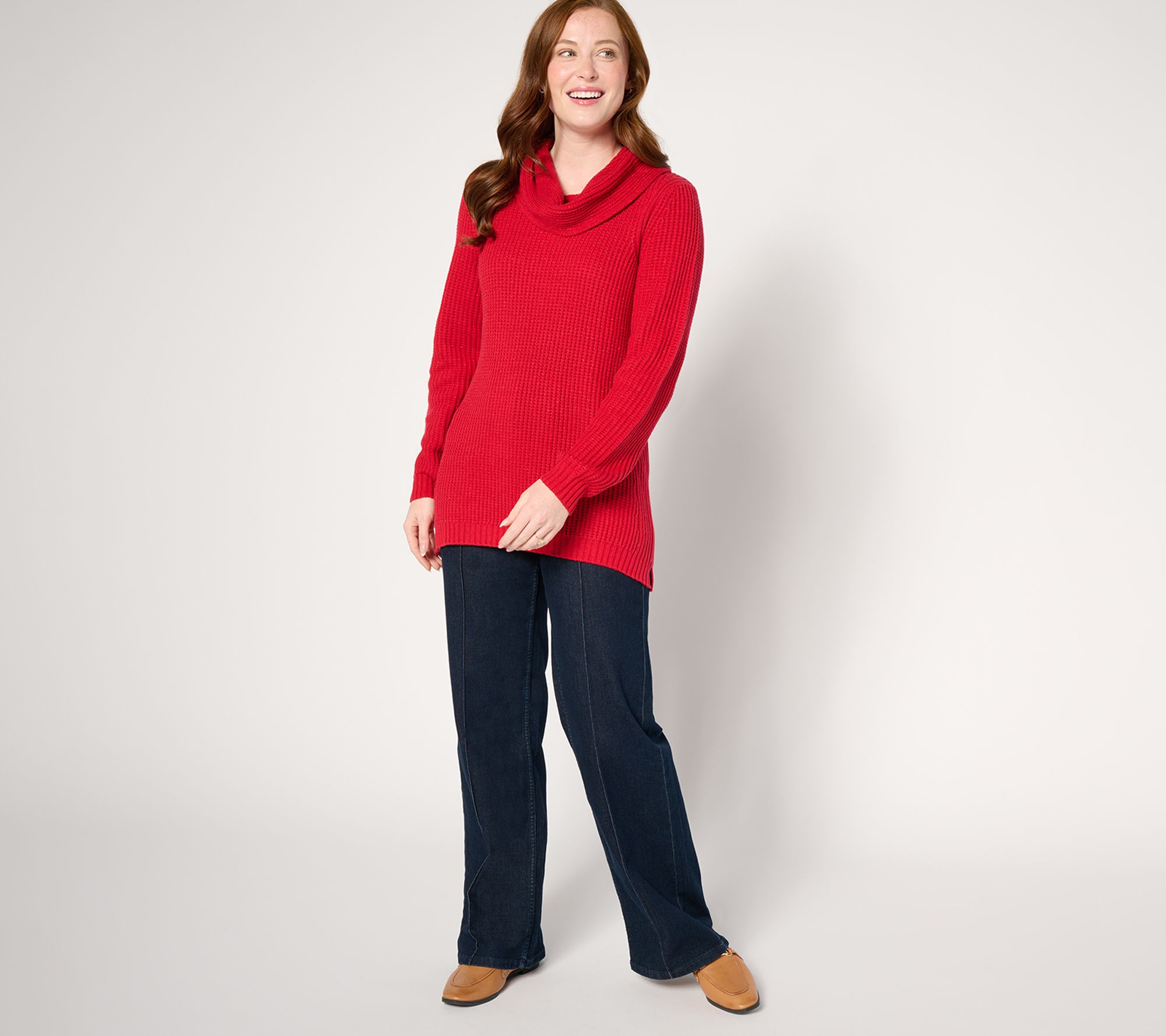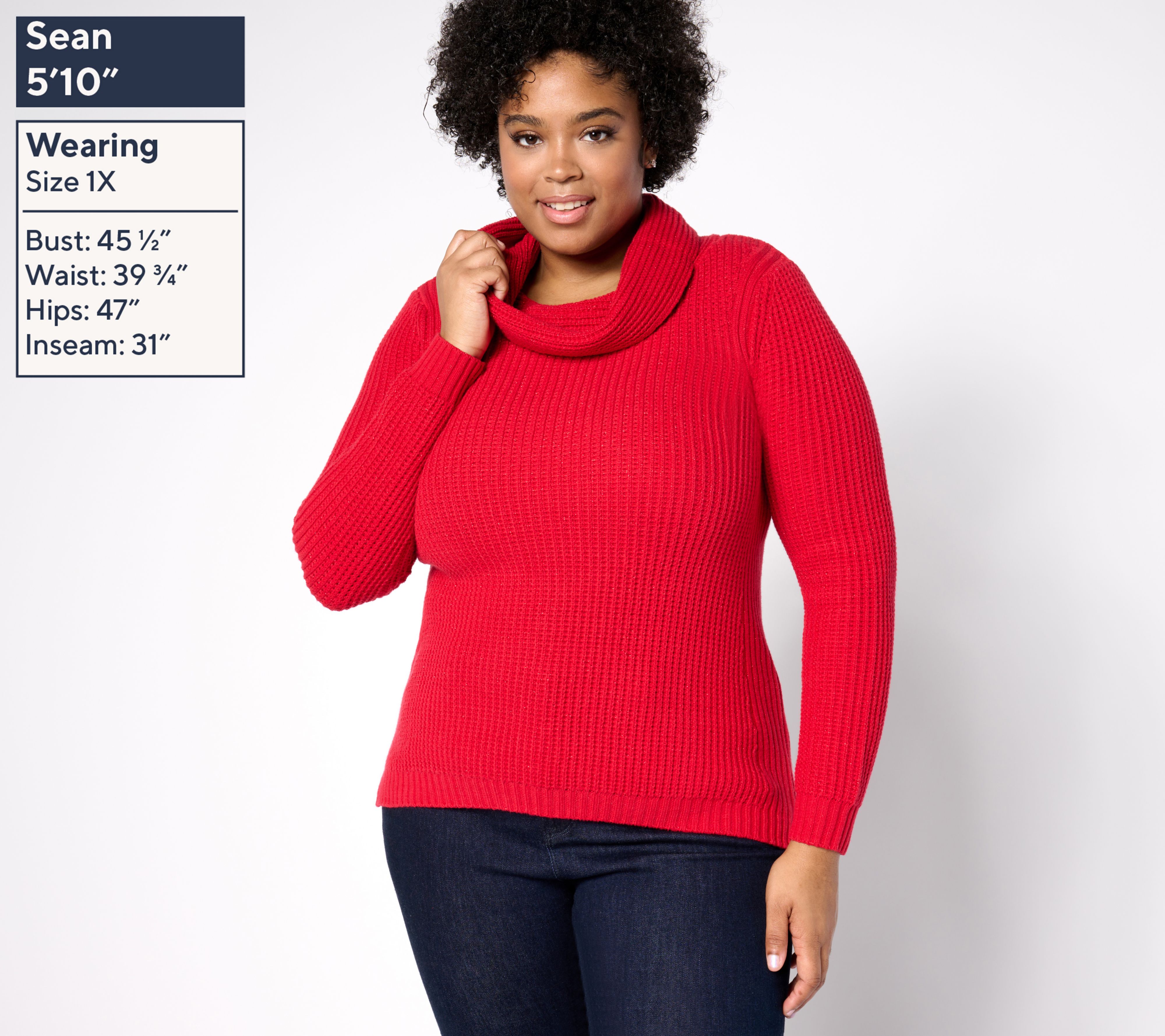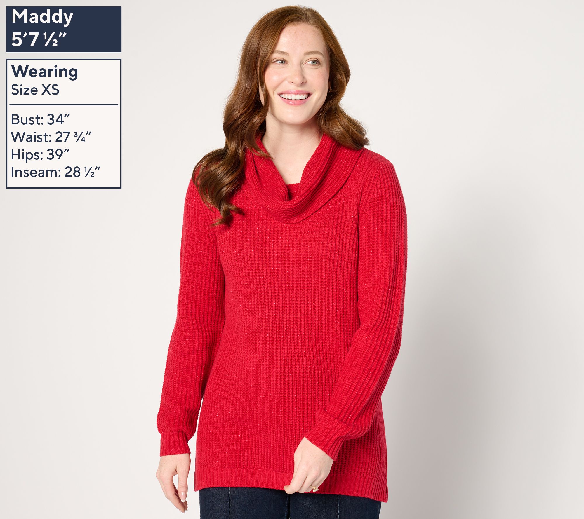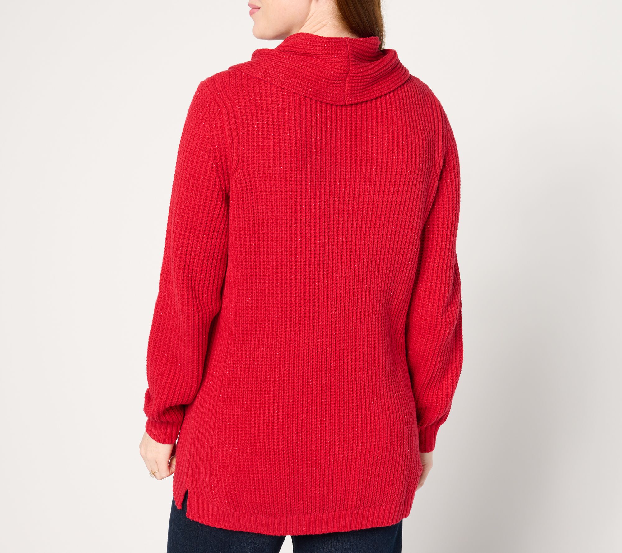 "As Is" Denim & Co. Lurex Waffle Cowl Neck Sweater