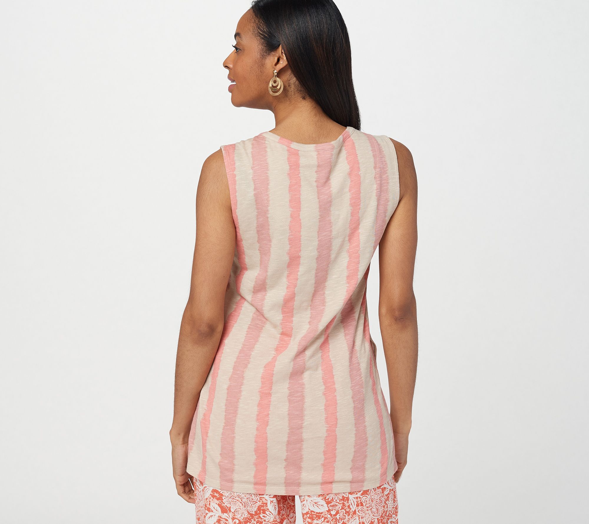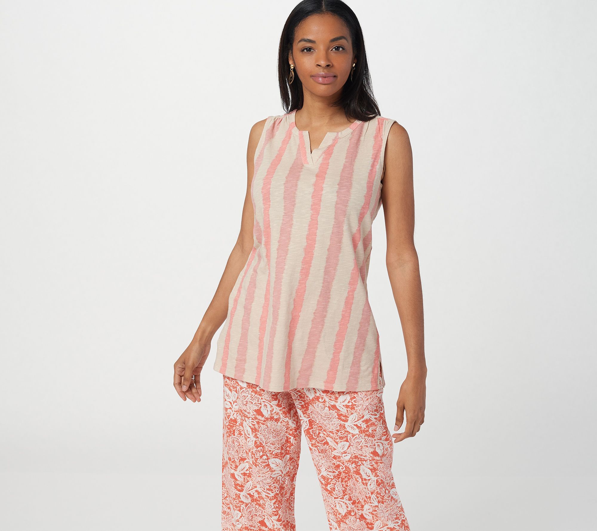 "As Is" Denim & Co. Naturals Petite Linen Slub Jersey SplitNeck Tunic