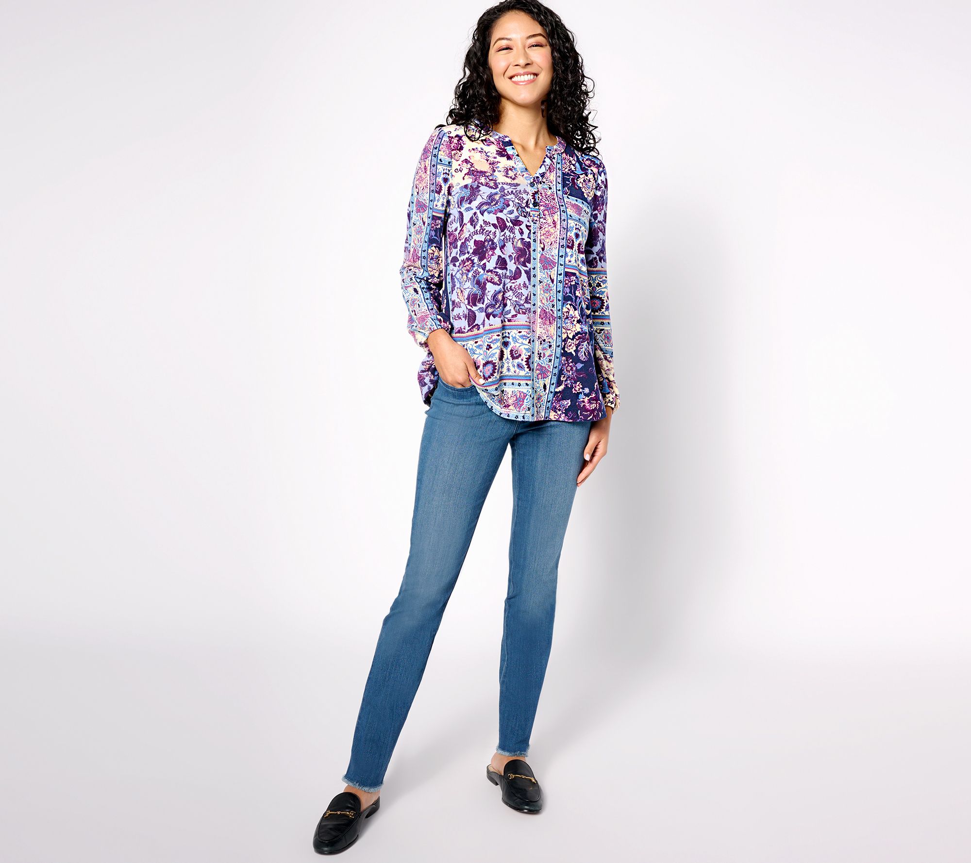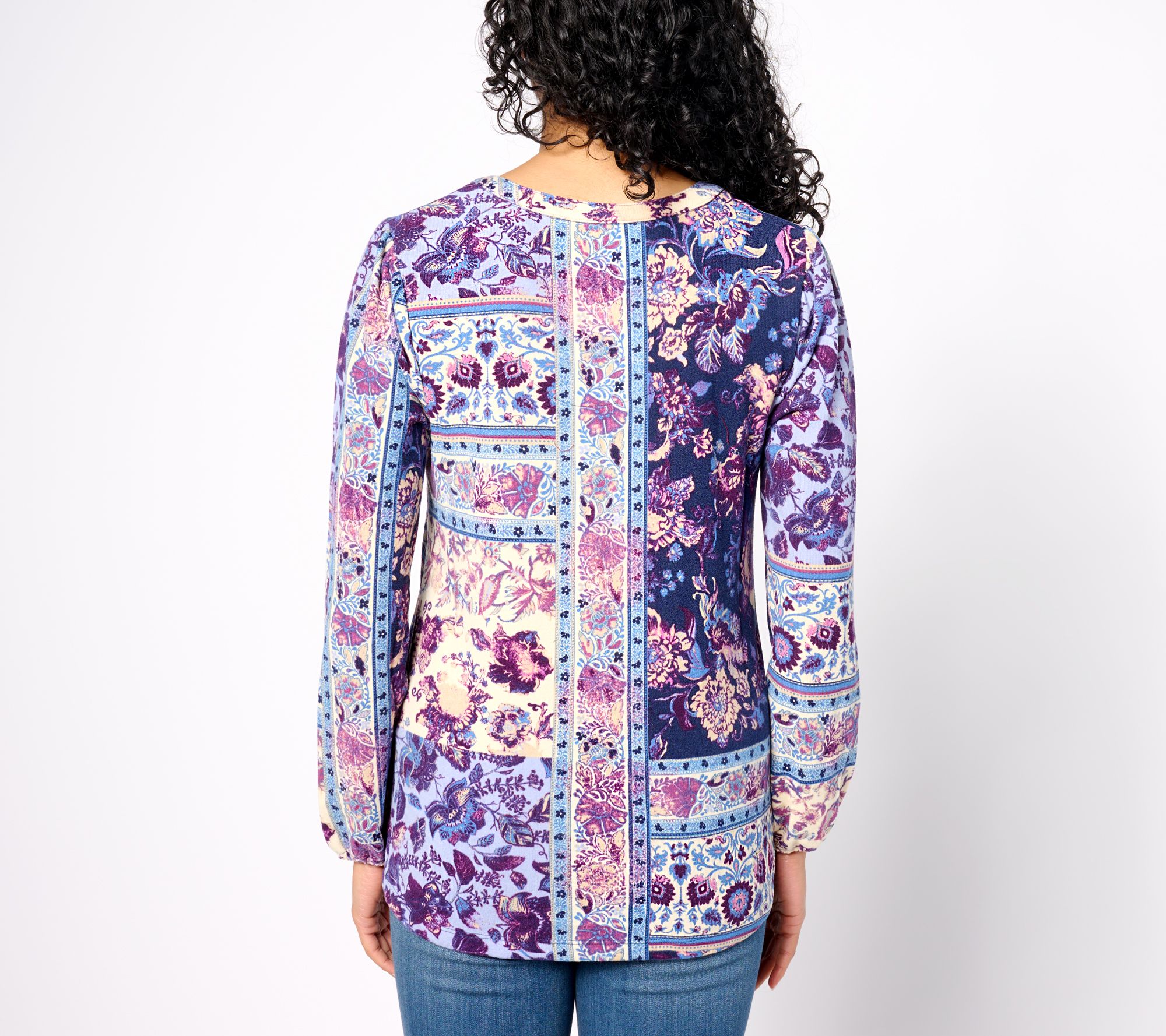 "As Is" Denim & Co. Patchwork Print Heavenly Jersey Henley Knit Top