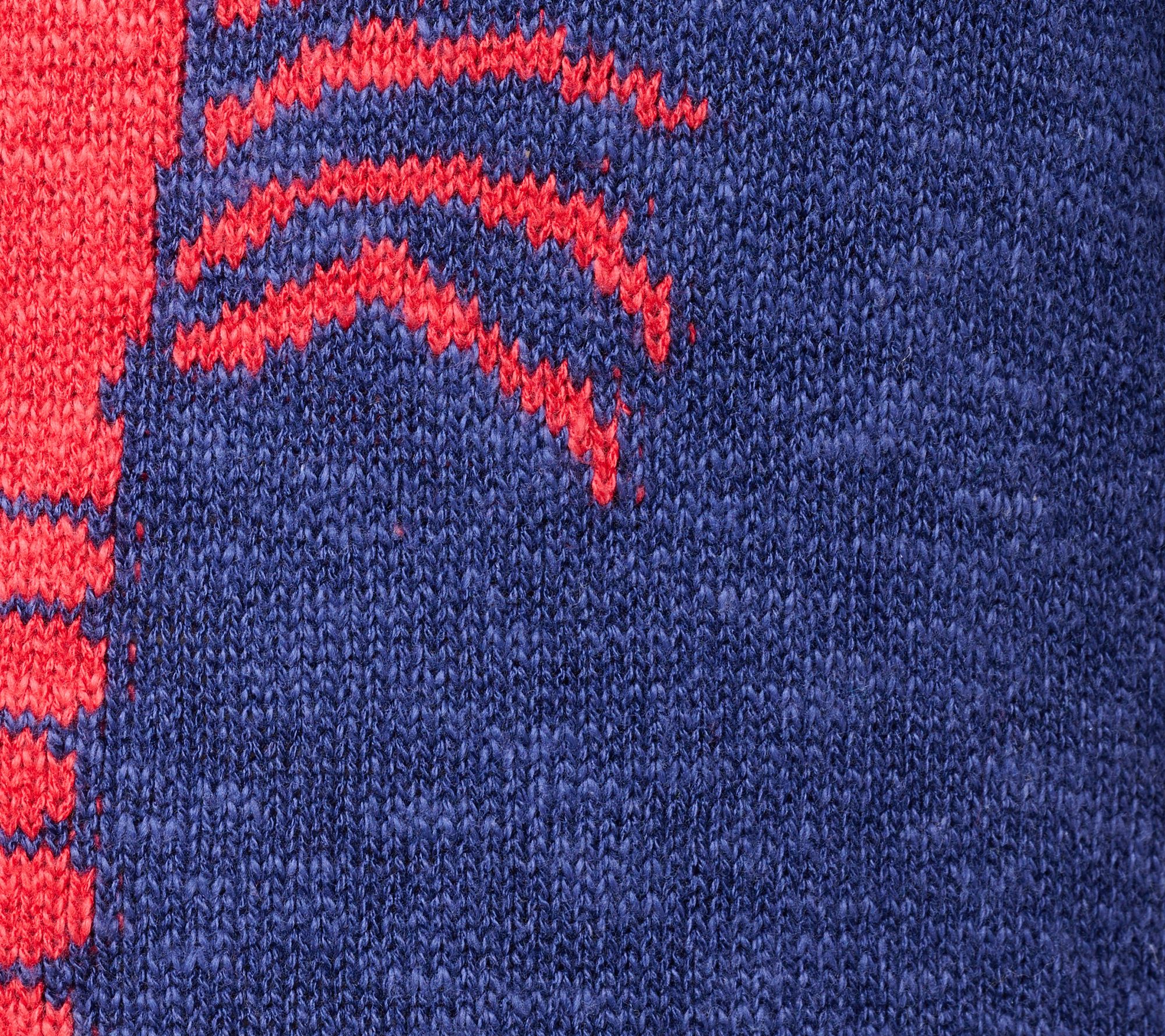 • Features: ribbed crew neckline, cuffs, and hem; elbow-length sleeves; front lobster or turtle motif; side slits