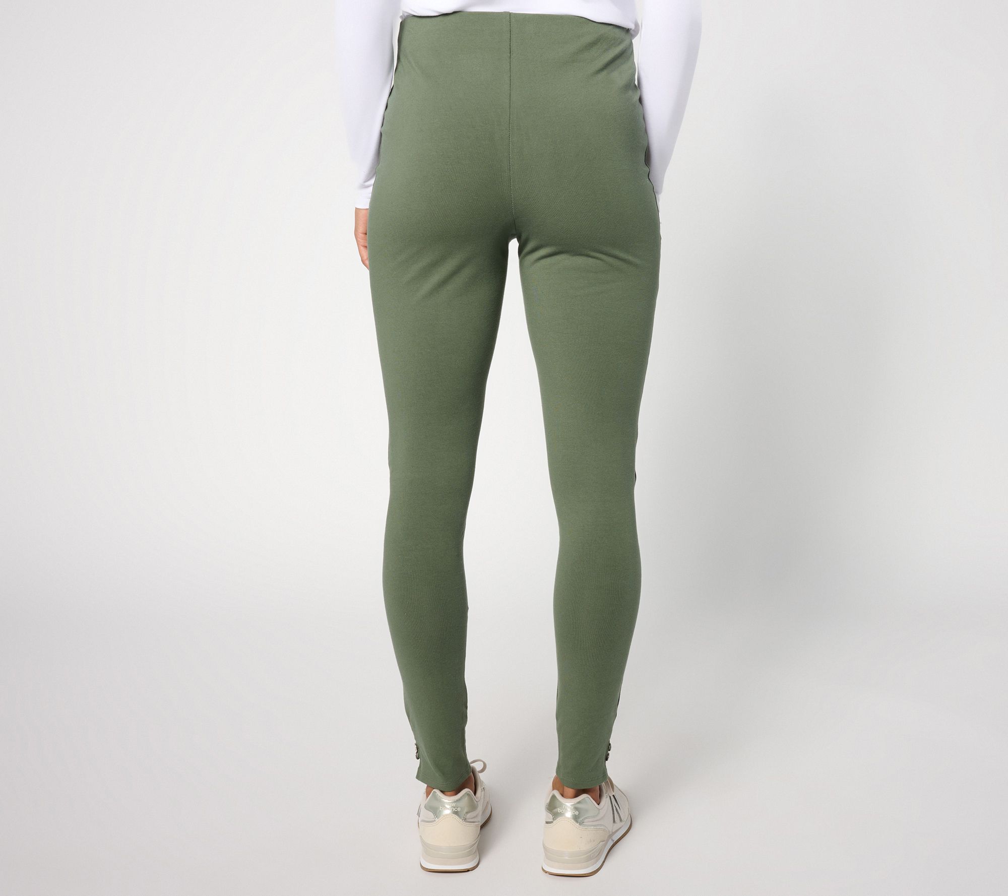Whether you're running around town or the park, these stretch pants are a fashionable choice. Button details on the hems add a sweet touch. From Denim & Co.® Fashions.