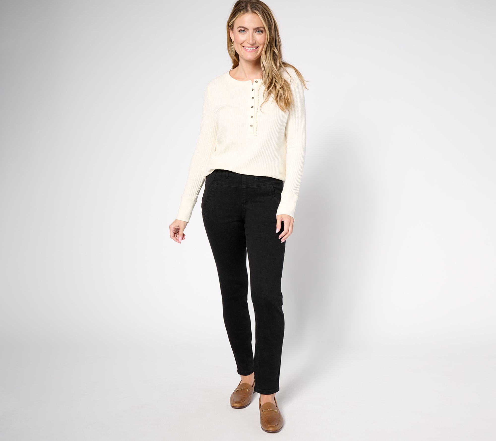 "As Is" Denim & Co. Petite Black Easy Stretch Smoothing Jean