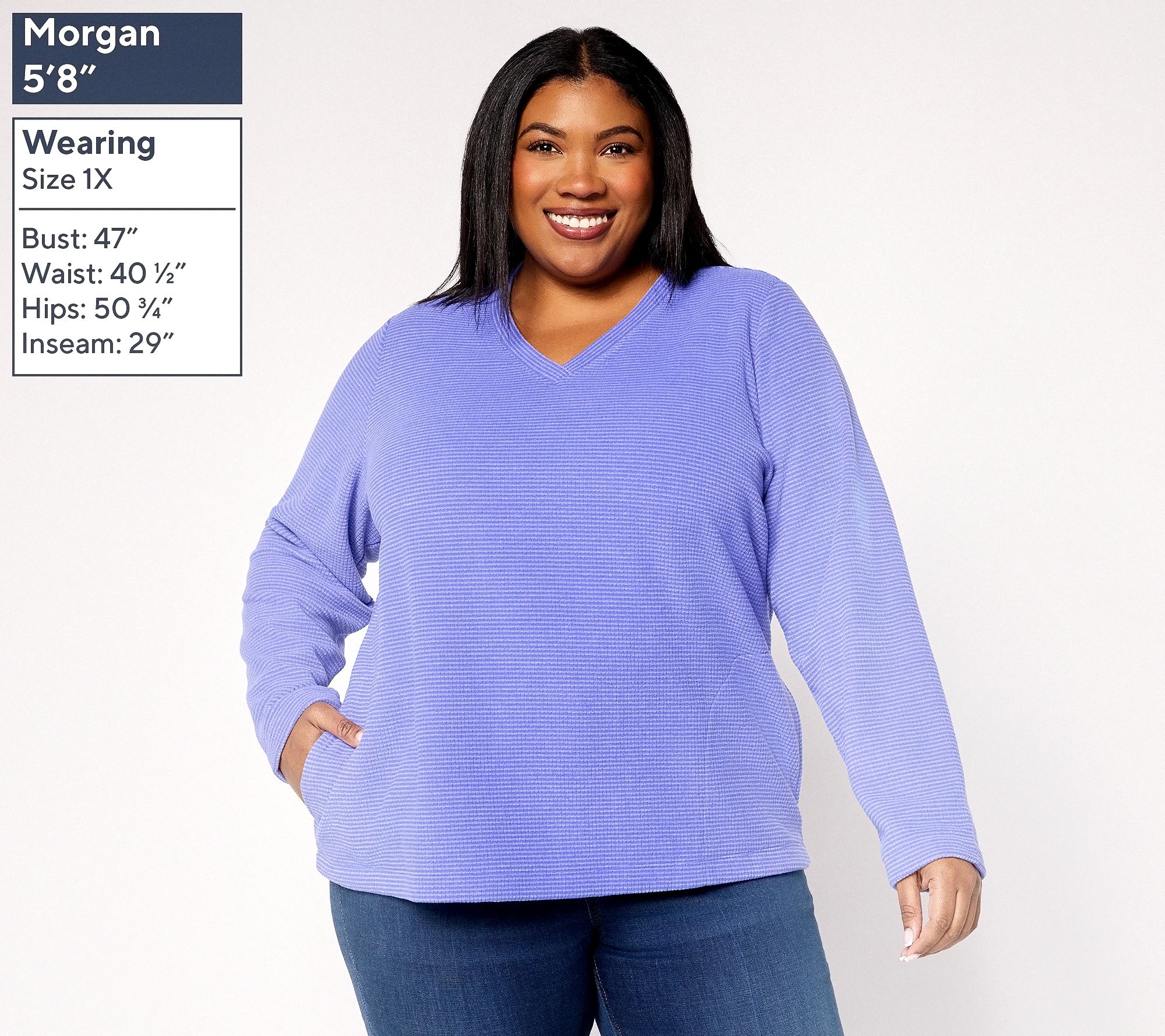 More than a trend, cozy knit fleece is a whole vibe! Denim & Co. brings you a new feel-good favorite for your comfy, relaxed wardrobe with this lovely V-neck pullover. Ready to take on anything from a day full of shopping to dinner with friends, the cold-weather must-have is the definition of casual chic. Not too dressy but not too informal (we're looking at you, hoodies), this pullover is just right. Plus, it has pockets -- how perfect! From Denim & Co.® Fashions.