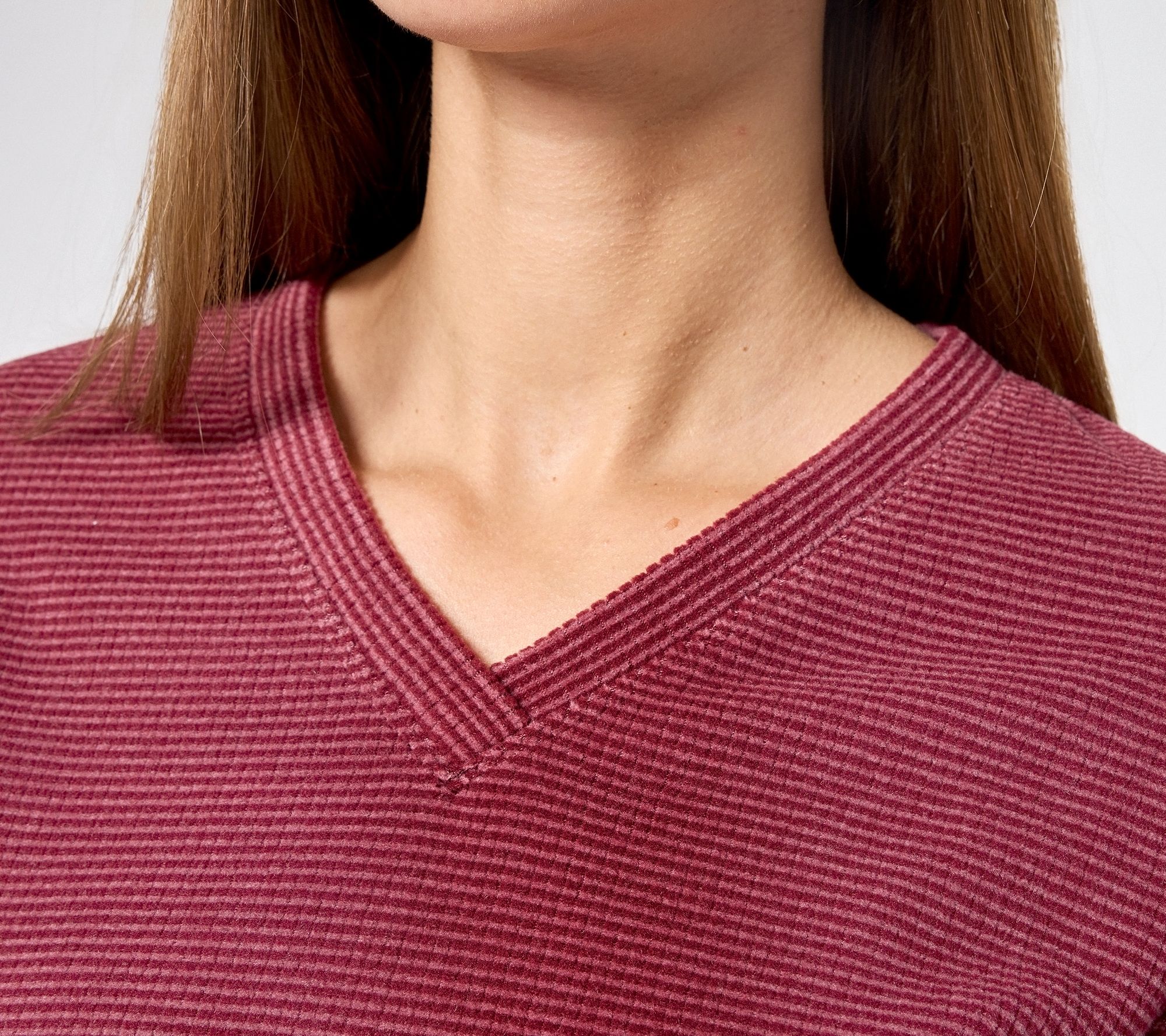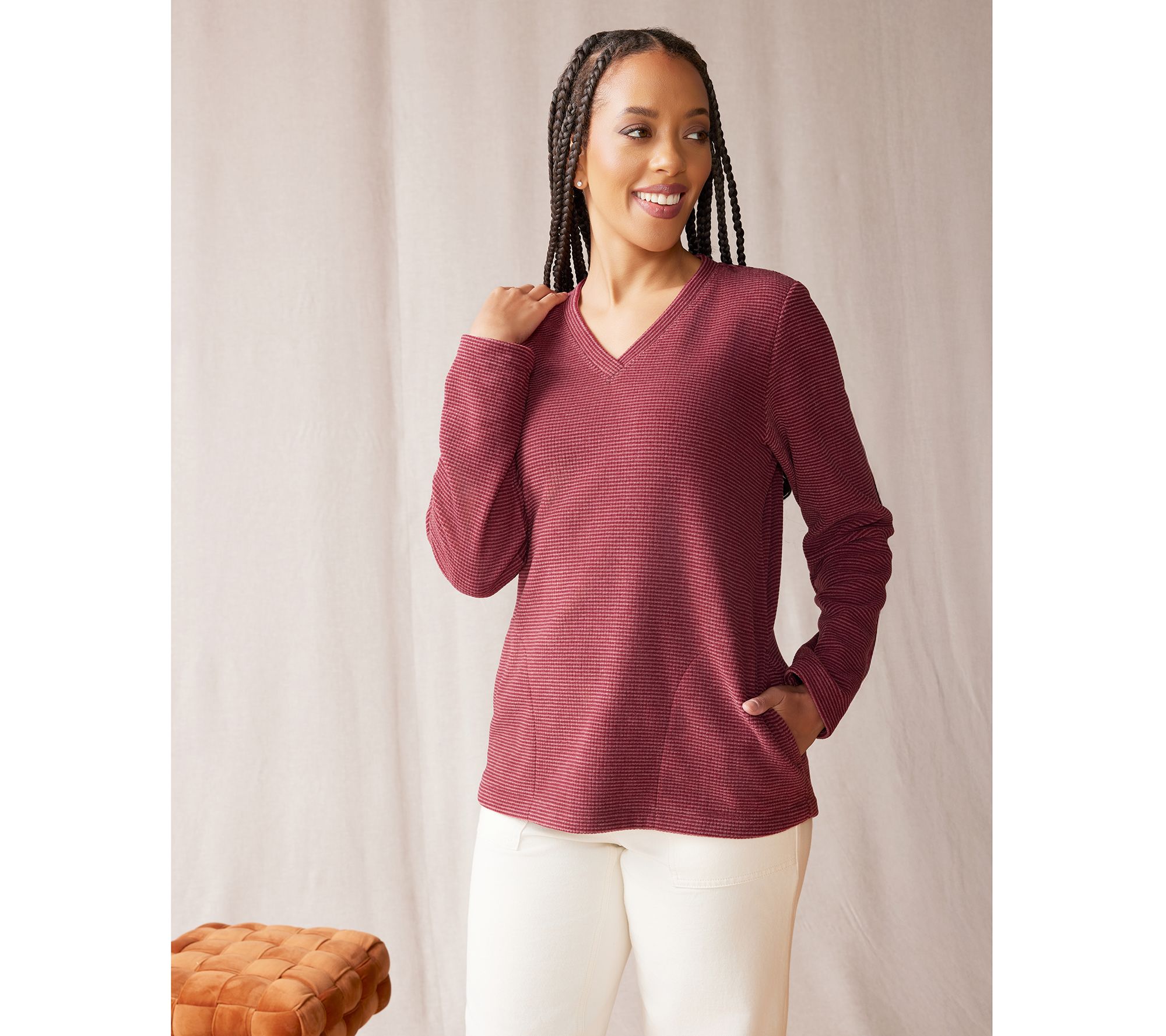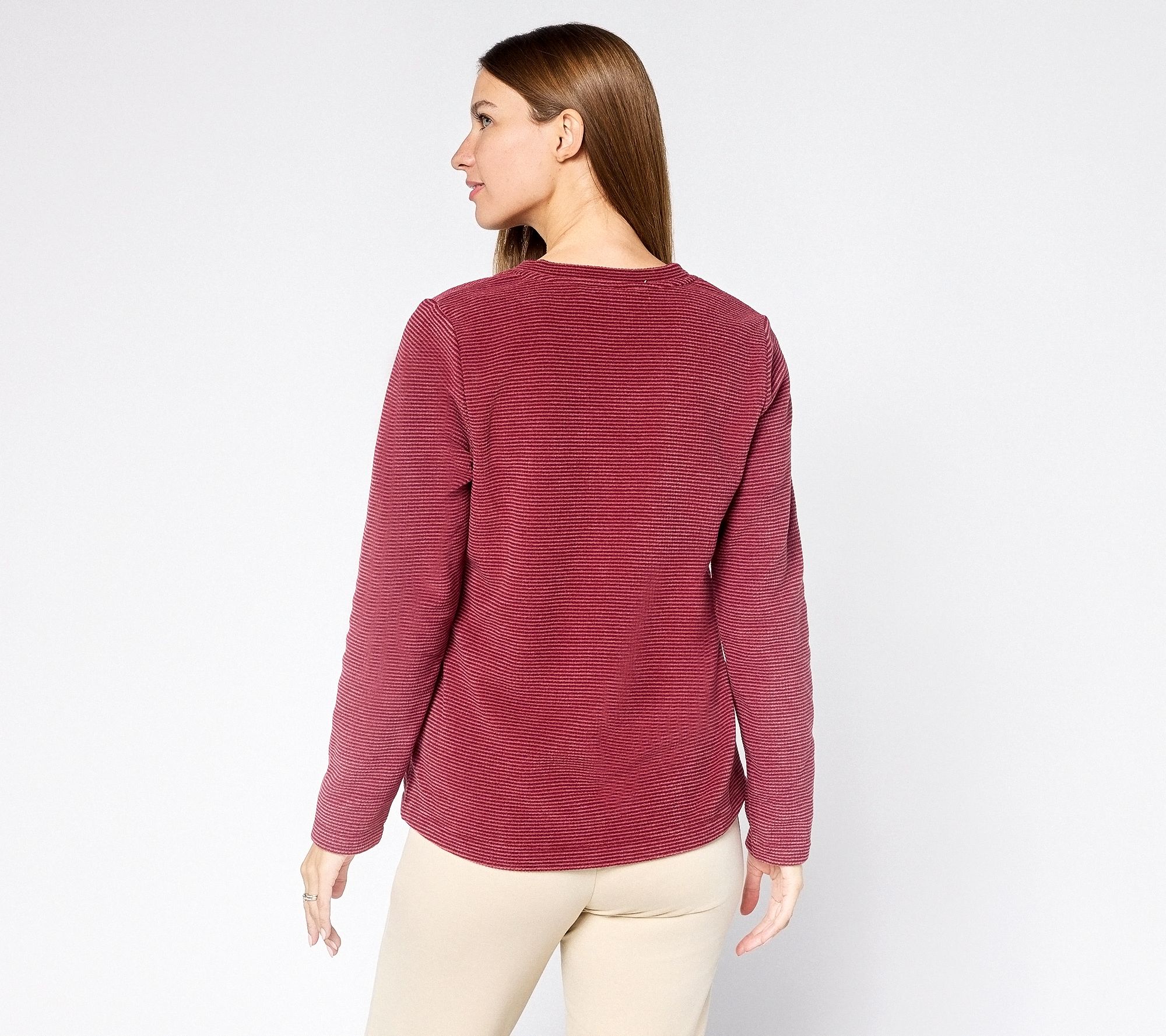 "As Is" Denim & Co. Petite Chenille Fleece V-NeckPullover with Pockets