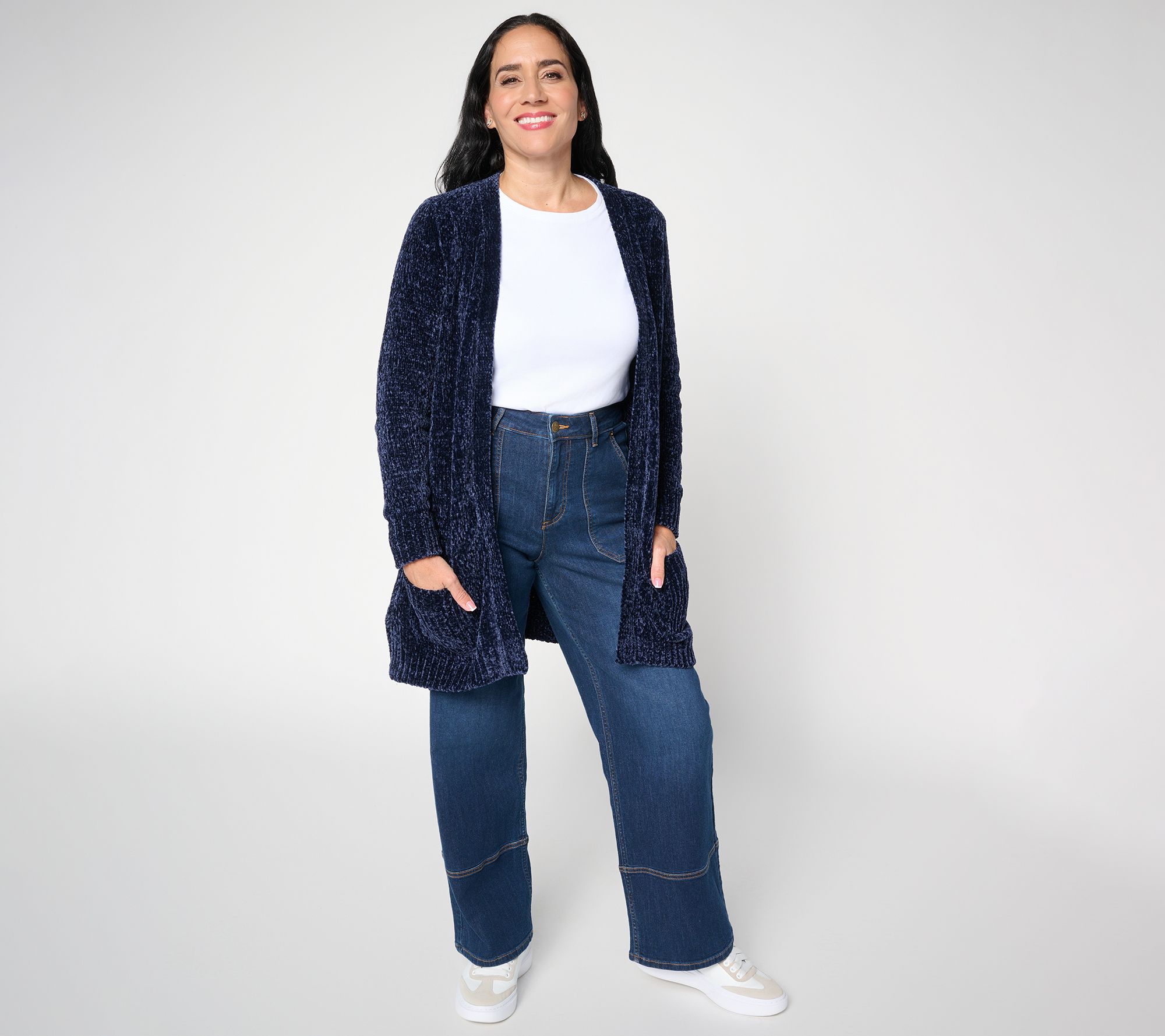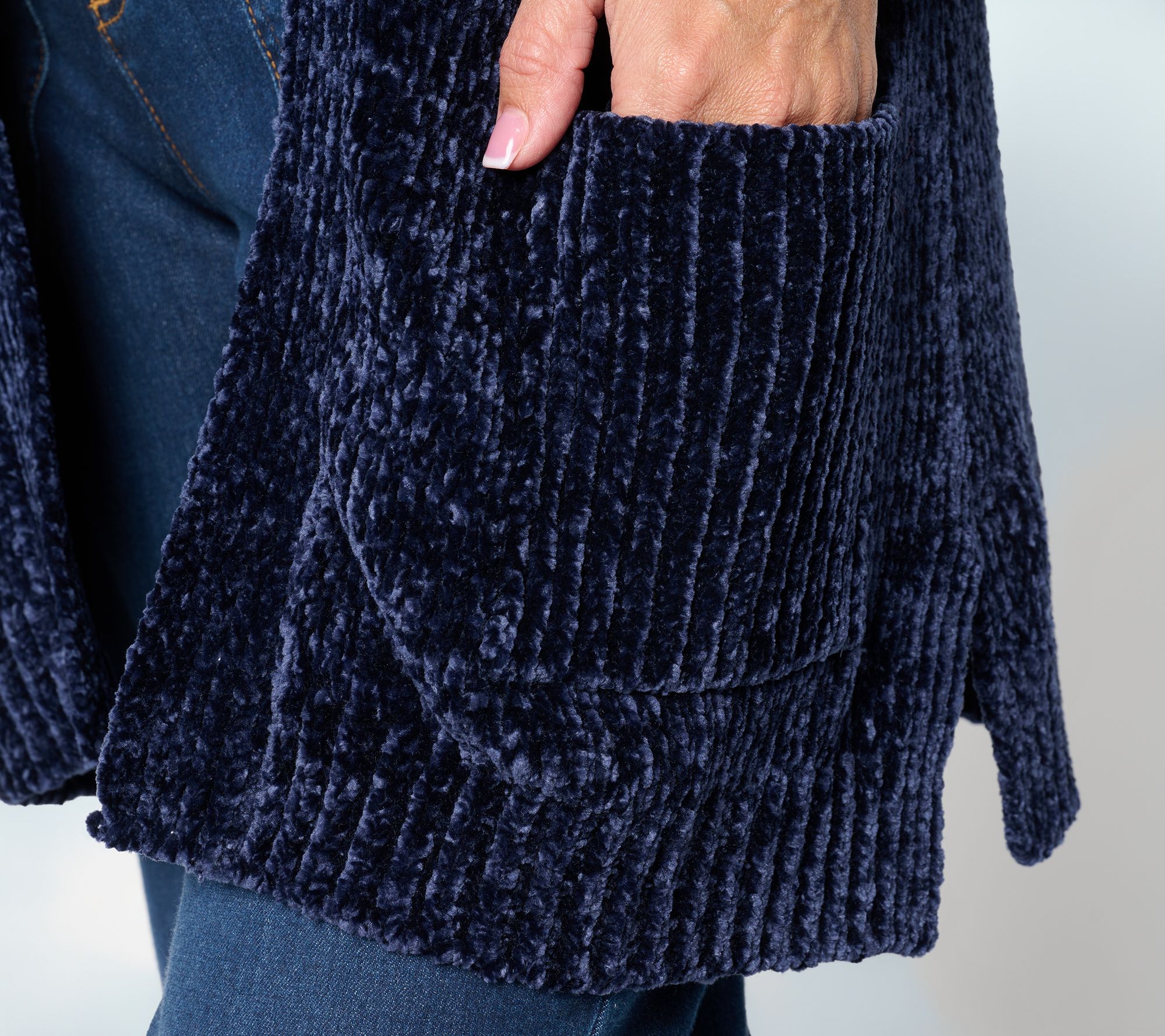 That chenille feel. From cool morning commutes to relaxed evenings on the couch, the soft texture and easy-to-layer style of this cardigan bring coziness and comfort to any plan. From Denim & Co.® Fashions.