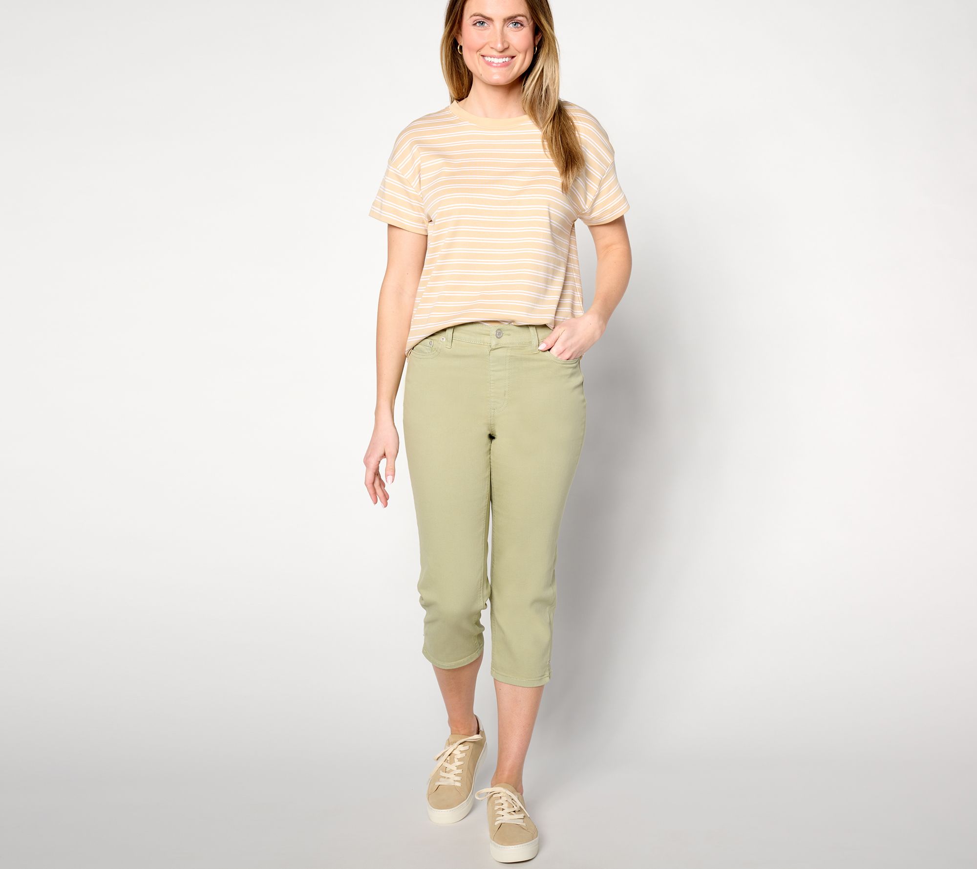 What your spring/summer closet needs: Easy Stretch denim to feel comfy for all your sunny-day activities. Greet the season with a fresh (and flexible!) pair of capris to confidently conquer your biking, hiking, picnicking, or strawberry-picking plans. From Denim & Co.® Fashions.