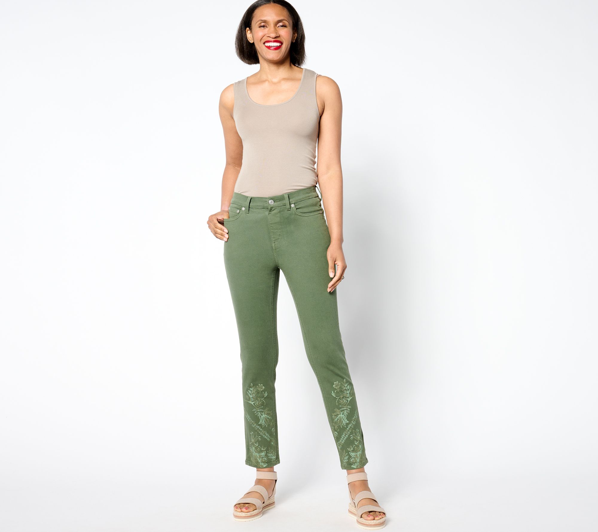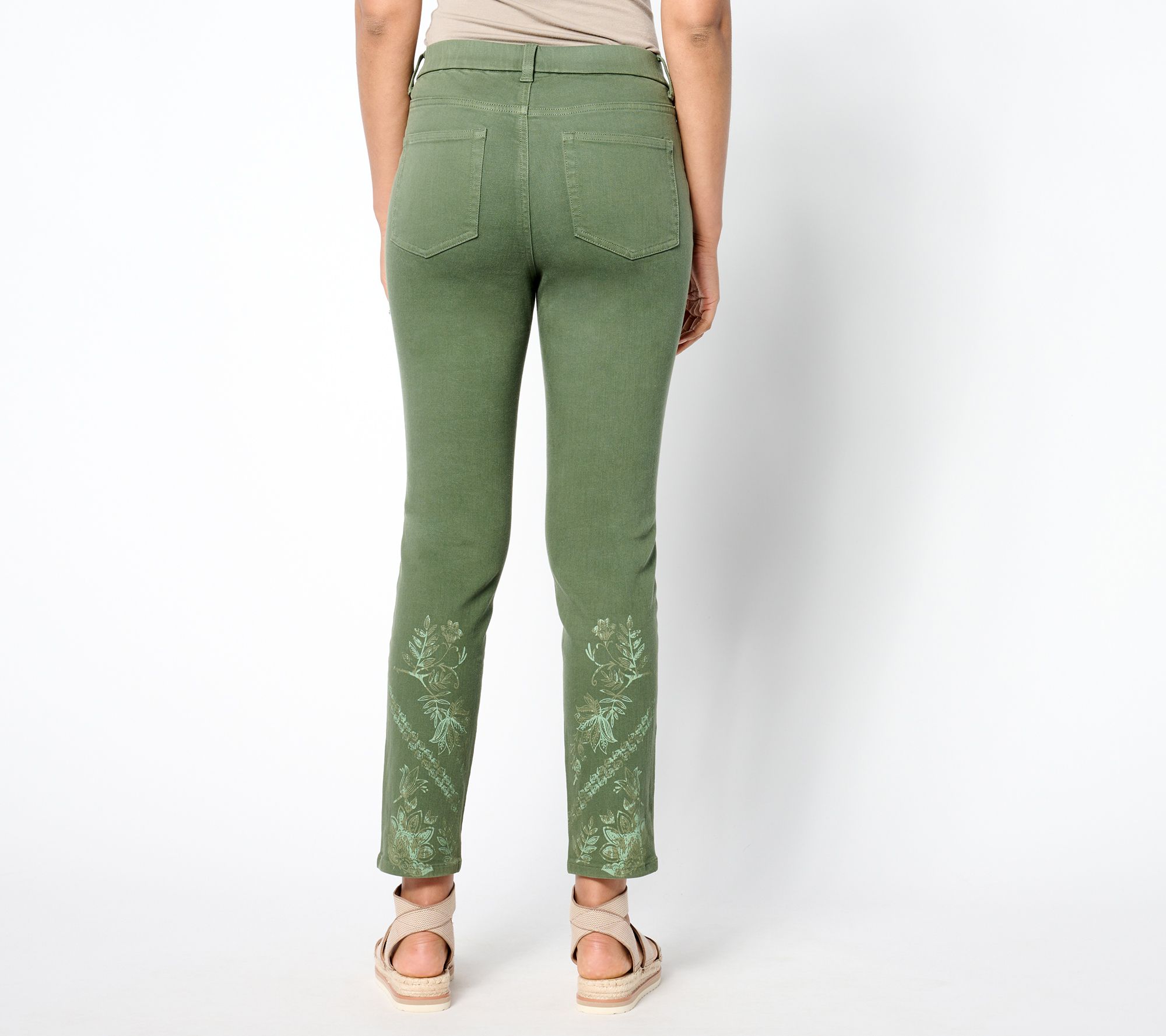 Don't look now, but Denim & Co.'s stitched together a floral-inspired refresh for your denim 'fits! Botanical embroidery embellishes the front and back of these slim-leg ankle jeans, effortlessly elevating your casual-chic vibe with all-eyes-on-you attention. From Denim & Co.® Fashions.