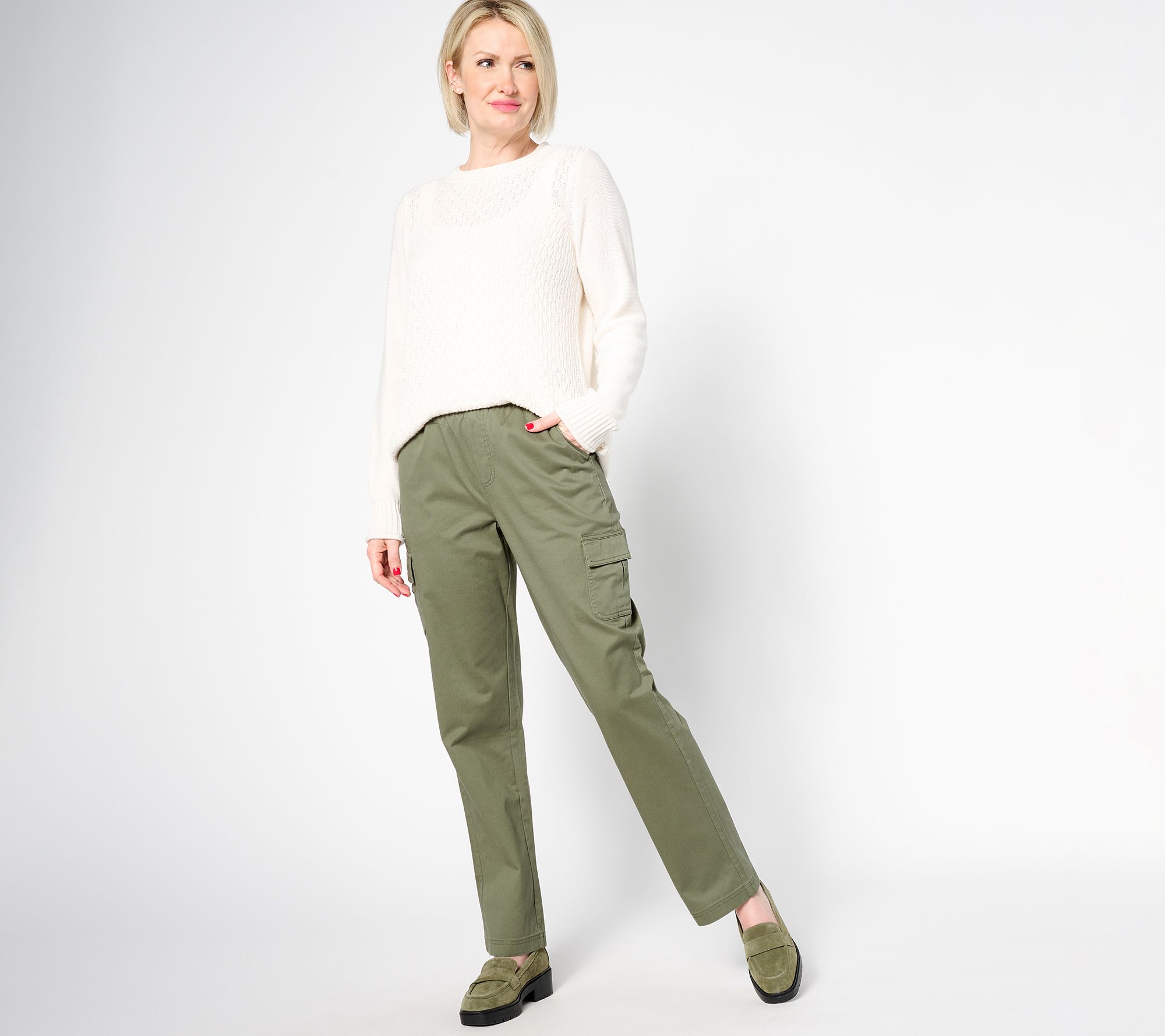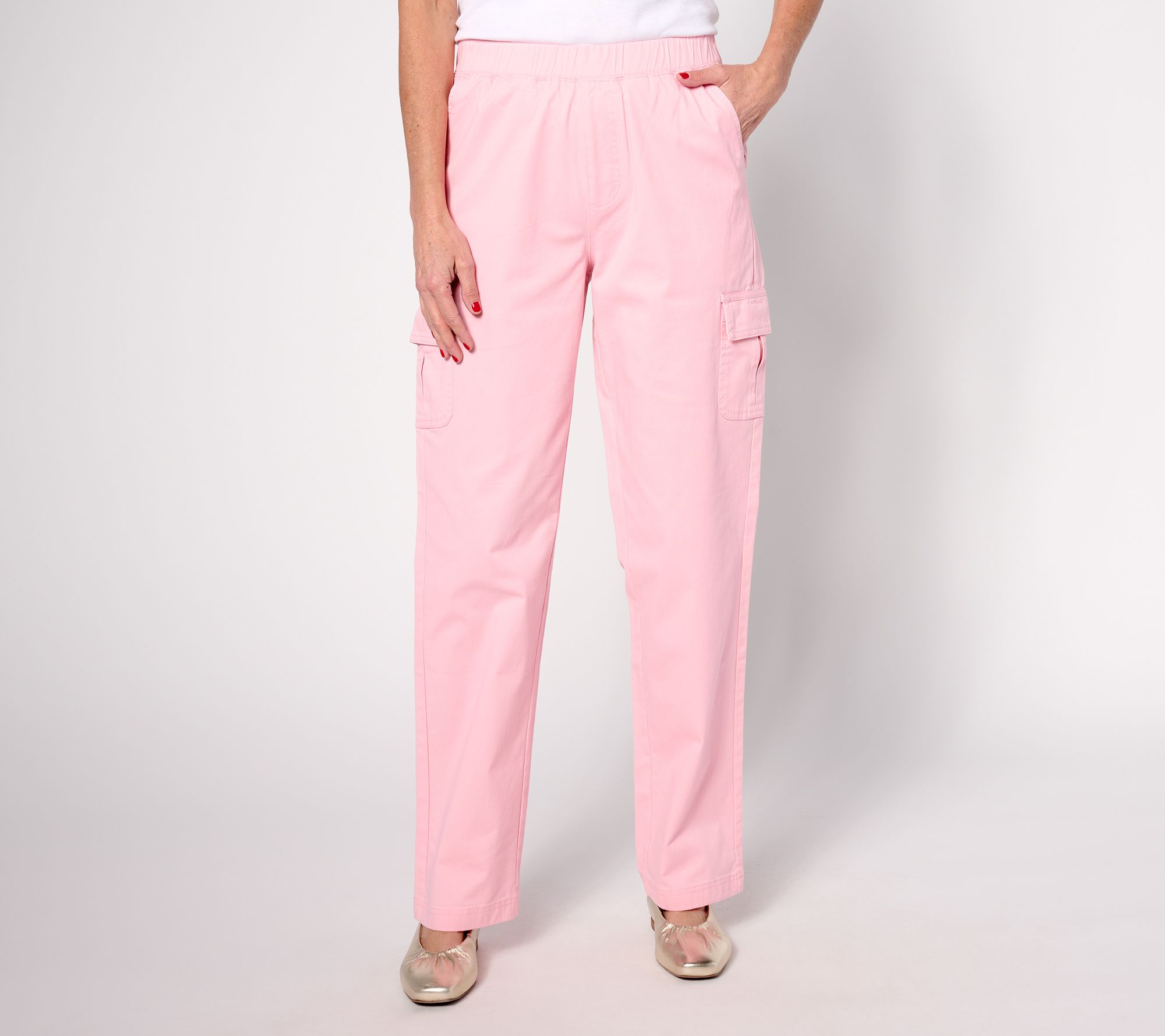 "As Is" Denim & Co. Petite EasyWear Twill Pull On Cargo Straight Pants