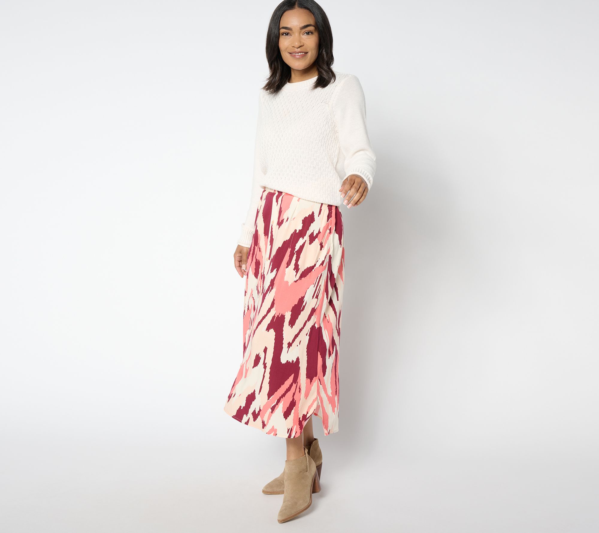 "As Is" Denim & Co. Petite Printed Midi Skirt with Pockets