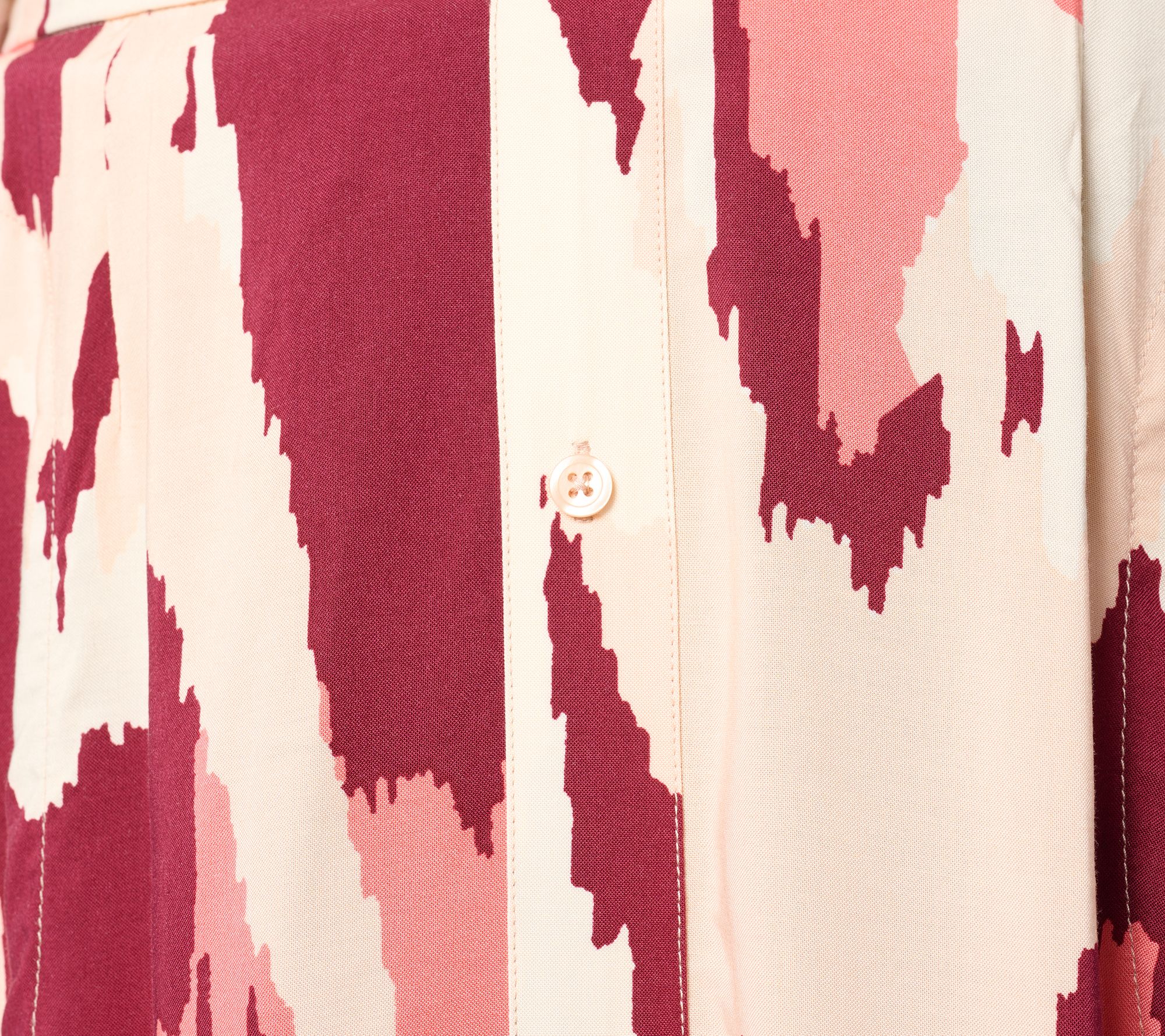 • Features: elastic waistband, pull-on style, side pockets, side slits, printed abstract design, non-functional front button placket