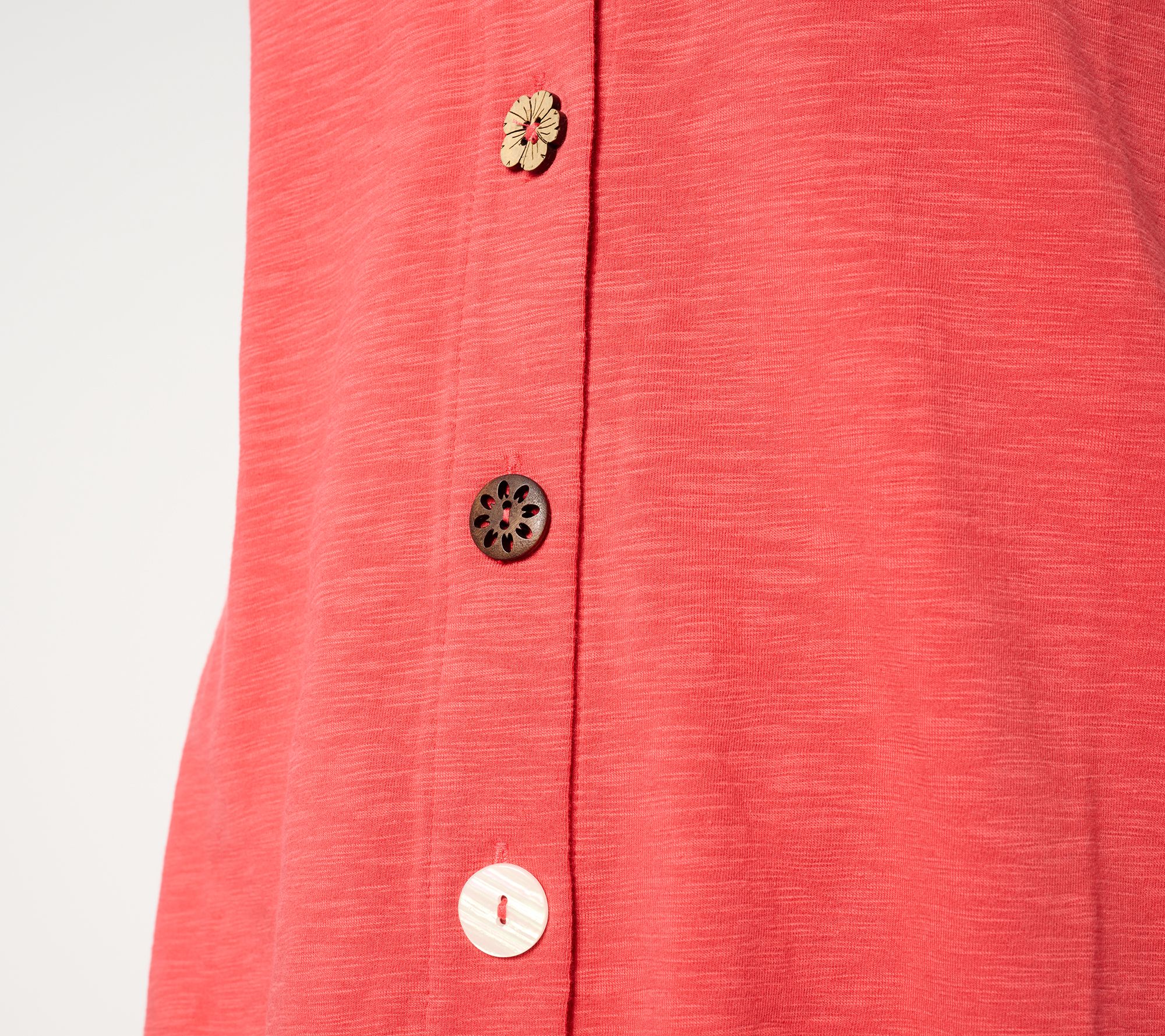 "As Is" Denim & Co. Petite Texture Knit Sharkbite Hem Button Tunic