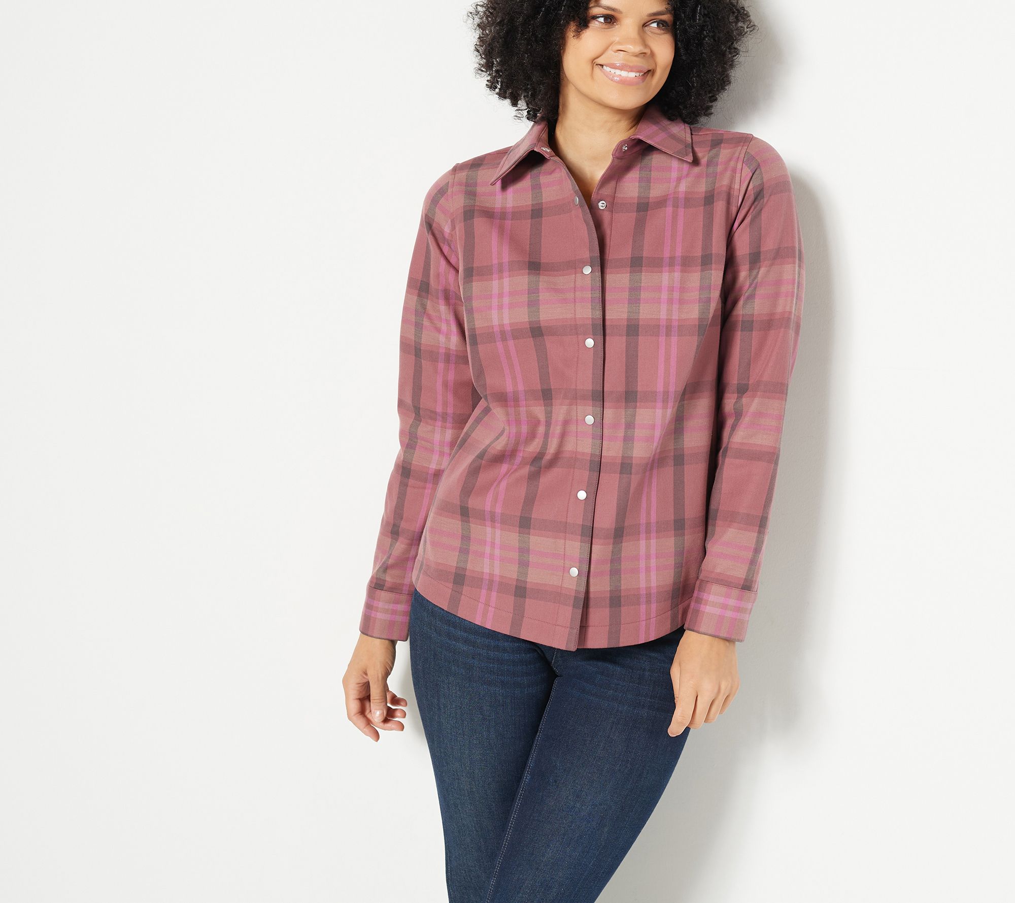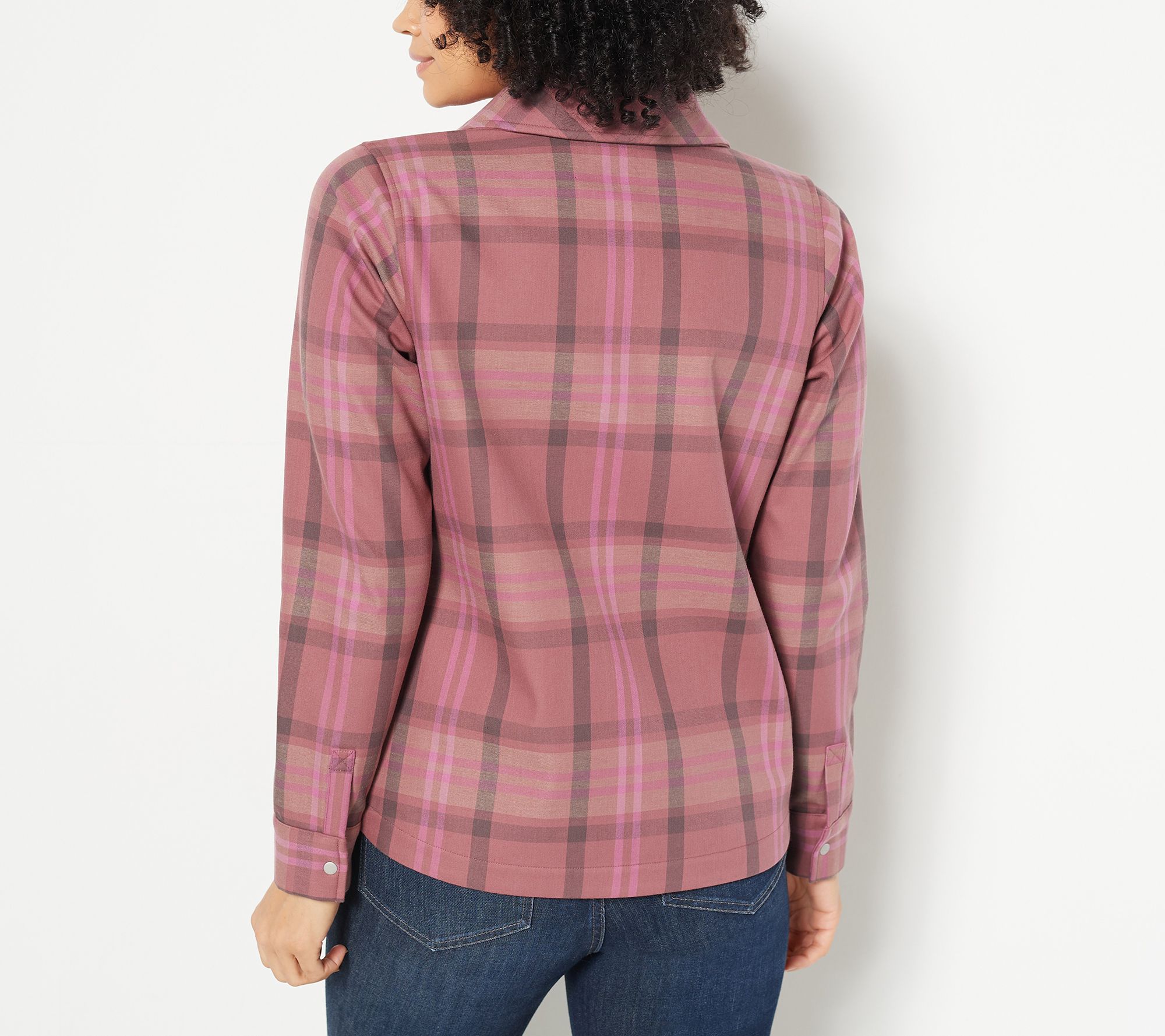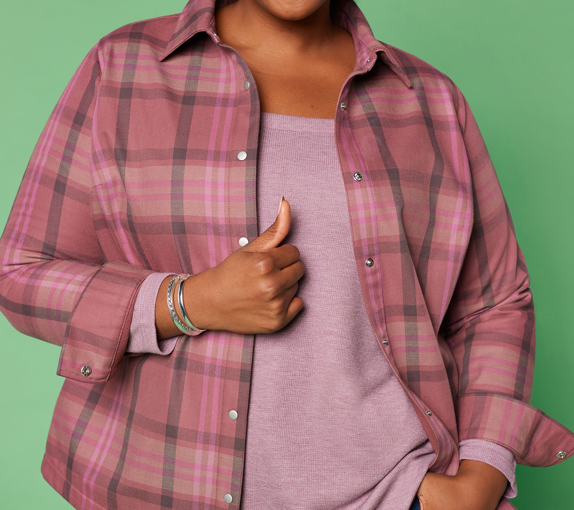 Chilly temps bring out some of our favorite looks. Pair this flannel shacket with your cutest boots to create your new favorite look for cool weather. From Denim & Co.®.