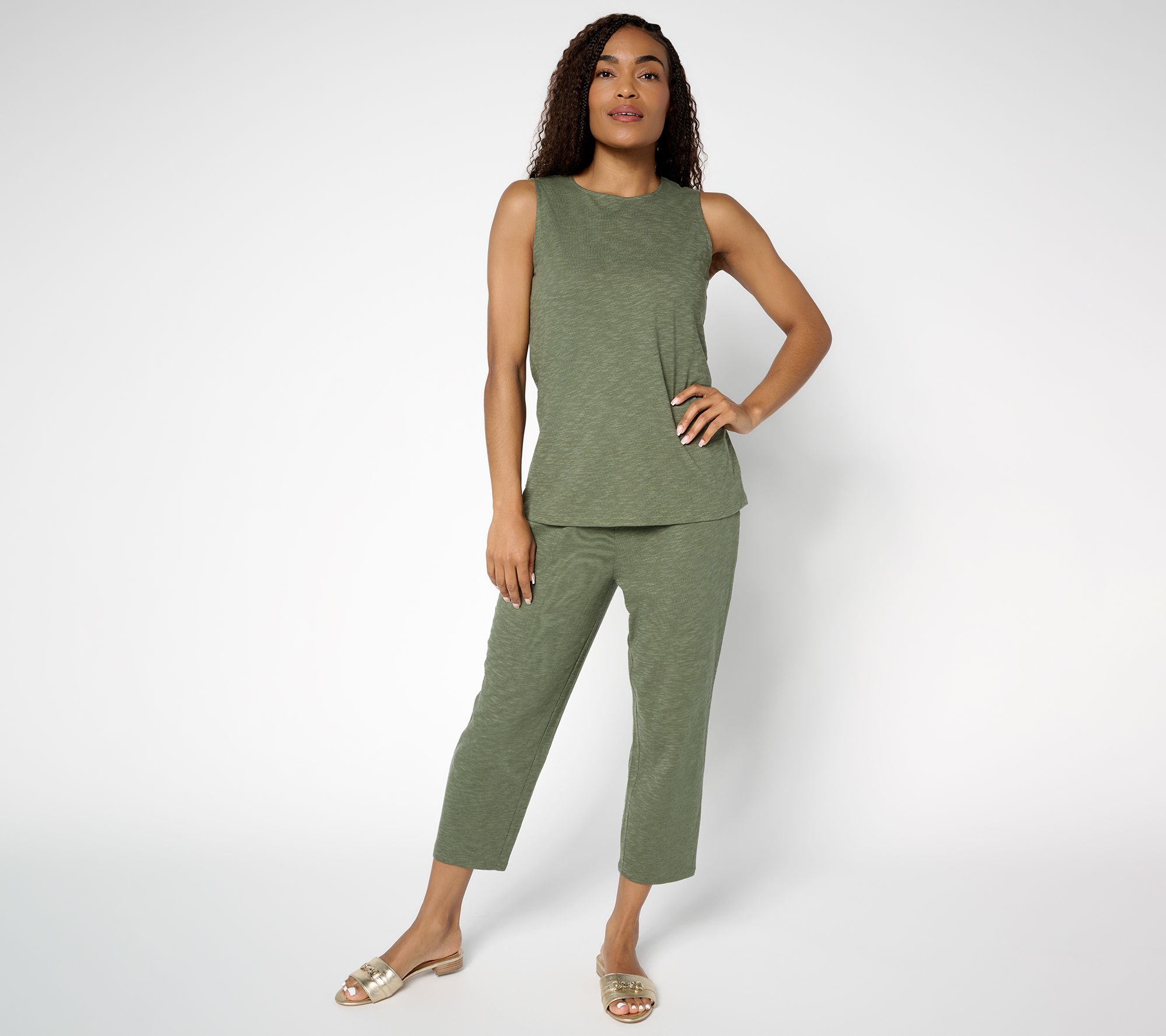 Pulled-together for appointments and lunch plans. Comfy enough for a mid-day nap. This slub jersey tank top checks all the boxes. Try it under a lightweight cardigan or wear it solo on sun-filled days. From Denim & Co.® Fashions.