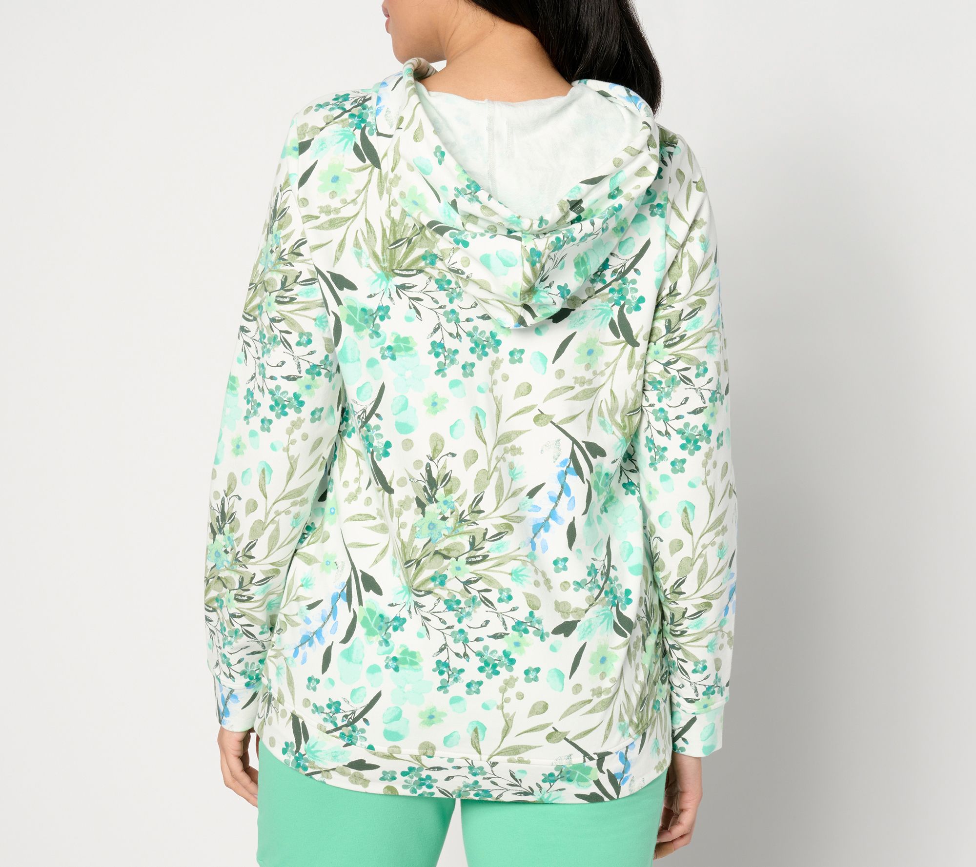 "As Is" Denim & Co. Printed French Terry Long Sleeve Hooded Pullover