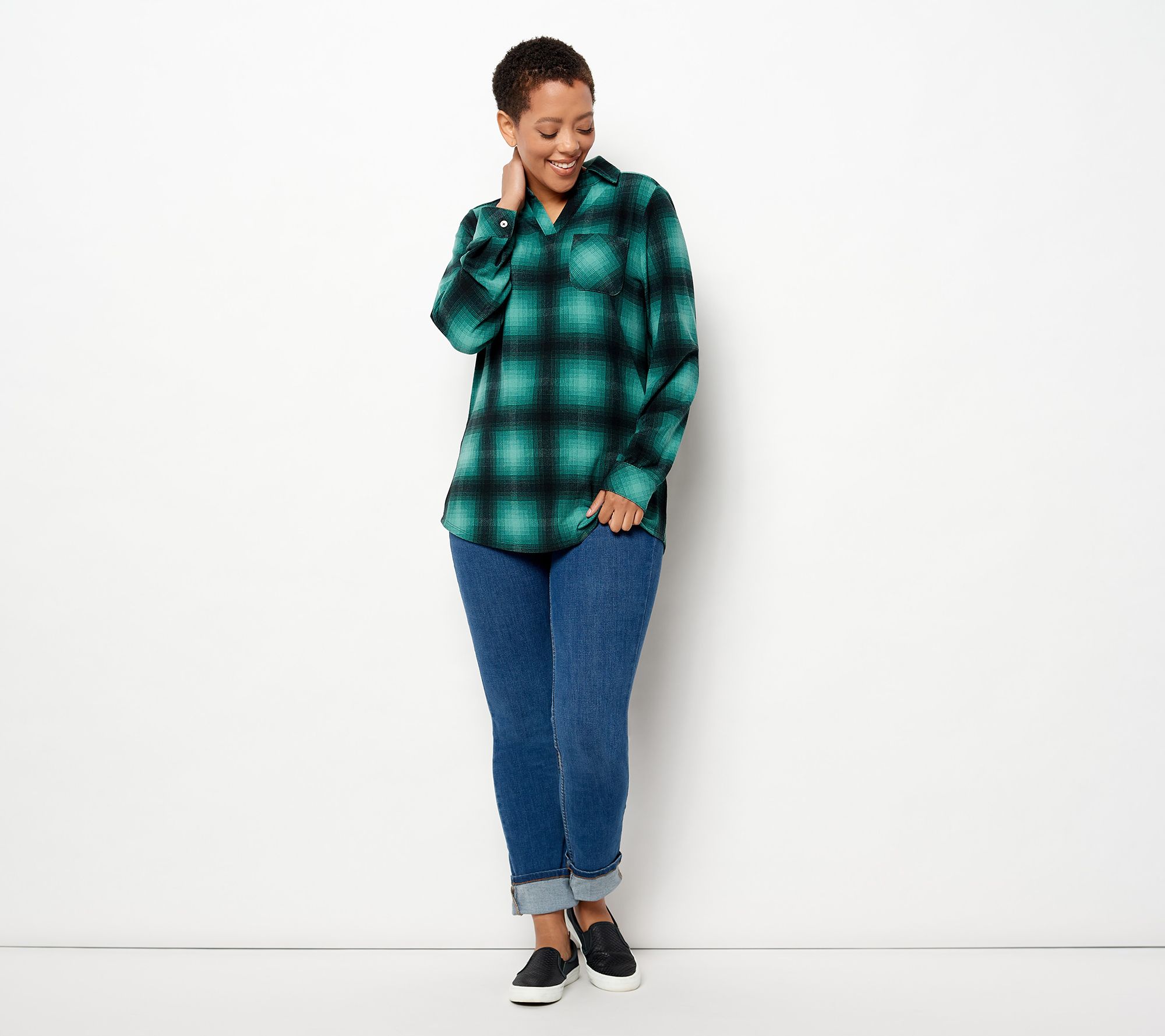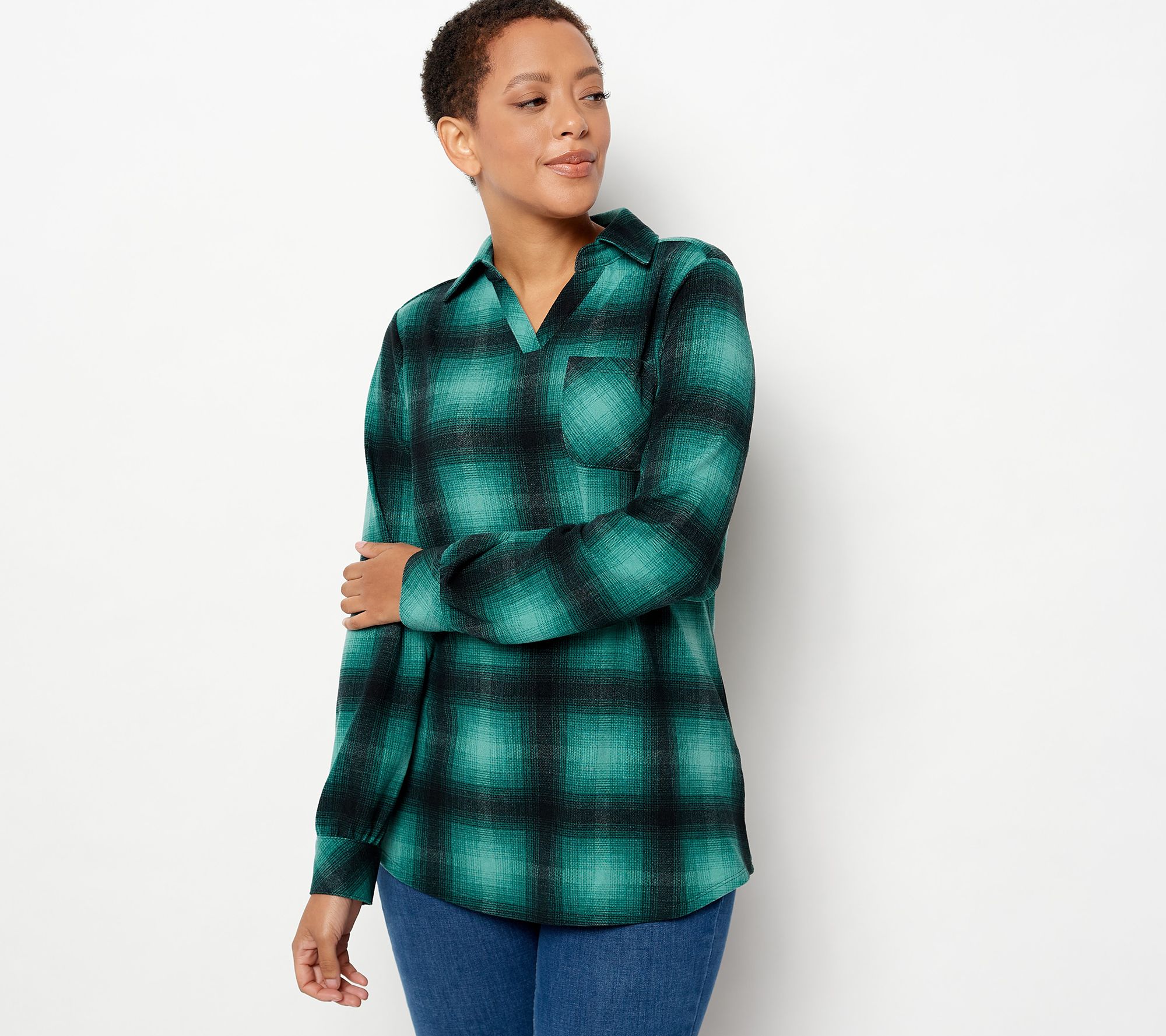 Easy wear is right! Slip into this Heavenly Jersey collared tunic and you'll never want to take it off. From Denim & Co.® Fashions.