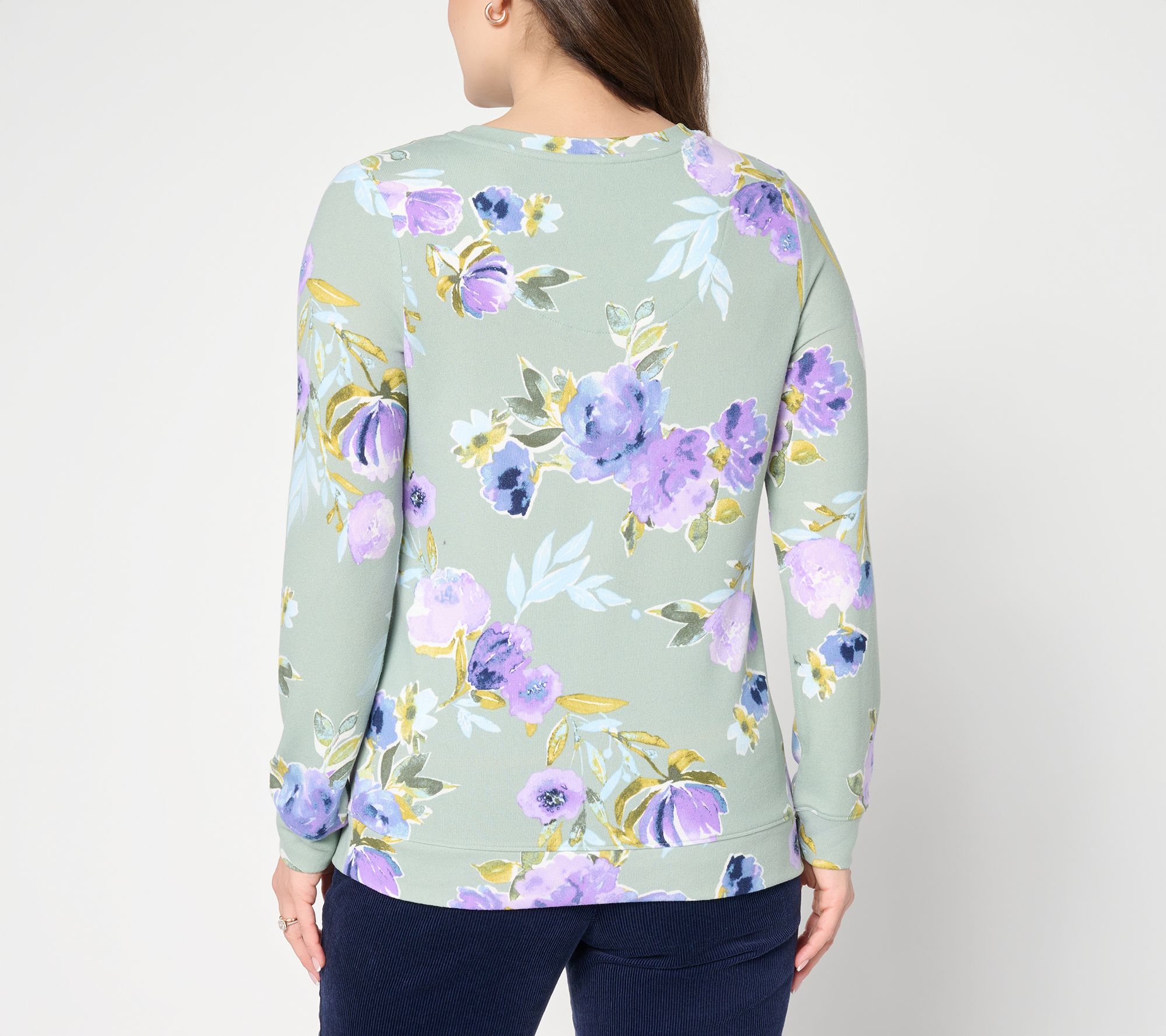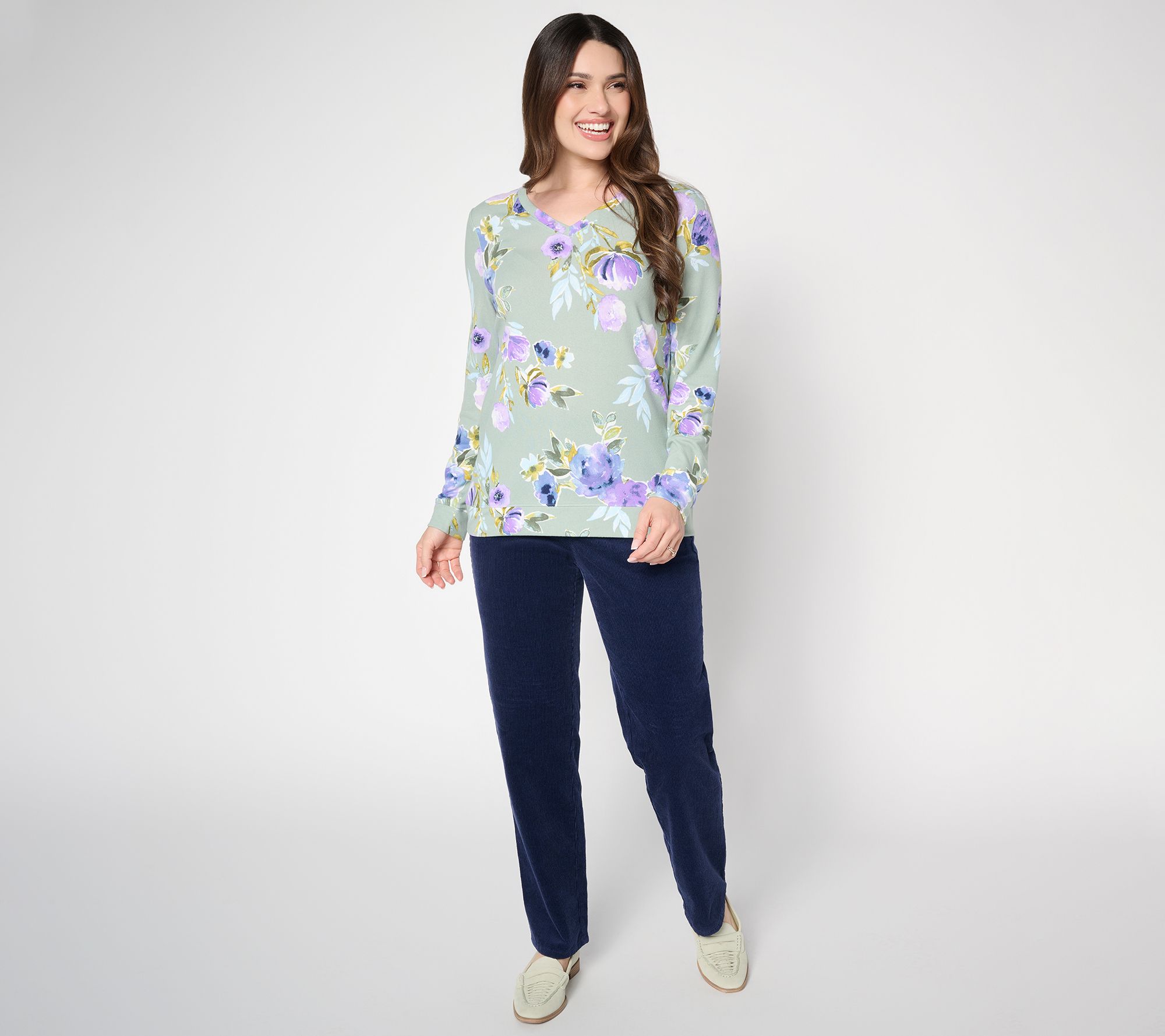 "As Is" Denim & Co. Printed Heavenly Jersey V-Neck Pullover