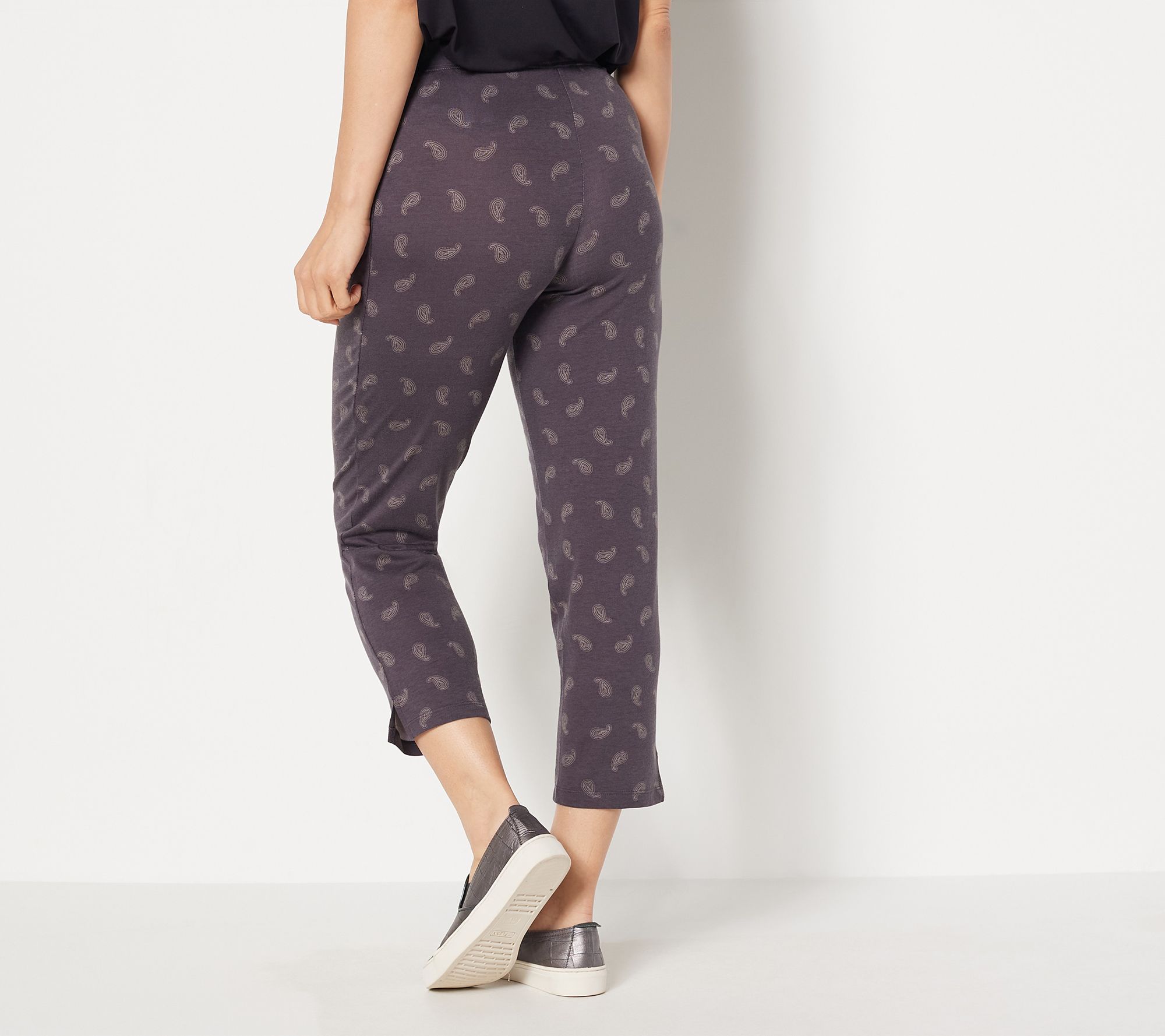 "As Is" Denim & Co. Printed Jersey Pull-On Slim-Leg Cropped Pants