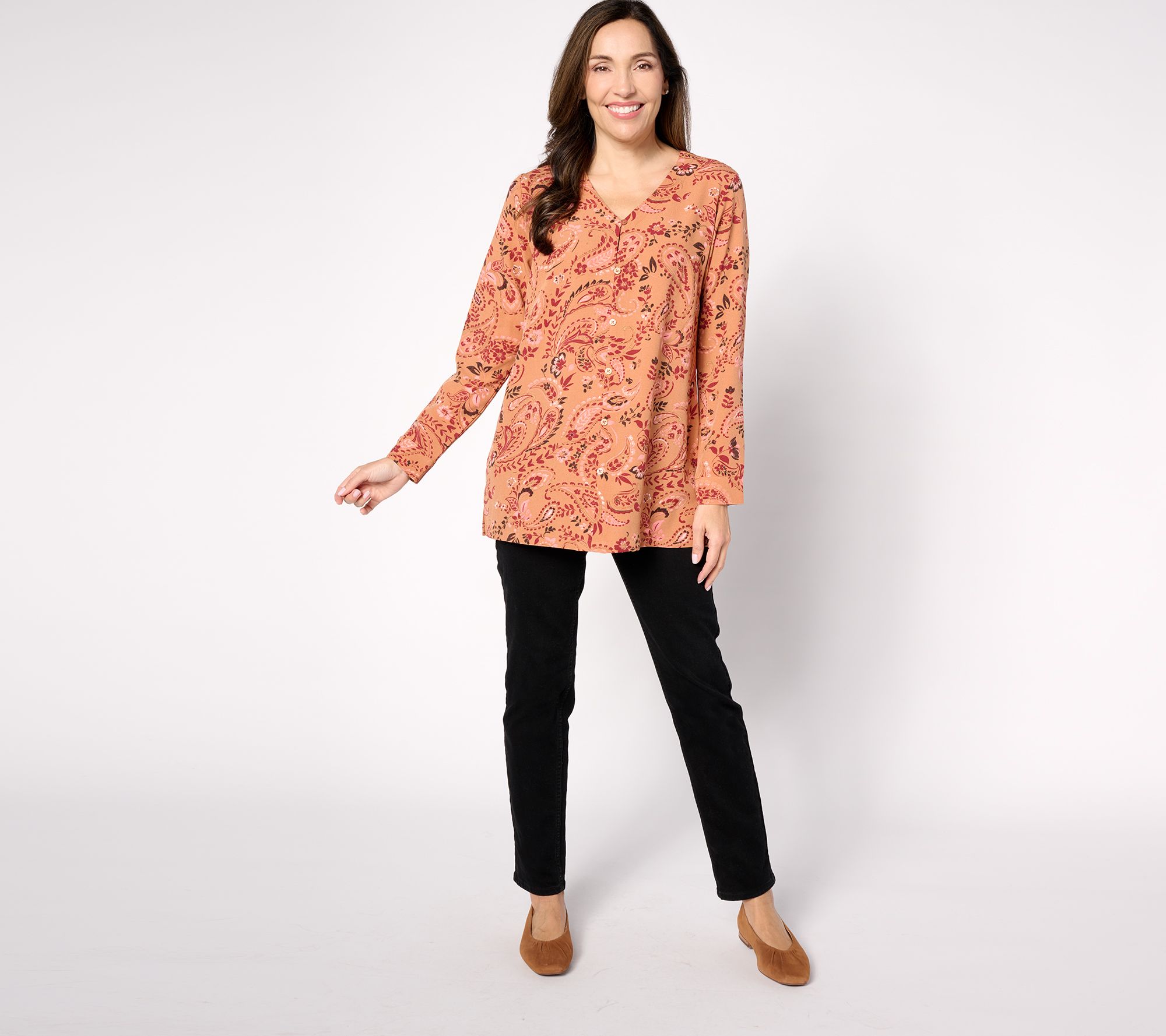 Breeze through your day in this pretty printed tunic and let your sophisticated sense of style speak for itself. From Denim & Co.® Fashions.