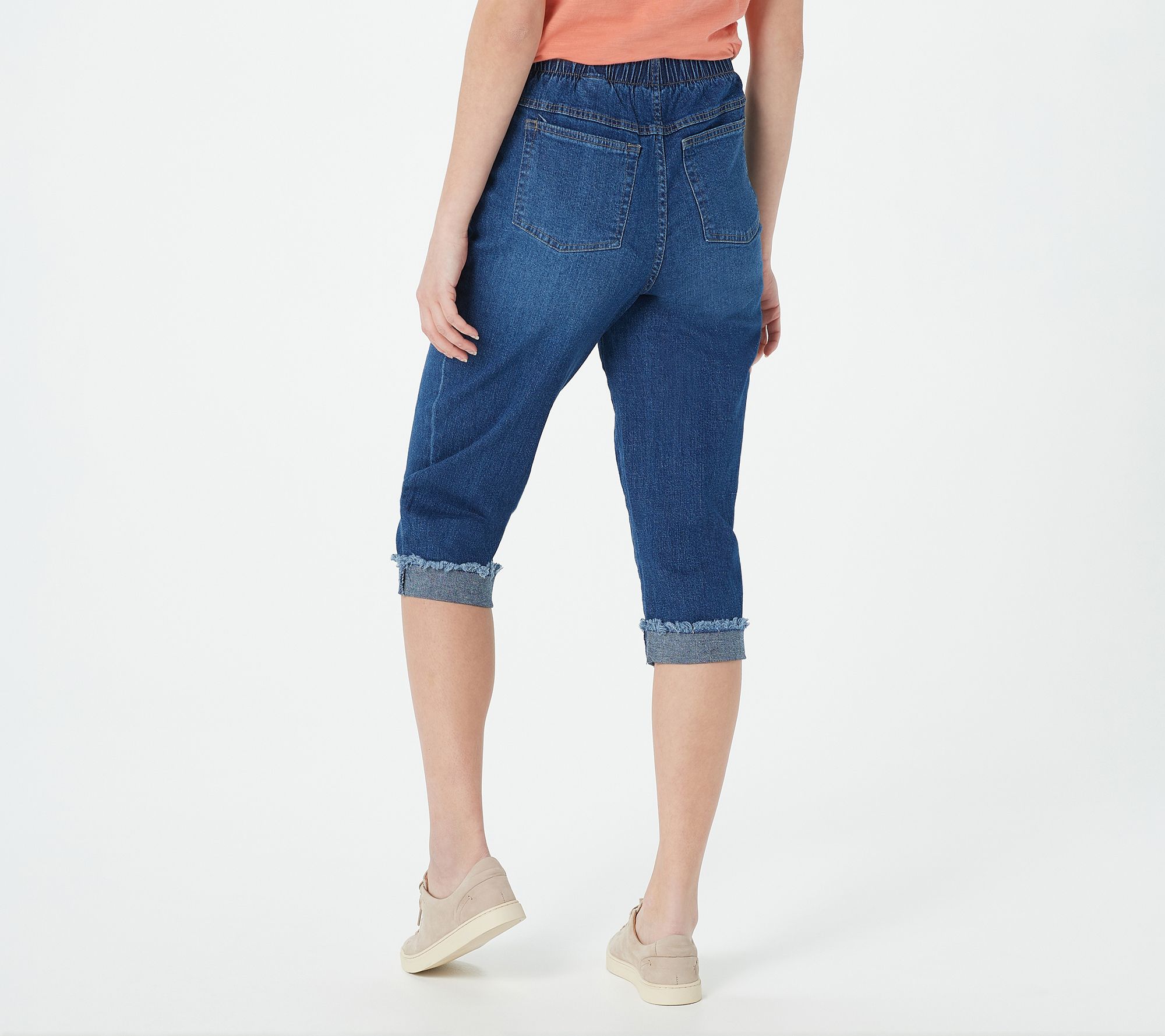 "As Is" Denim & Co. Pull-on-5- Pocket Capri Pants with Roll Cuff