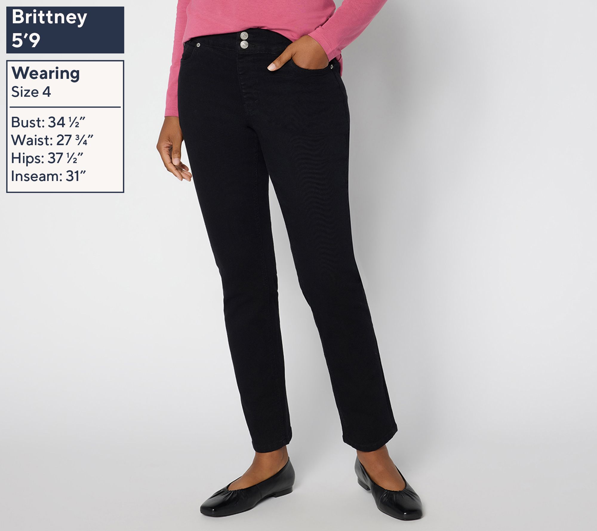 "As Is" Denim & Co. Reg Black Classic Stretch Double Button Jeans