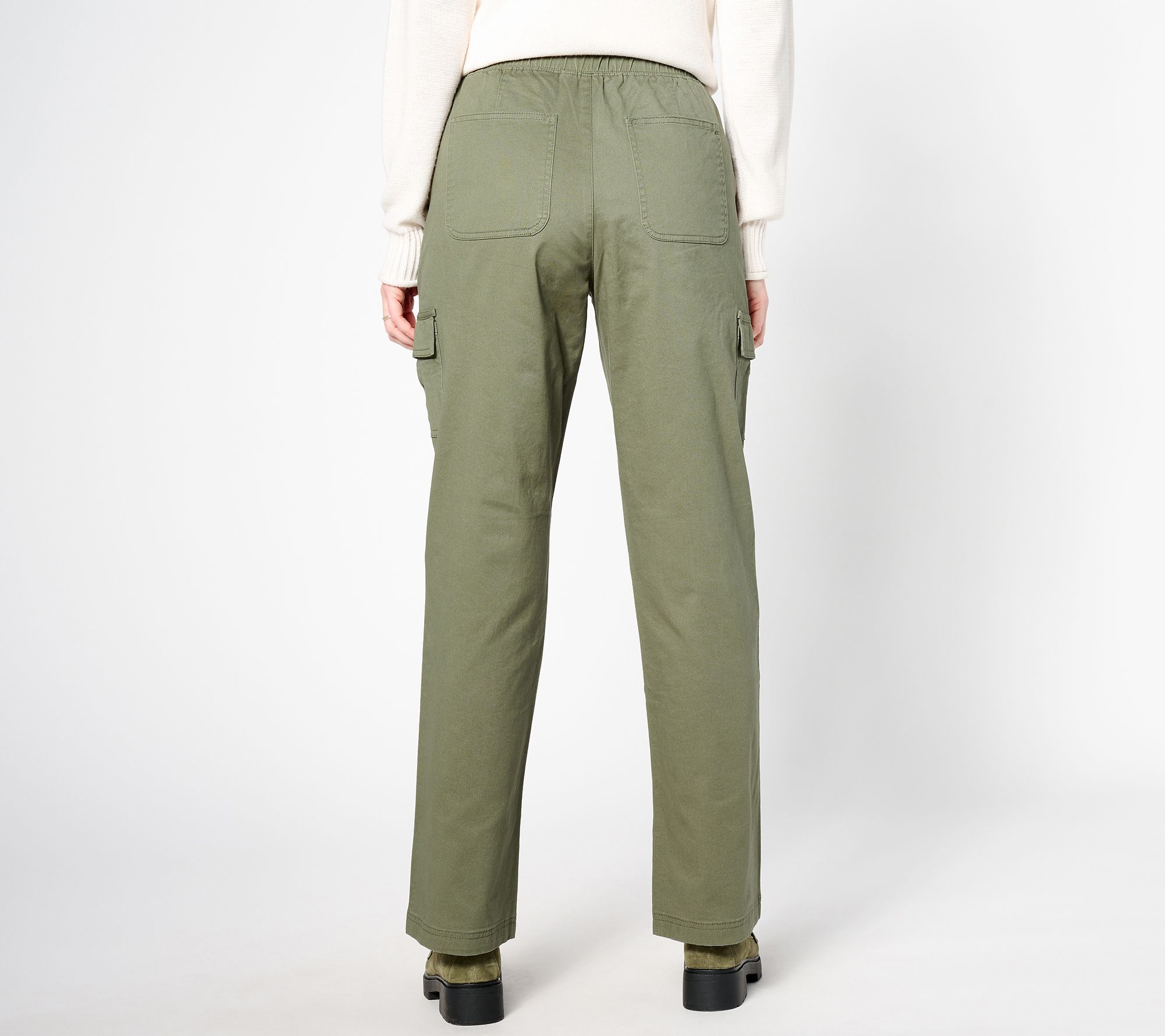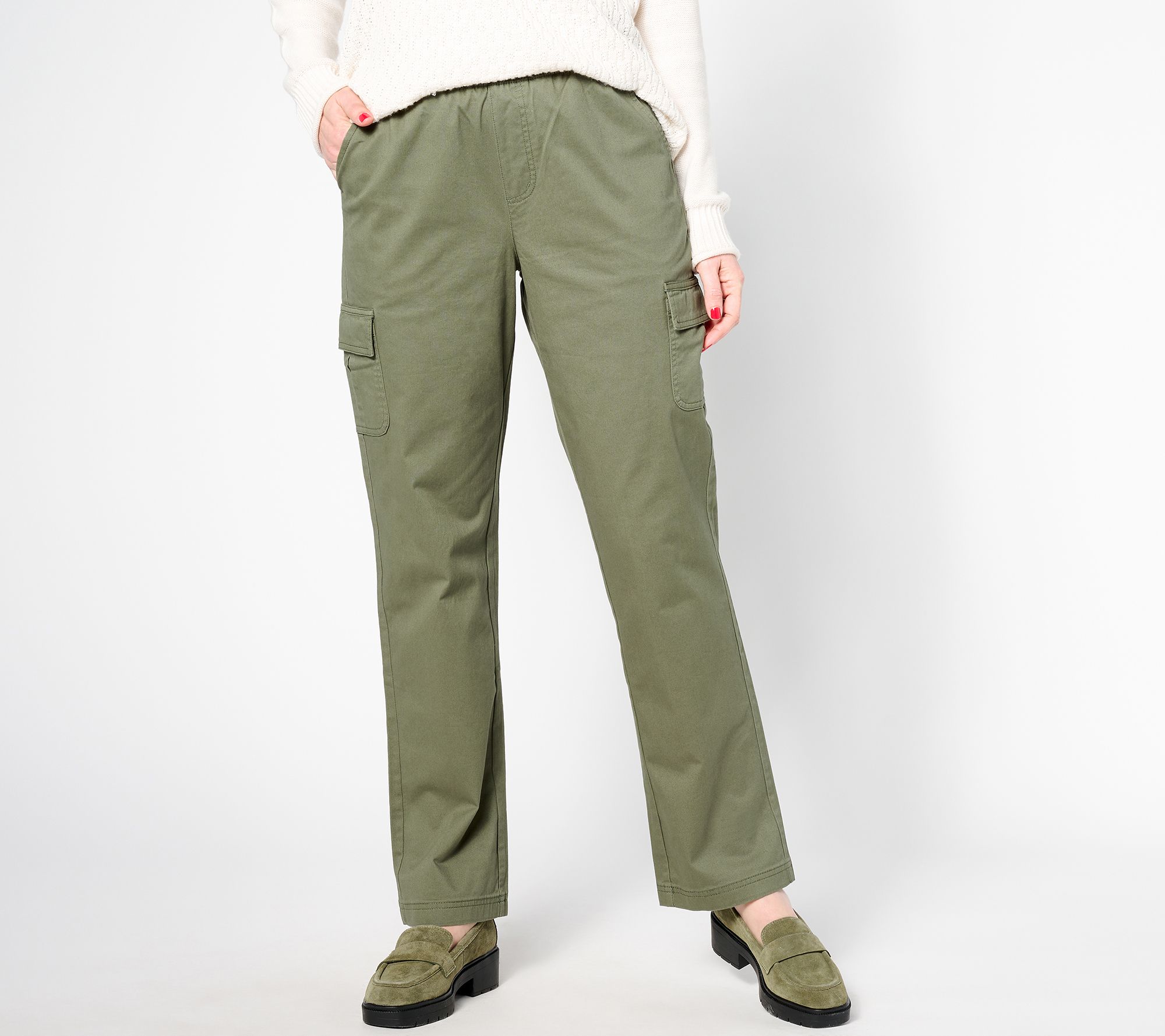 "As Is" Denim & Co. Reg EasyWear Twill Pull-On Cargo Strgt Leg Pants