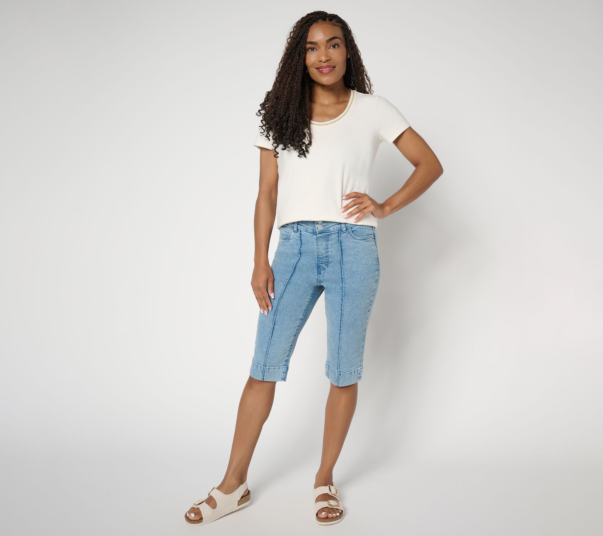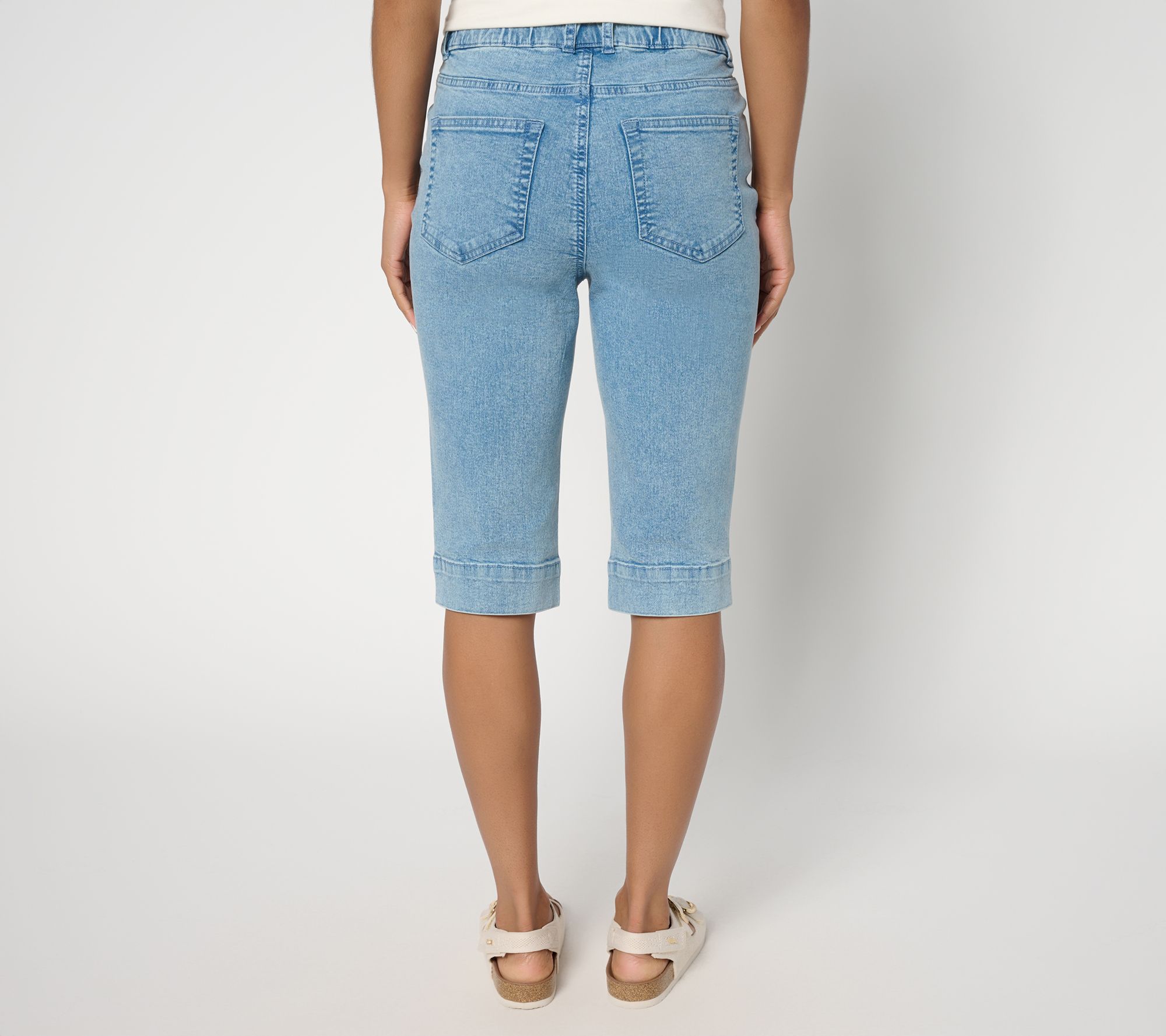 Sunny days are calling! Ready to make a stylish statement this summer? Every day feels like you're on island time with these versatile Classic Stretch Bermuda shorts from Denim & Co.® Designed with all the right deets, from pintucks that help elongate the legs to a double button and comfy elastic-back waistband, they're perfect for staycay bistro visits to vacay biking and beachcoming. From Denim & Co.® Fashions.