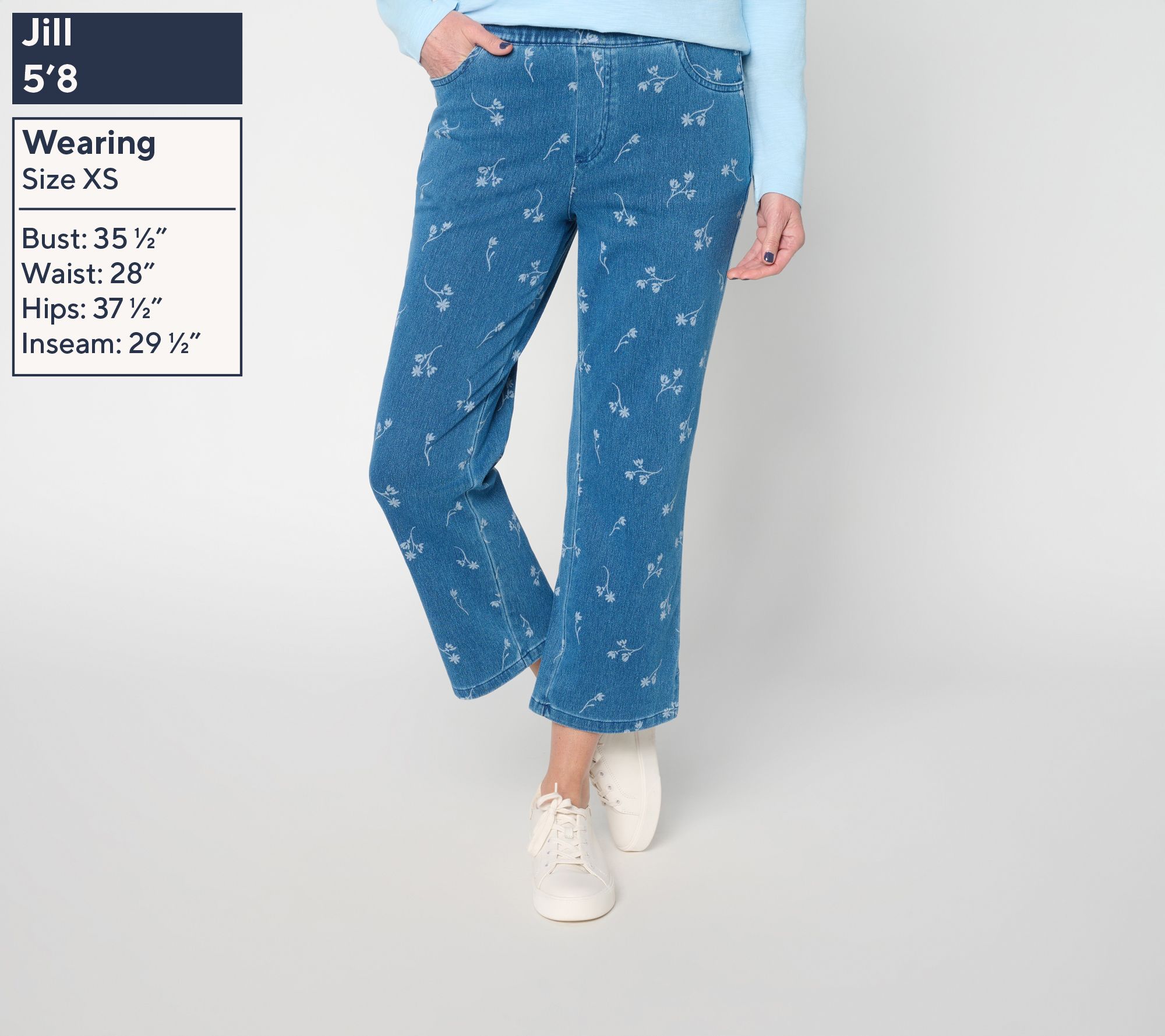 Denim & Co.'s found a breezy balance between comfort and style with these printed cropped pants. Their cotton-rich Comfy Knit Air fabric feels soft and employs just the right amount of stretch, while the floral pattern frames them as a smart pick for making everyday moments feel a little more special. From Denim & Co.®.