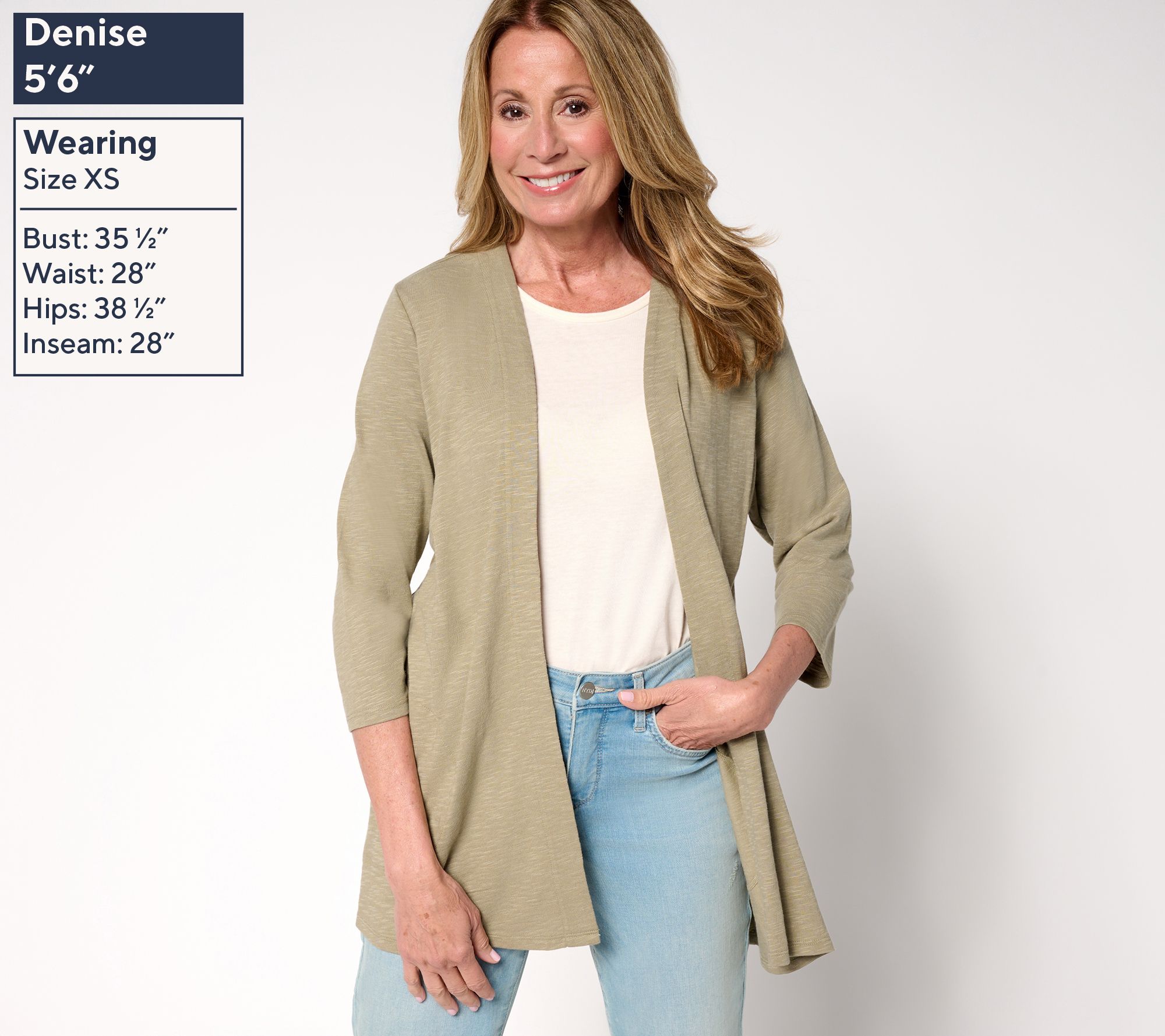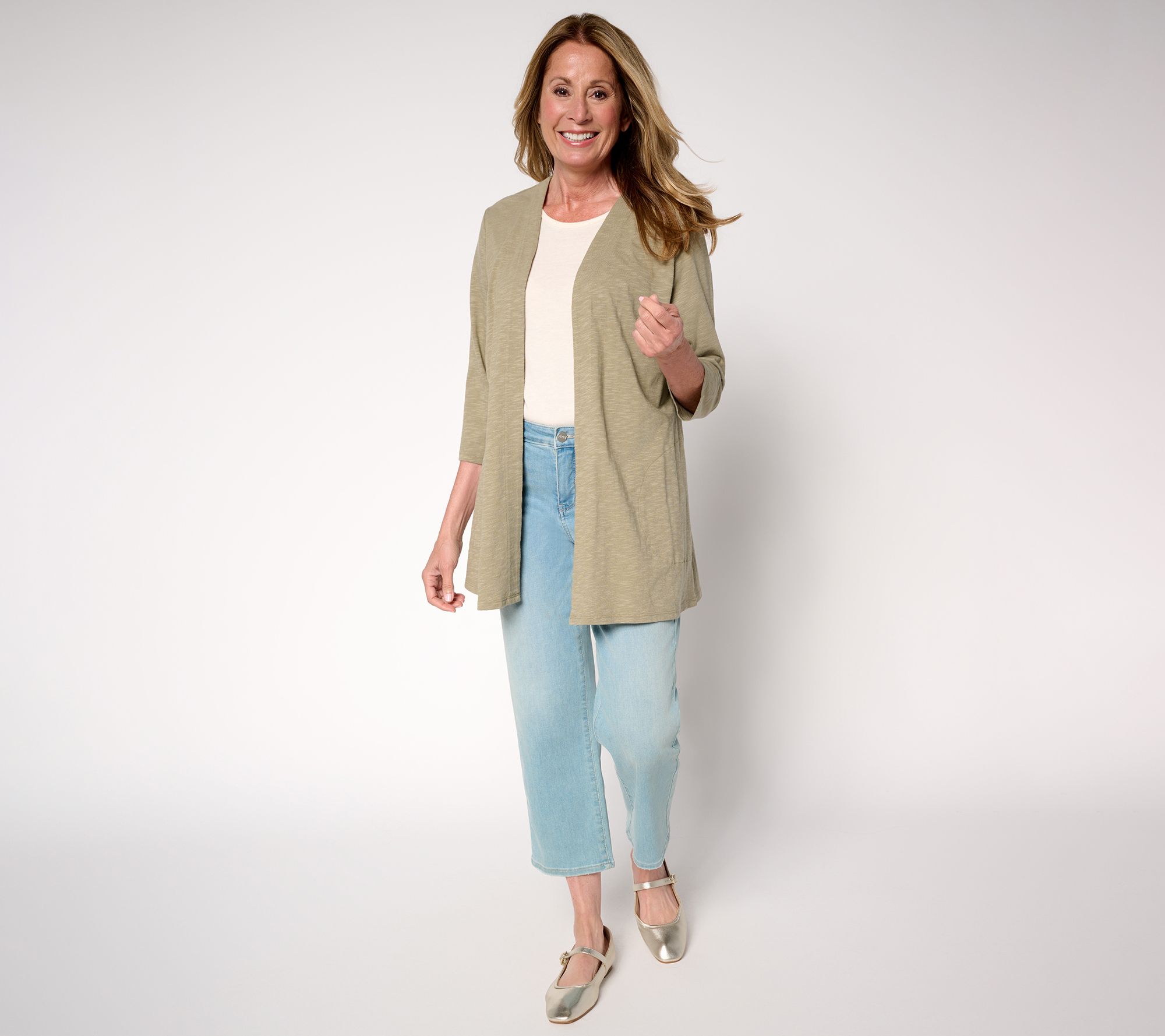 "As Is" Denim & Co. Regular 3/4 Sleeve Slub Jersey Tunic Cardigan