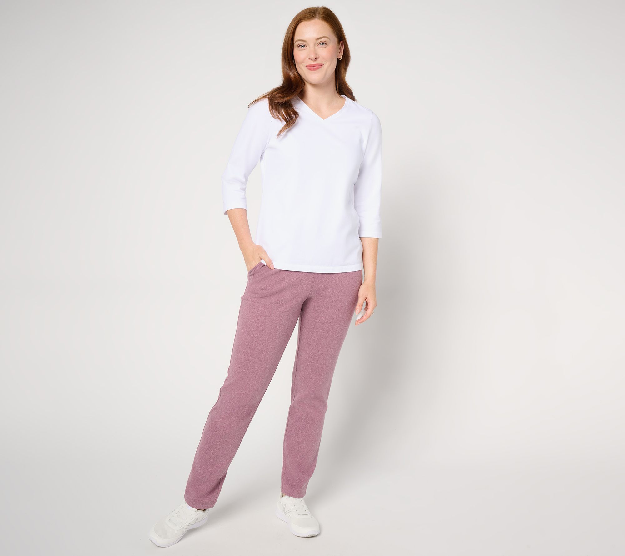 Your cozy cold-weather afternoons just got a major upgrade! These slim-straight fleece pants are as practical as they are comfortable, with no preference for taking a brisk walk in the park or relaxing by the fireplace. They'll keep you effortlessly put-together no matter what your pace. From Denim & Co.® Fashions.