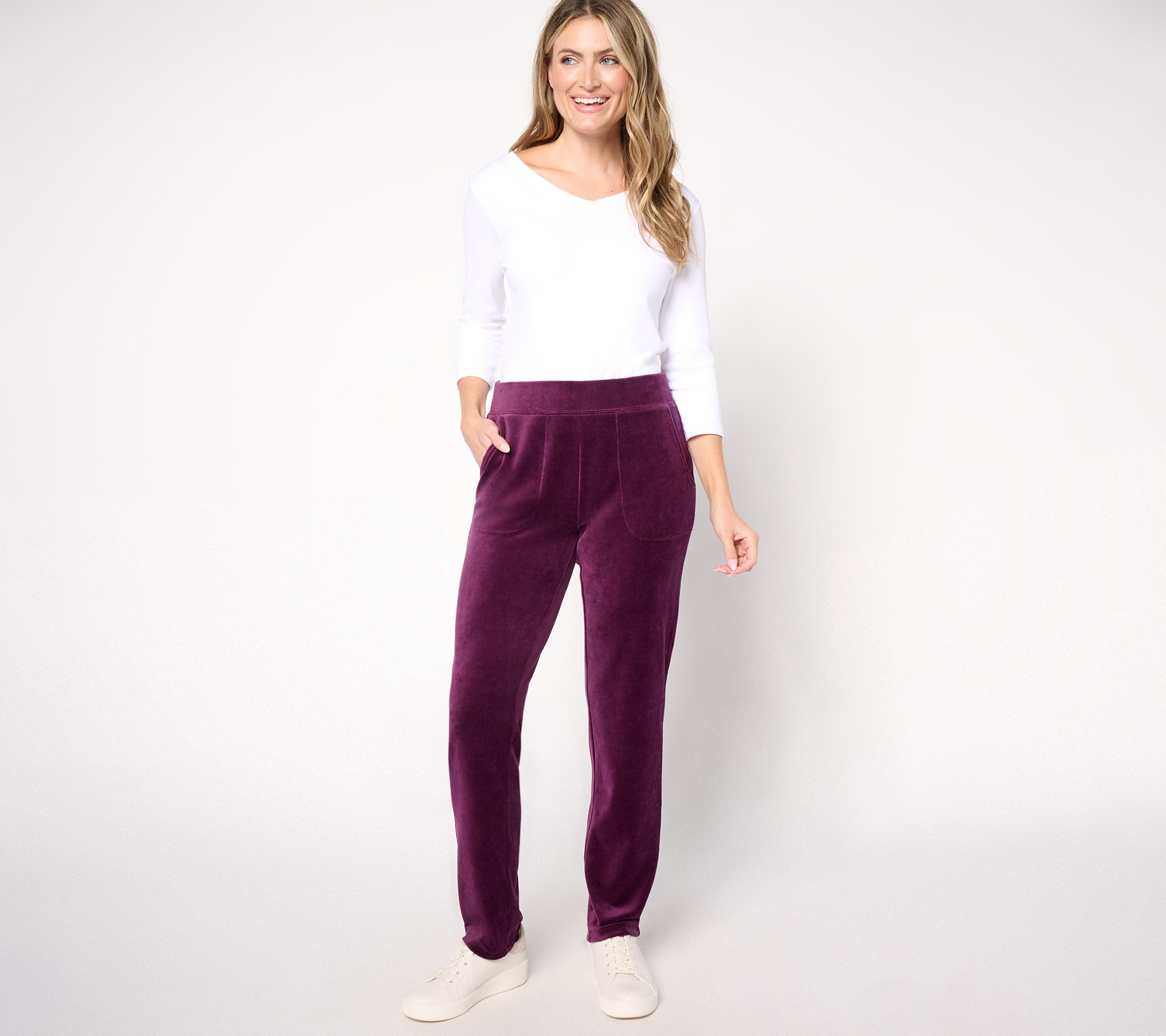 "As Is" Denim & Co. Regular Active Velour Straight Leg Pant