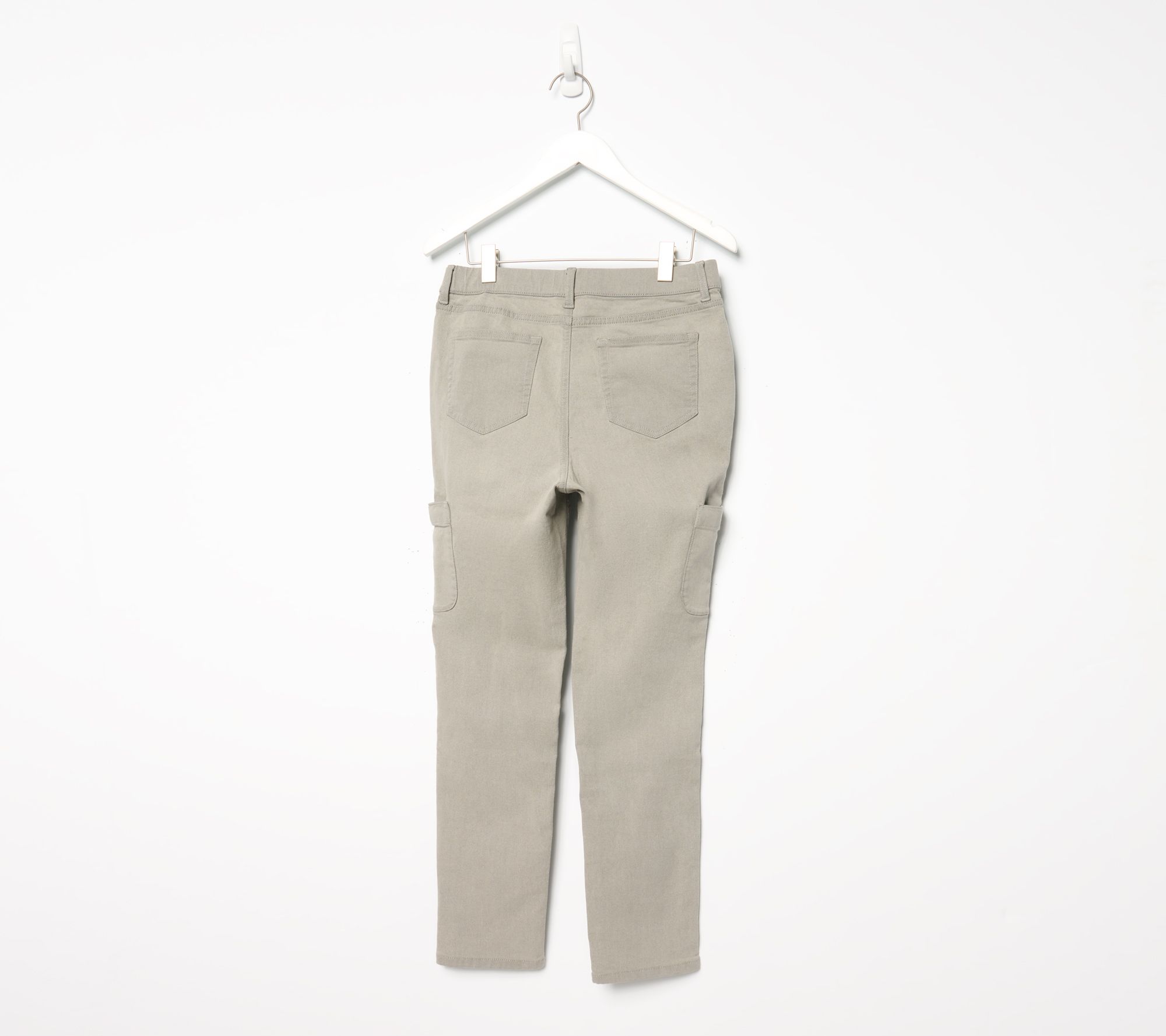 • Features: pull-on style with functional button shank, faux fly, cargo pockets on both thighs, front angled pockets, top applied back pockets, V-shaped back yoke, belt loops