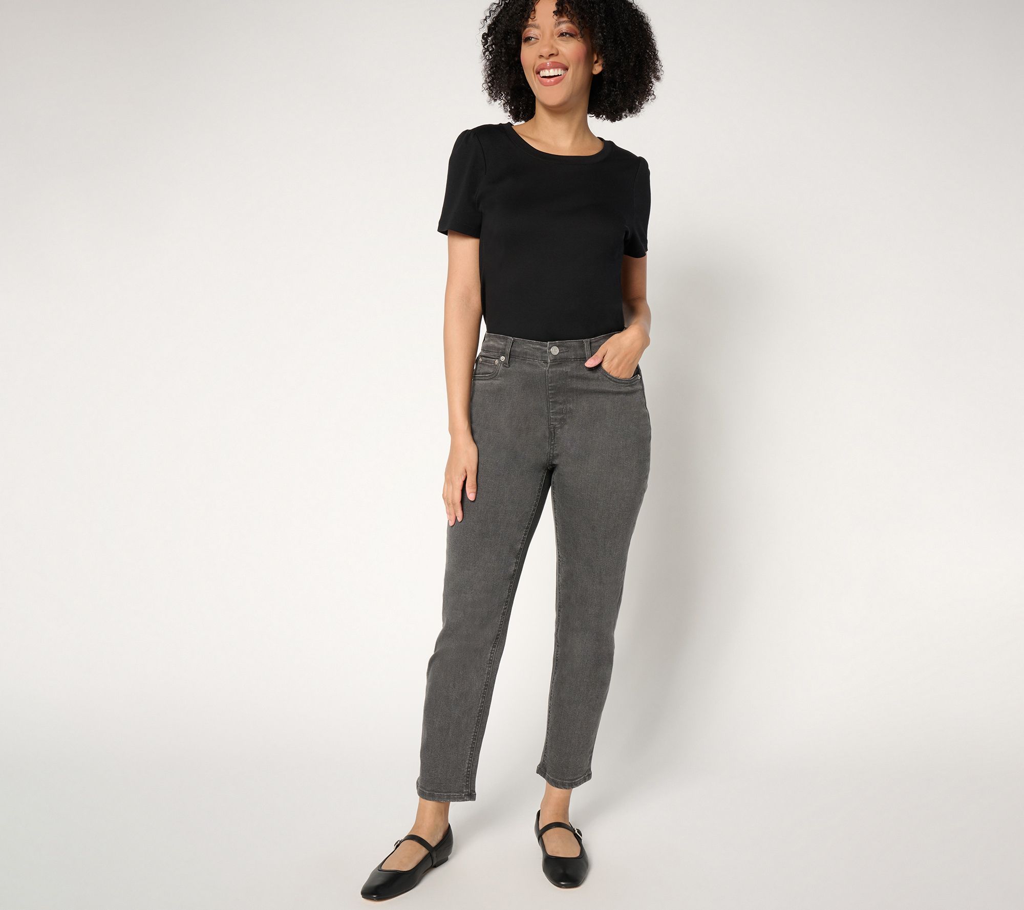 "As Is" Denim & Co. Regular Black Easy Stretch '94 Fit Ankle Jean