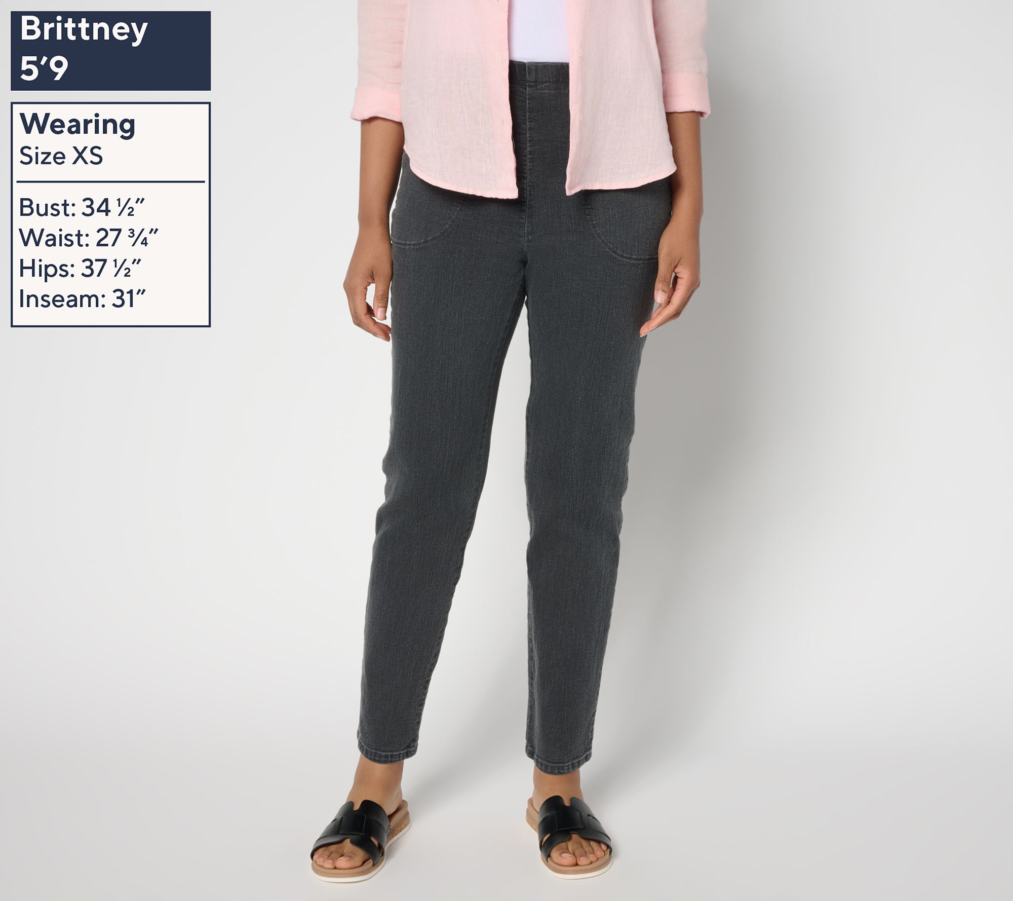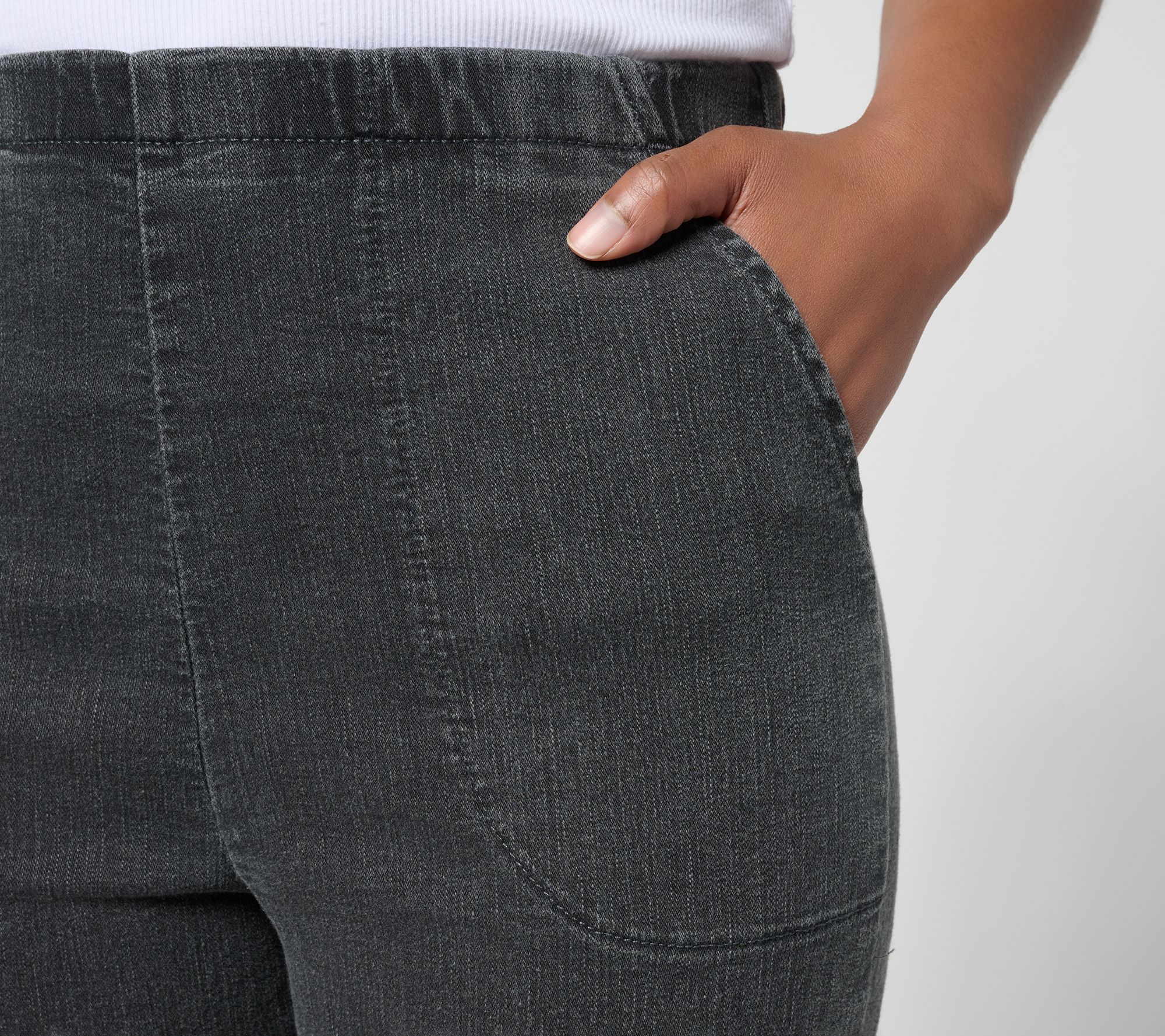 "As Is" Denim & Co. Regular Black Flat Front Denim Side Pckt Pant