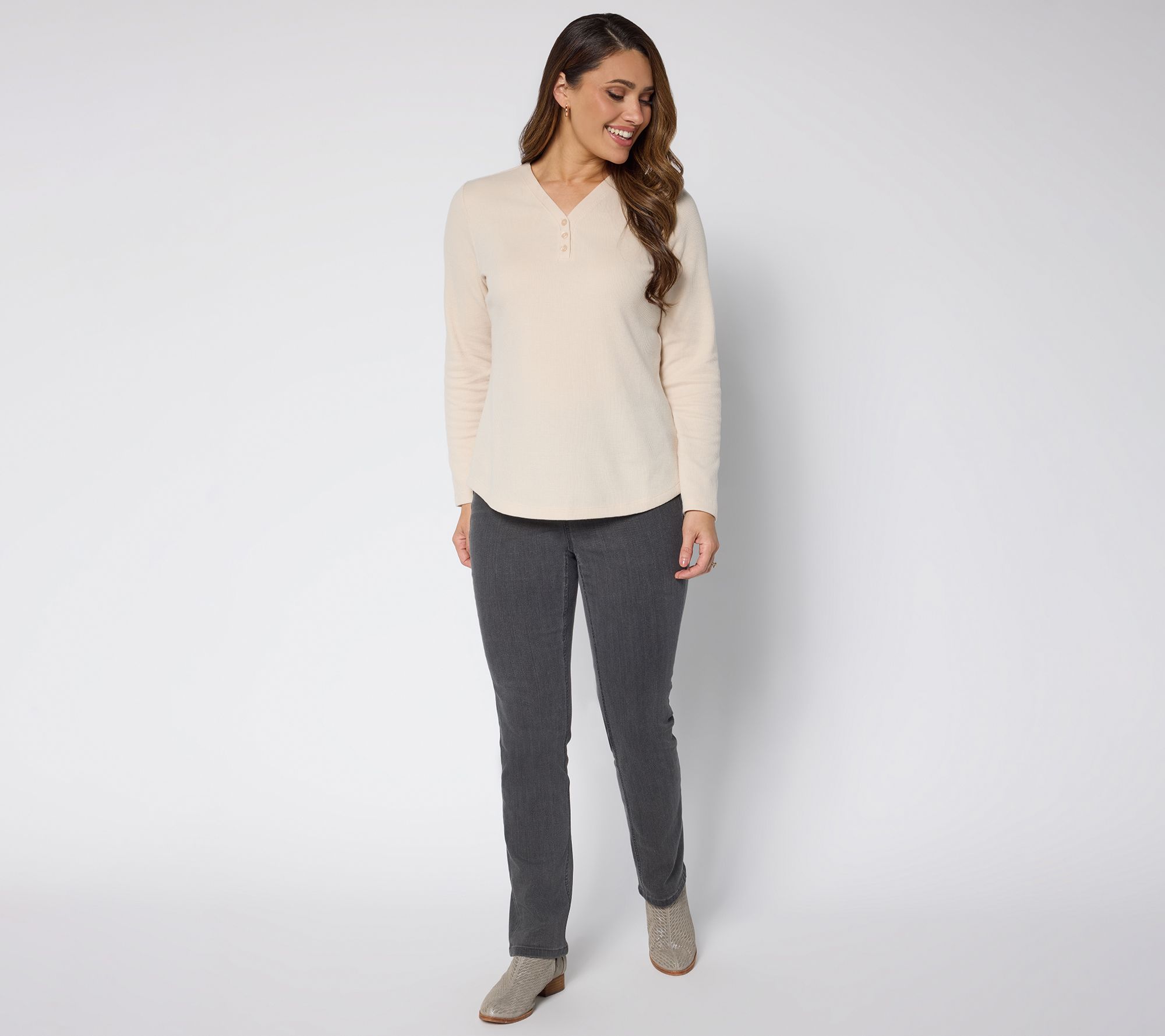 Flexible plans call for these Perfect Flex denim jeans! Constructed in a smooth, stretch woven with streamlined tailoring and none of the typical jean stiffness, the pull-on style glides seamlessly between a morning of appointments, an afternoon chasing the kids (or pups), and your most-anticipated dinner plans of the week. From Denim & Co.® Fashions.