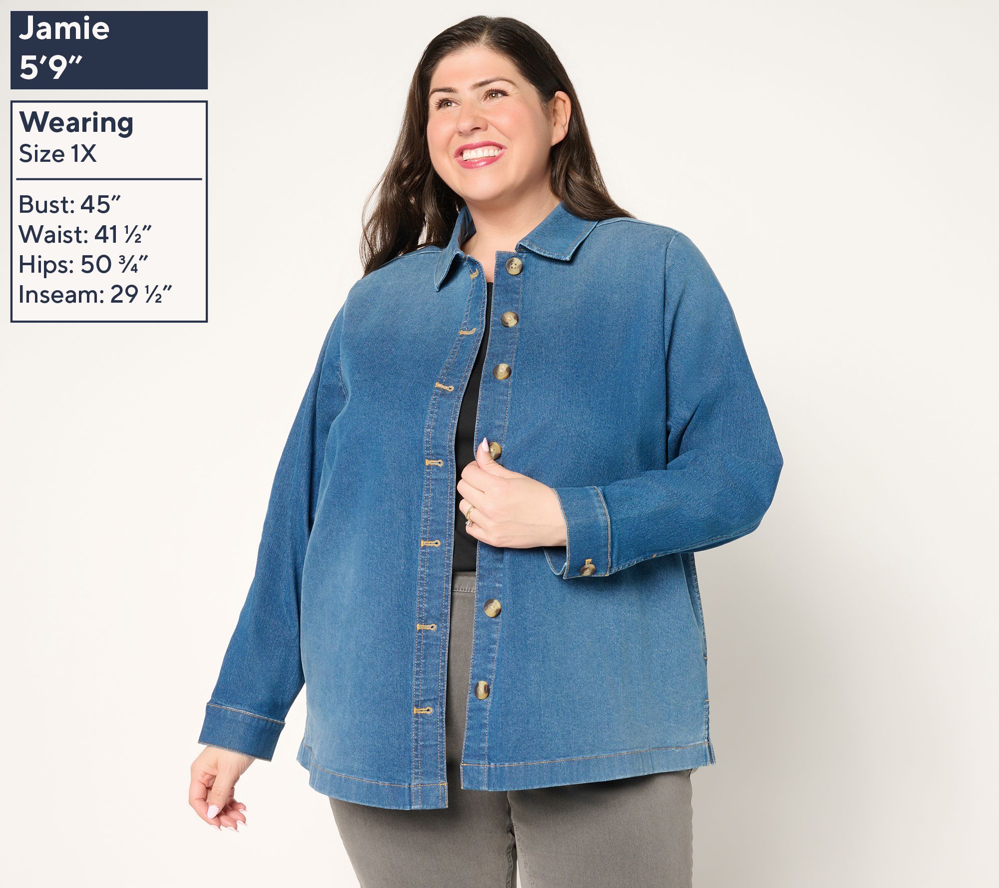 "As Is" Denim & Co. Regular Classic Stretch Button Front Denim Jacket