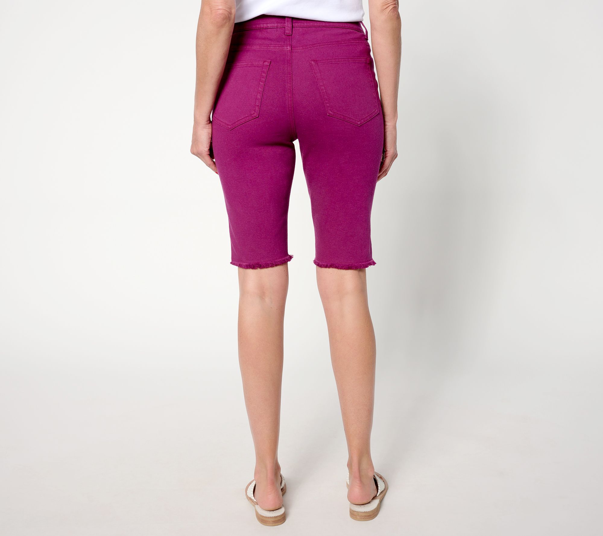 "As Is" Denim & Co. Regular Color Easy Stretch Frayed Bermuda Short