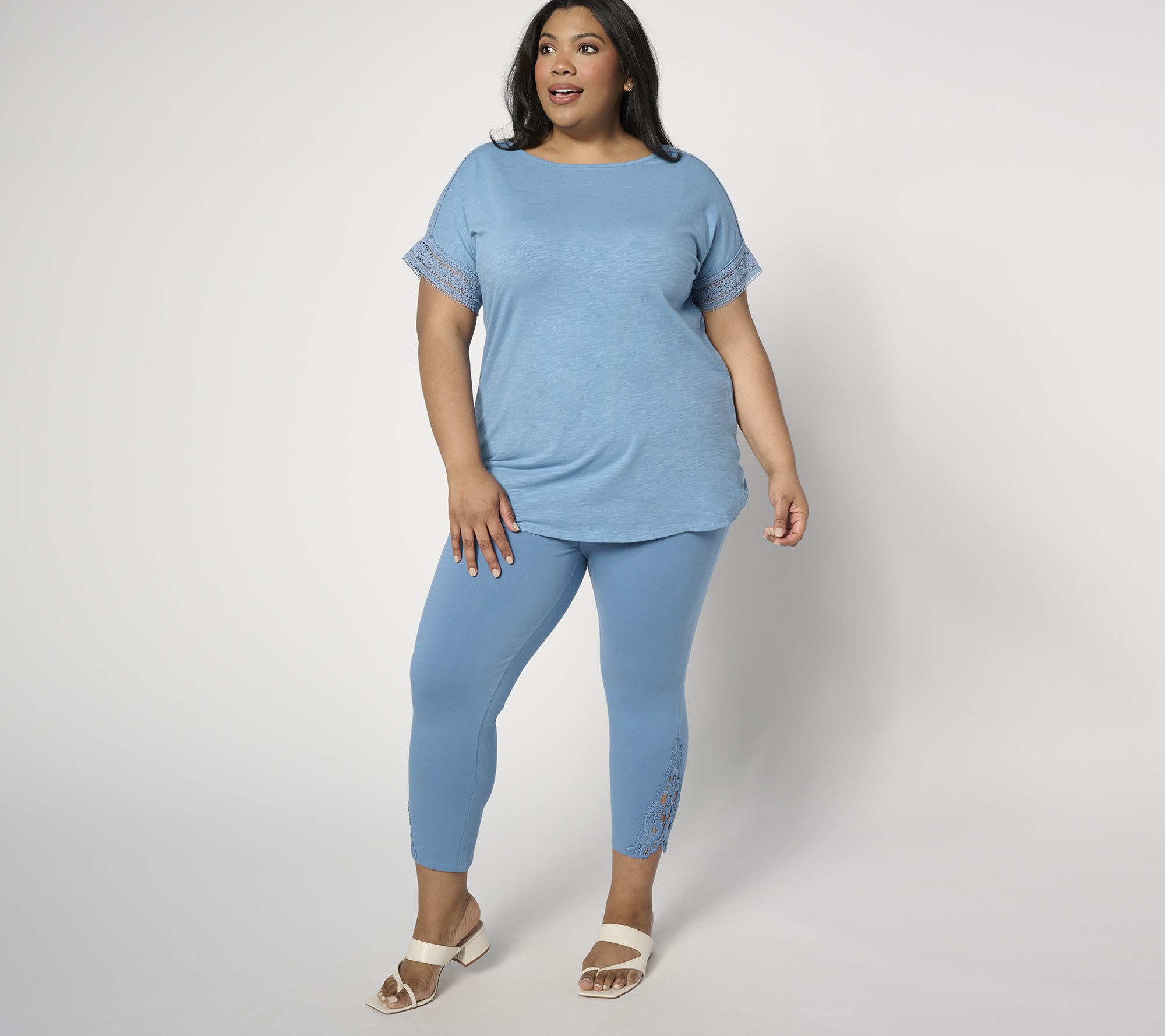 These leggings are longing for a workout -- just not at the gym (tho they could!). Save these crochet lace-detailed crops for casual date nights, coffee with your crew, or breezy alfresco brunches. And if you want to look cute while beating your treadmill personal best -- be our guest! From Denim & Co.® Fashions.