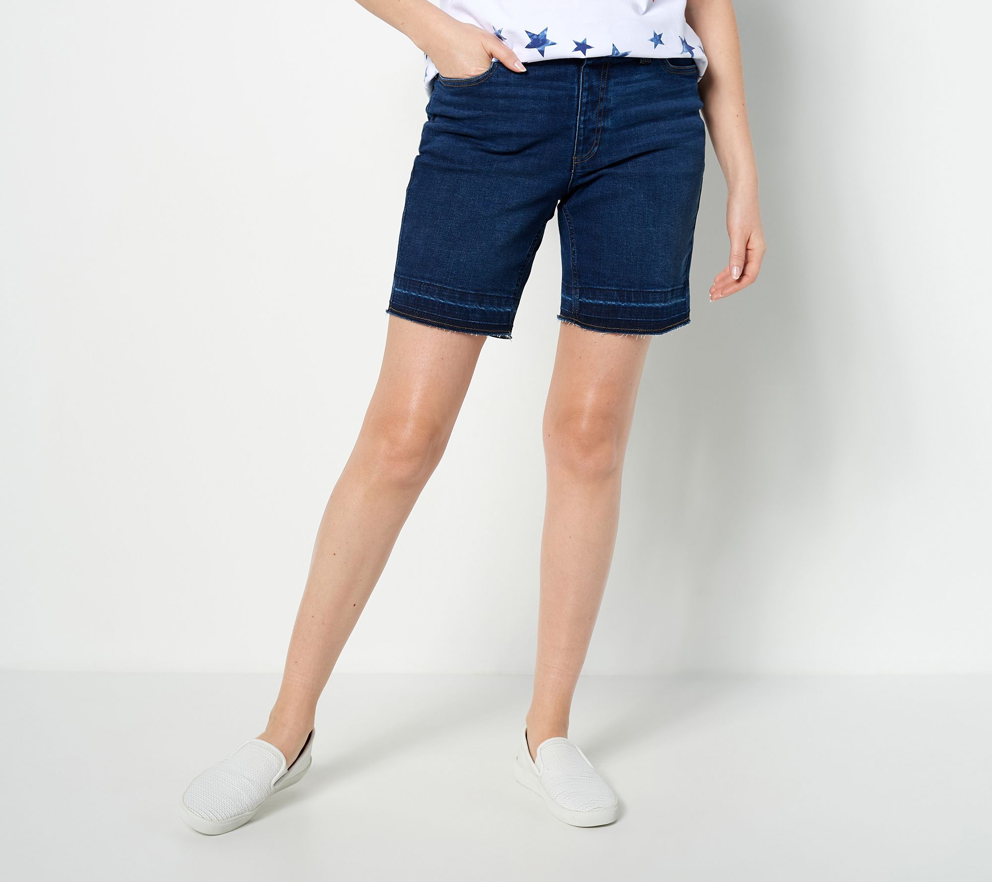 "As Is" Denim & Co. Regular Easy Stretch Denim Short with Frayed Hem