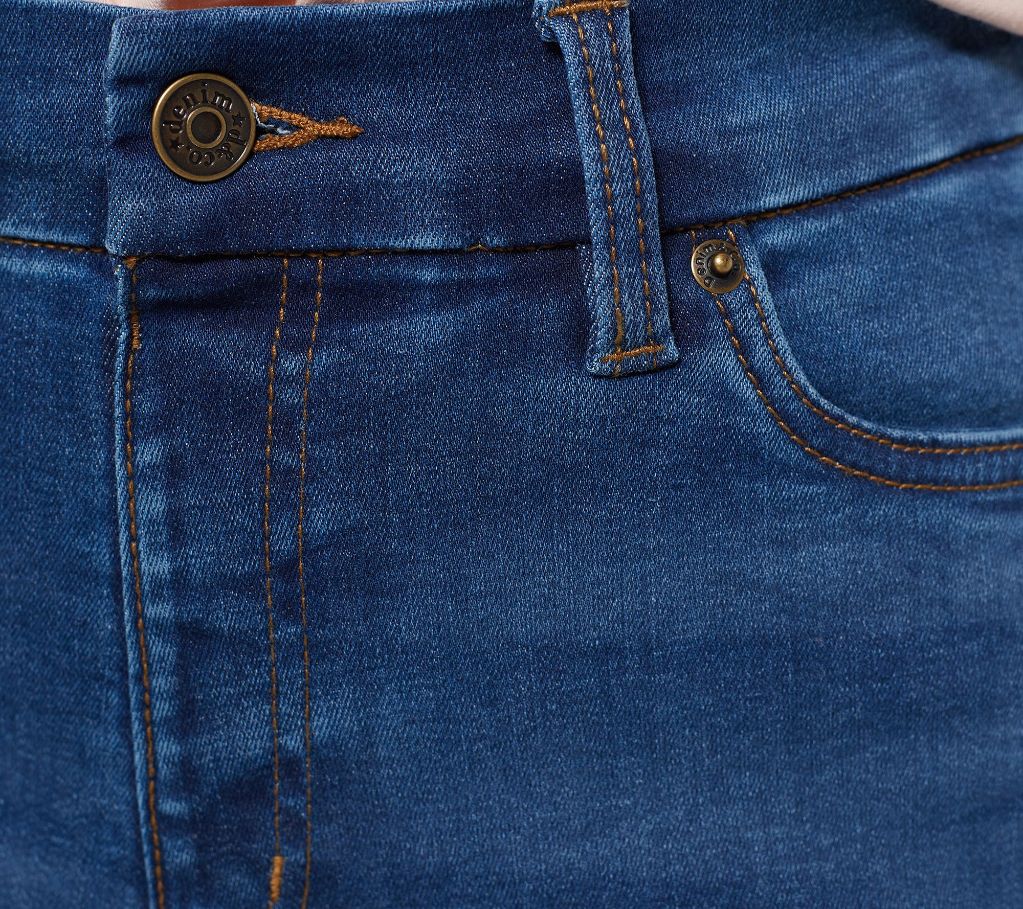 • Features: frayed hem, bac patch pockets, self-folded waistband, non-functional fly, front scoop pockets