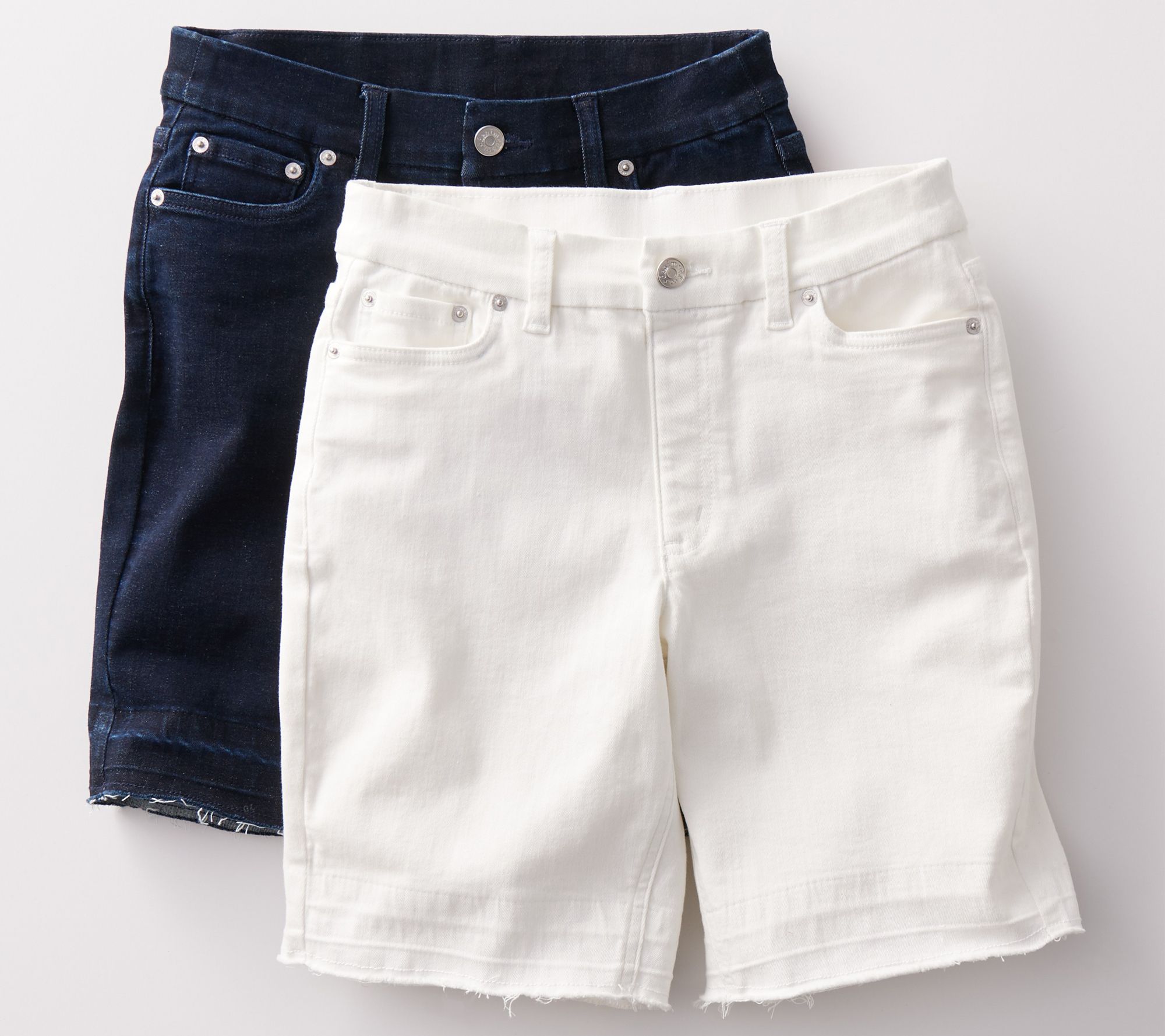 These easy-stretch denim shorts give way to so many summertime OOTD options. Canvas sneaks and a buttoned tank? Yes, queen. Wedges and a plain white tee? Absolutely. The possibilities are endless. From Denim & Co.® Fashions.