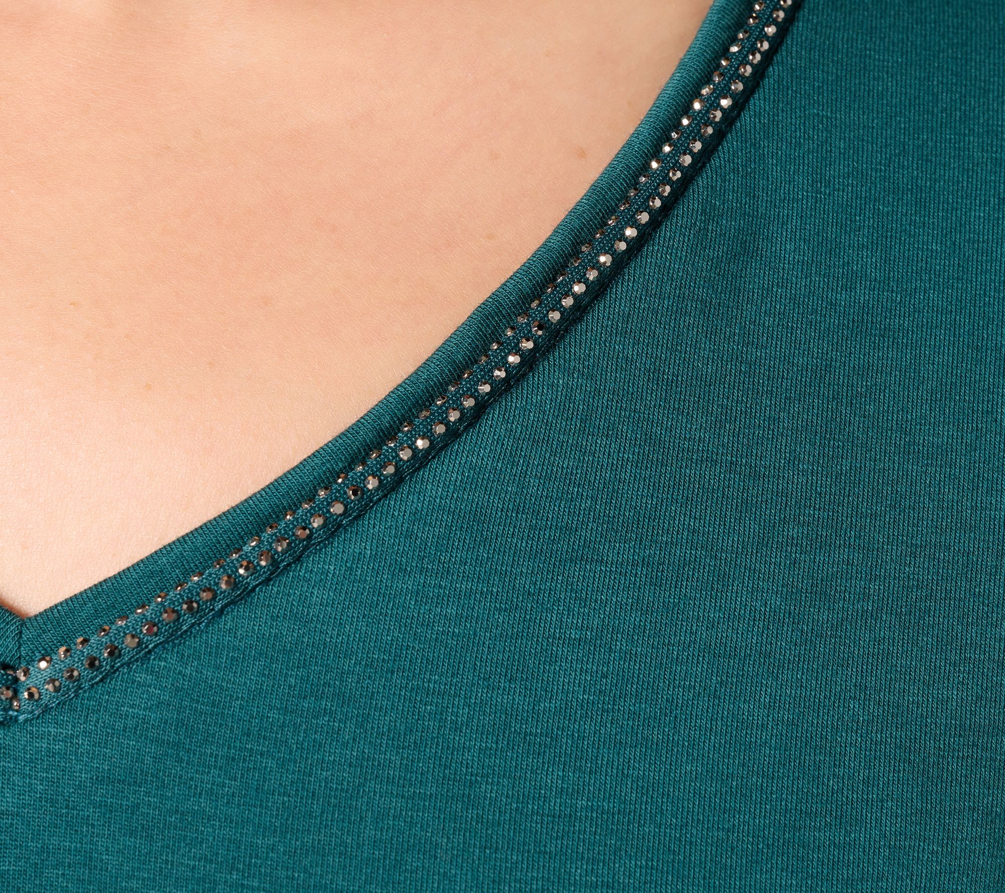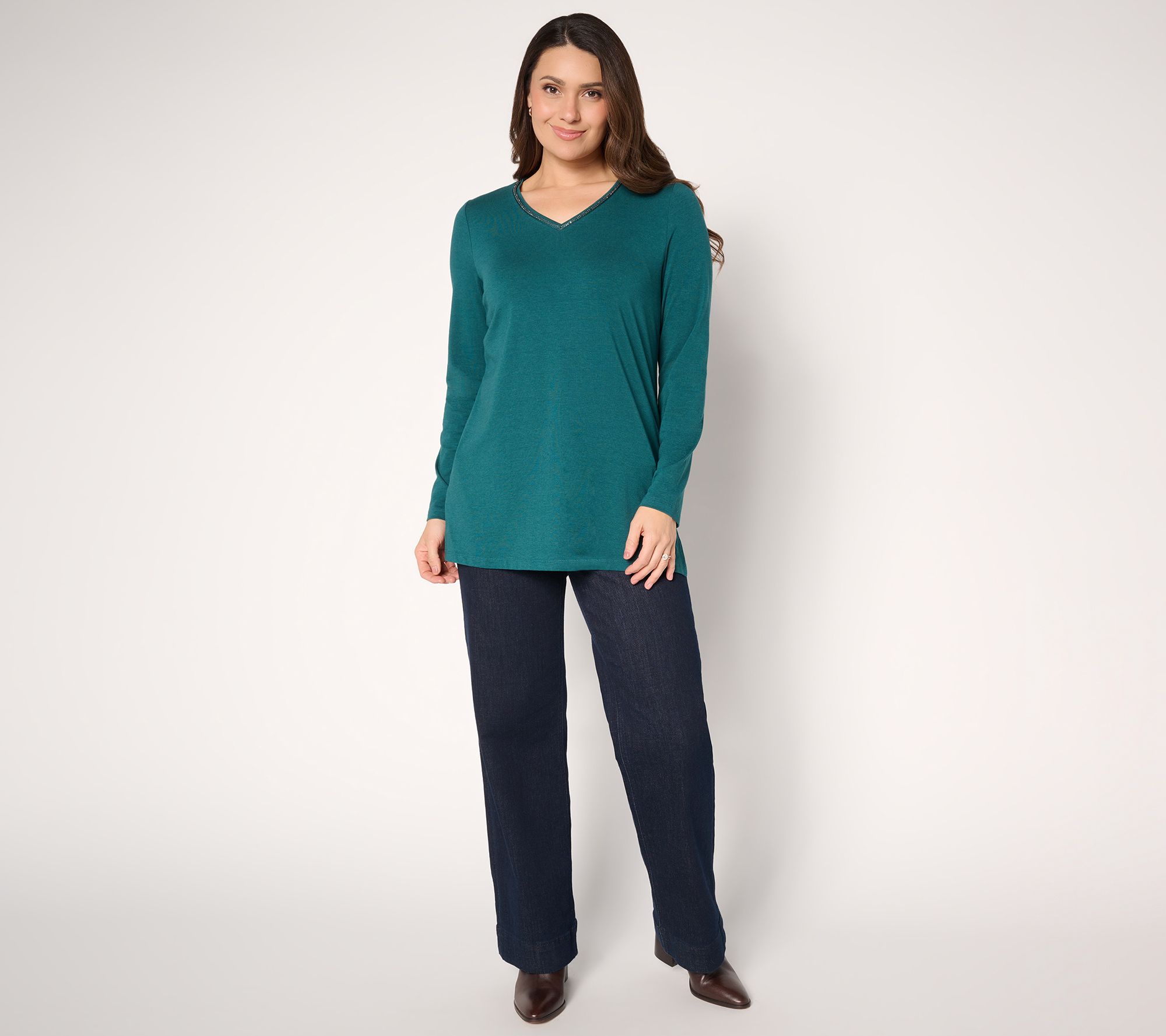 "As Is" Denim & Co. Regular Favorite Jersey Beaded V-Neck Tunic